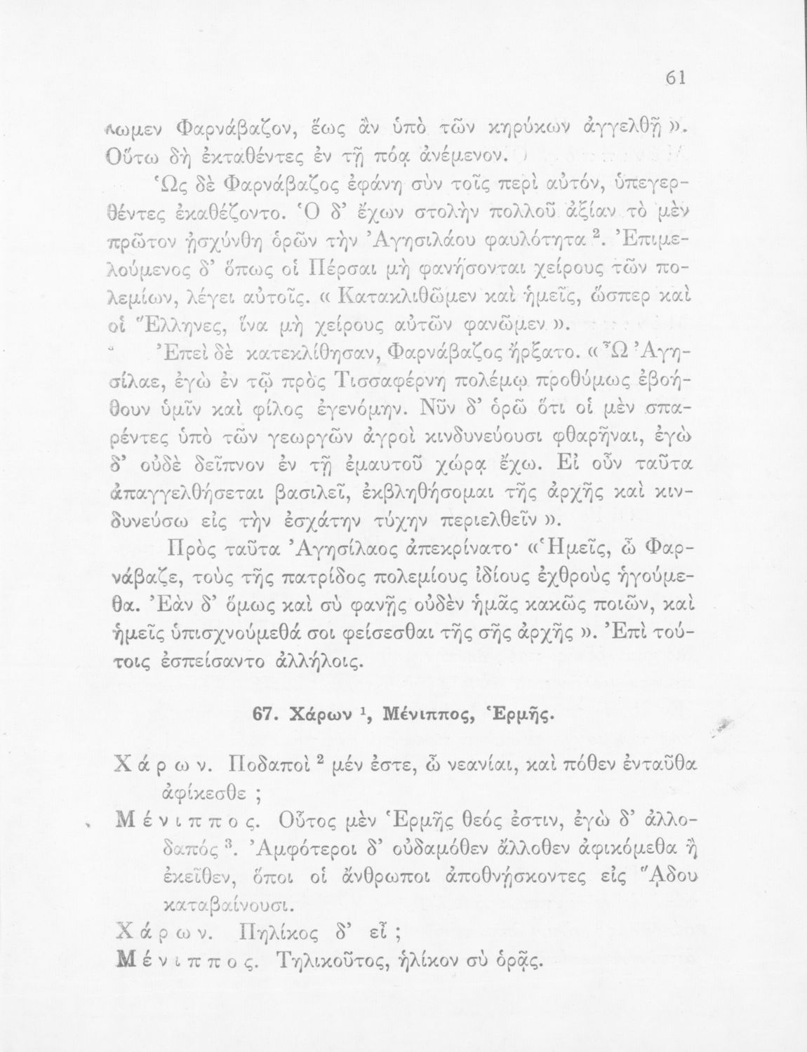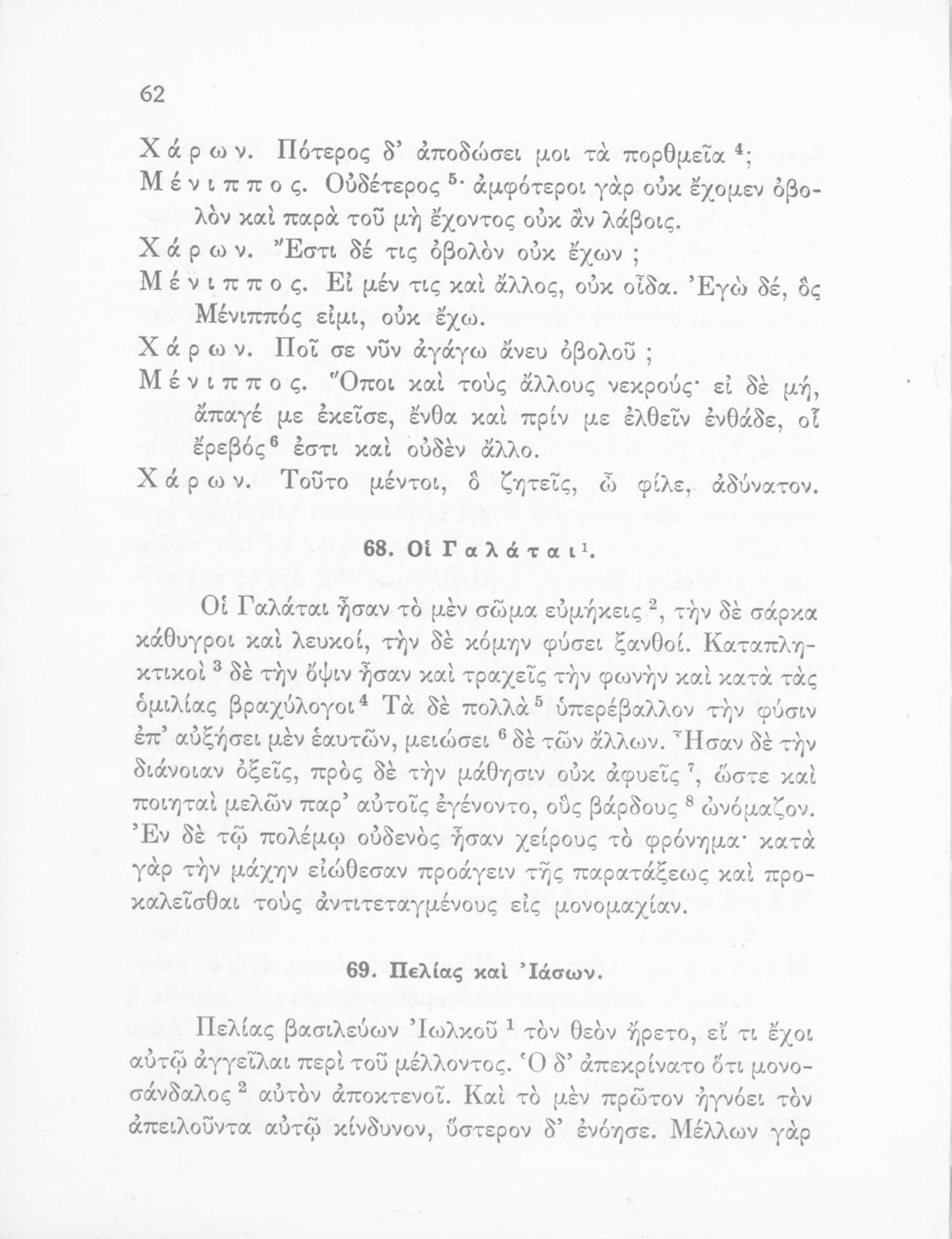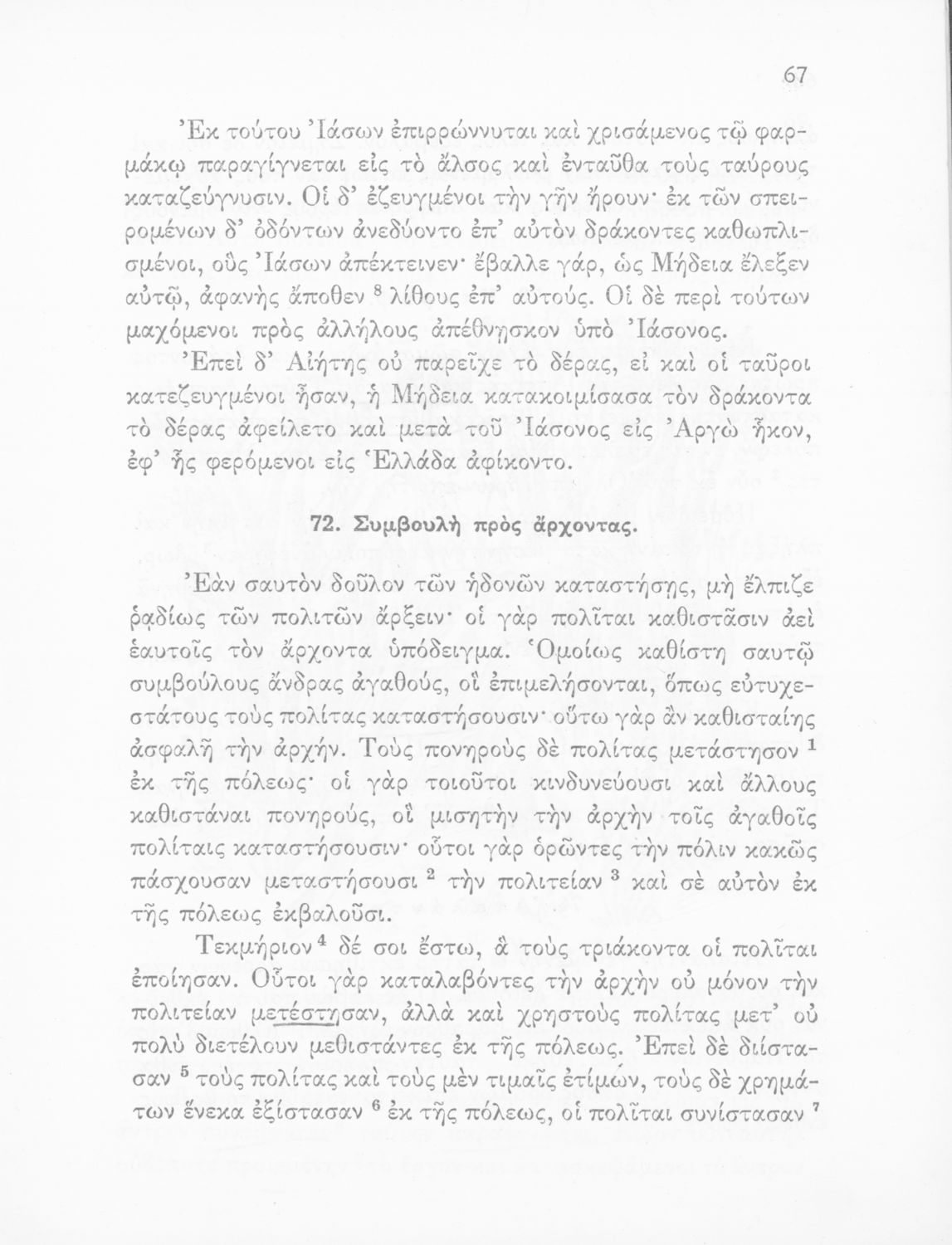 Σχολικό Εγχειρίδιο Αρχαίων Ελληνικών που περιλαμβάνει κείμενα προσαρμοσμένα στη διδασκαλία των γραμματικών και συντακτικών φαινομένων, και ερμηνευτικές και λεξιλογικές σημειώσεις.