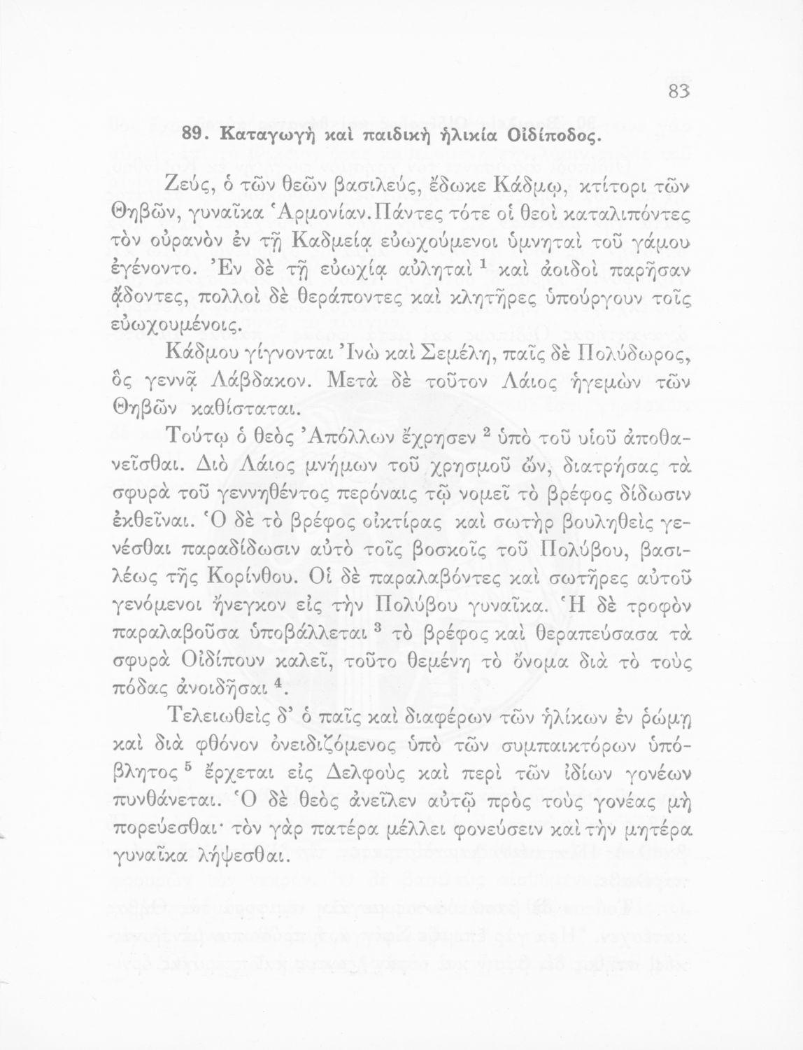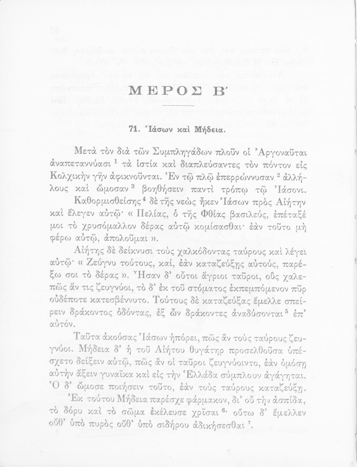 Σχολικό εγχειρίδιο Αρχαίων Ελληνικών Γυμνασίου που περιέχει κείμενα βασισμένα στην αρχαία ελληνική ιστορία και μυθολογία και γραμματικές, συντακτικές και ετυμολογικές παρατηρήσεις.