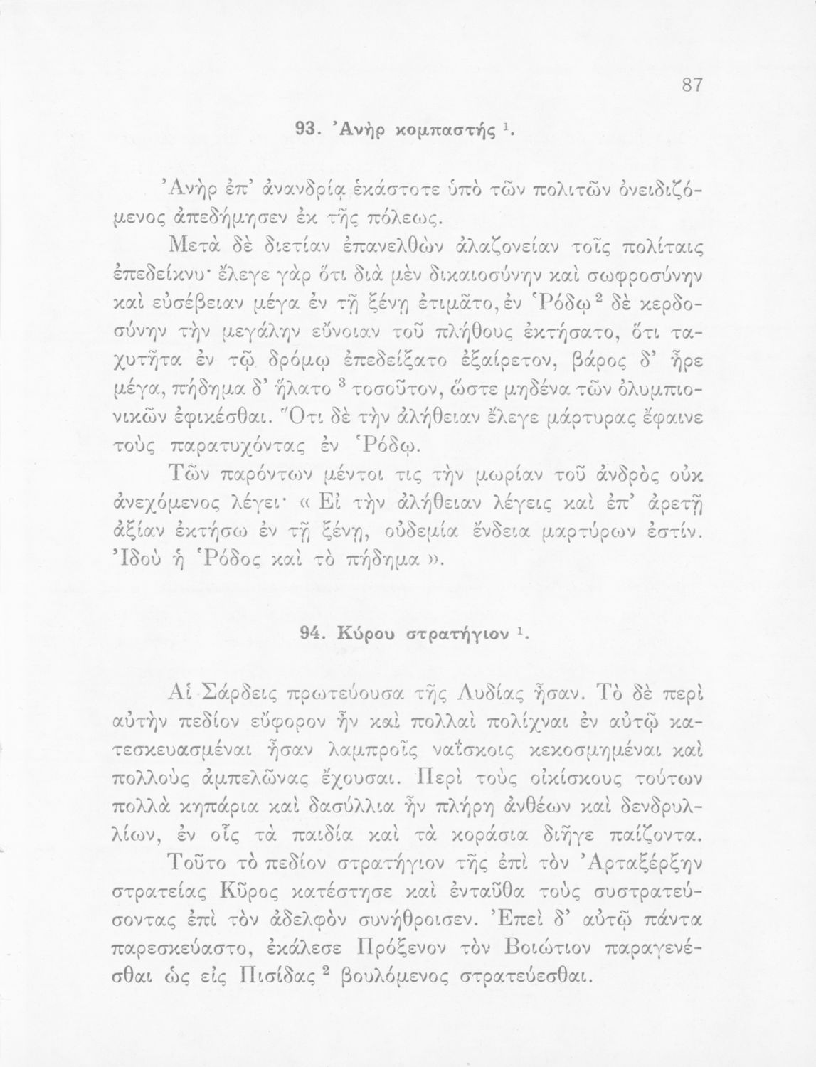 Σχολικό εγχειρίδιο Αρχαίων Ελληνικών Γυμνασίου που περιέχει κείμενα βασισμένα στην αρχαία ελληνική ιστορία και μυθολογία και γραμματικές, συντακτικές και ετυμολογικές παρατηρήσεις.