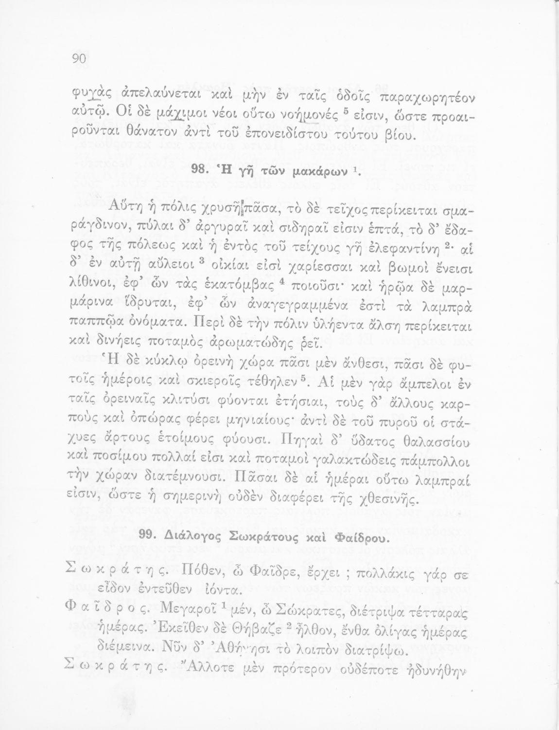 Σχολικό Εγχειρίδιο Αρχαίων Ελληνικών που περιλαμβάνει κείμενα προσαρμοσμένα στη διδασκαλία των γραμματικών και συντακτικών φαινομένων, και ερμηνευτικές και λεξιλογικές σημειώσεις.