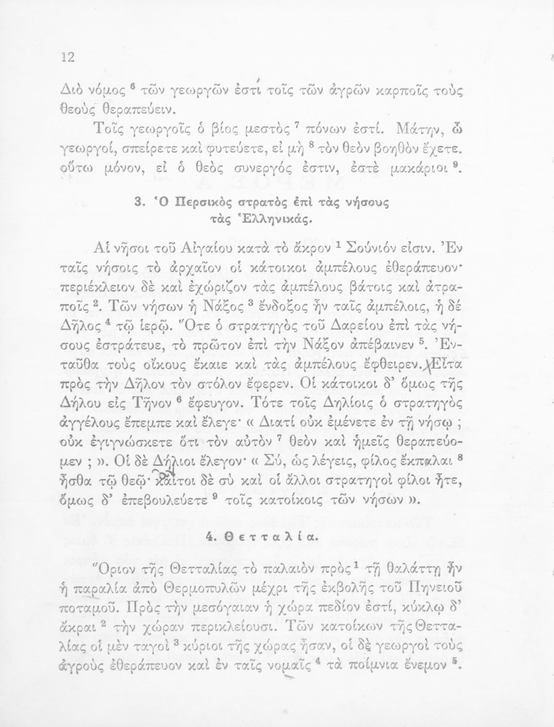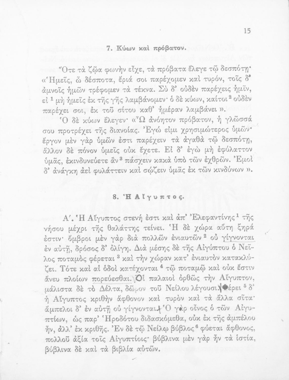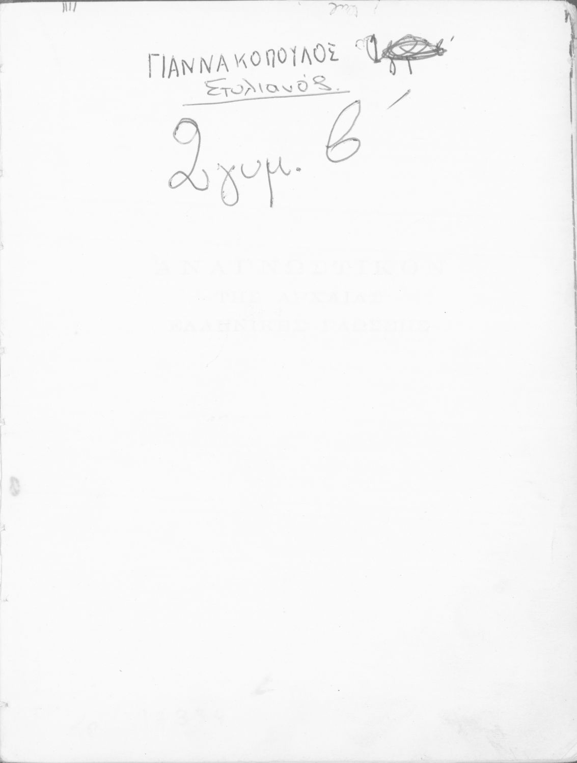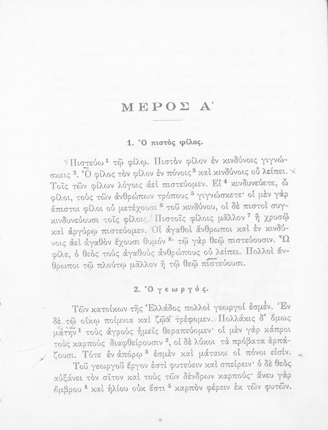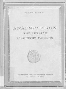 Βαθμίδα εκπαίδευσης: Δευτεροβάθμια Τάξη: Γυμνάσιο Μάθημα: Αρχαία Ελληνικά Γλώσσα: Απλή καθαρεύουσα Παρουσίαση περιεχομένου: Σχολικό Εγχειρίδιο Αρχαίων Ελληνικών που περιλαμβάνει κείμενα προσαρμοσμένα στη διδασκαλία των γραμματικών και συντακτικών φαινομένων, και ερμηνευτικές και λεξιλογικές σημειώσεις. |