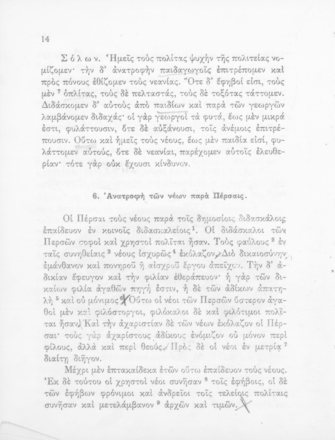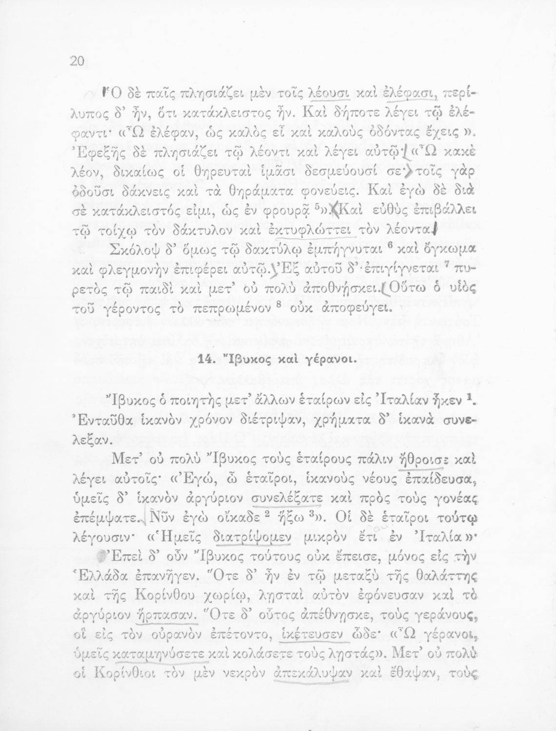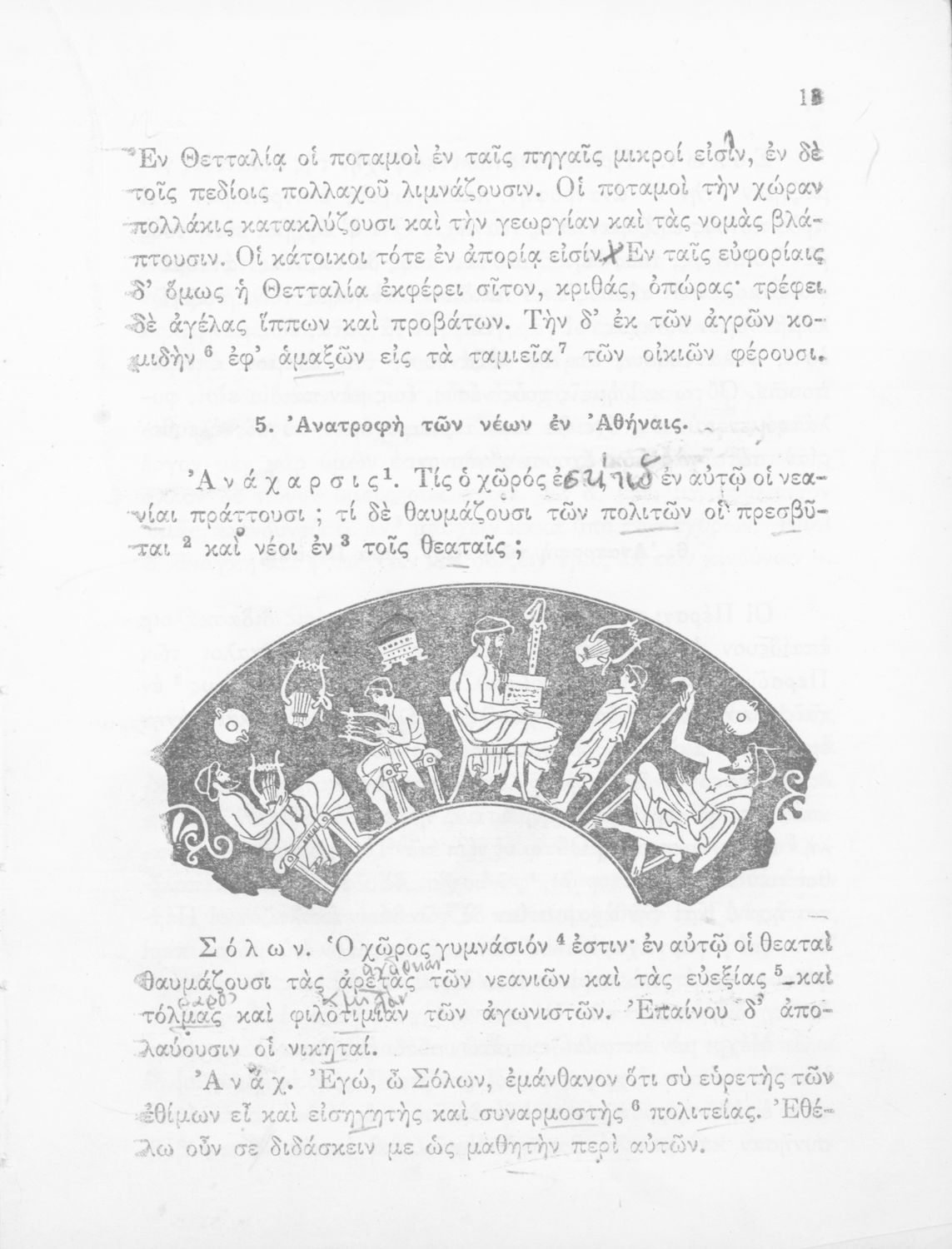 Σχολικό Εγχειρίδιο Αρχαίων Ελληνικών που περιλαμβάνει κείμενα προσαρμοσμένα στη διδασκαλία των γραμματικών και συντακτικών φαινομένων, και ερμηνευτικές και λεξιλογικές σημειώσεις.