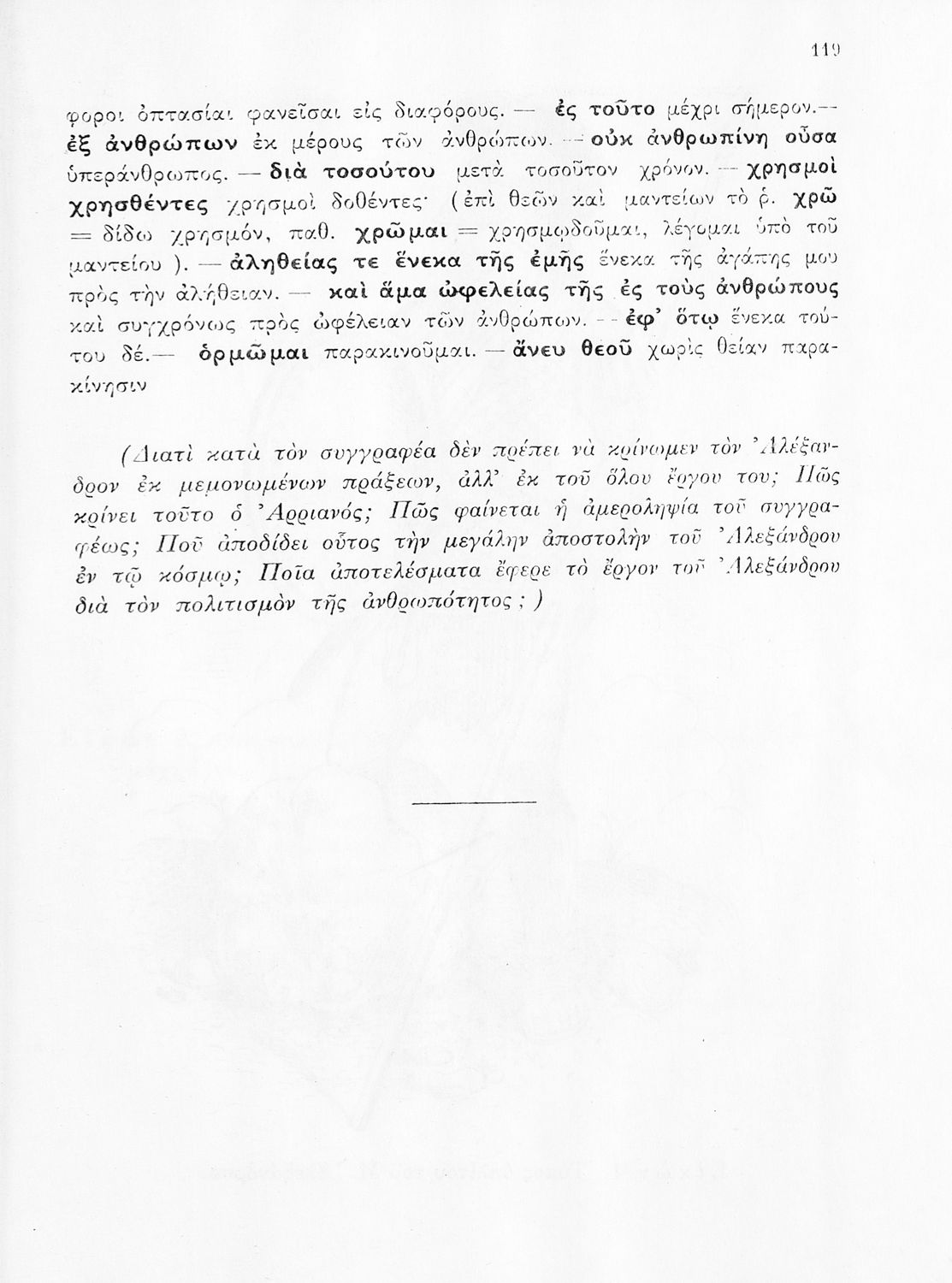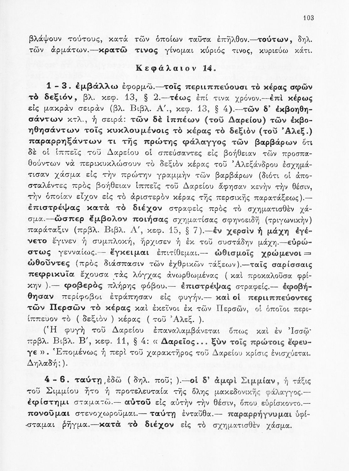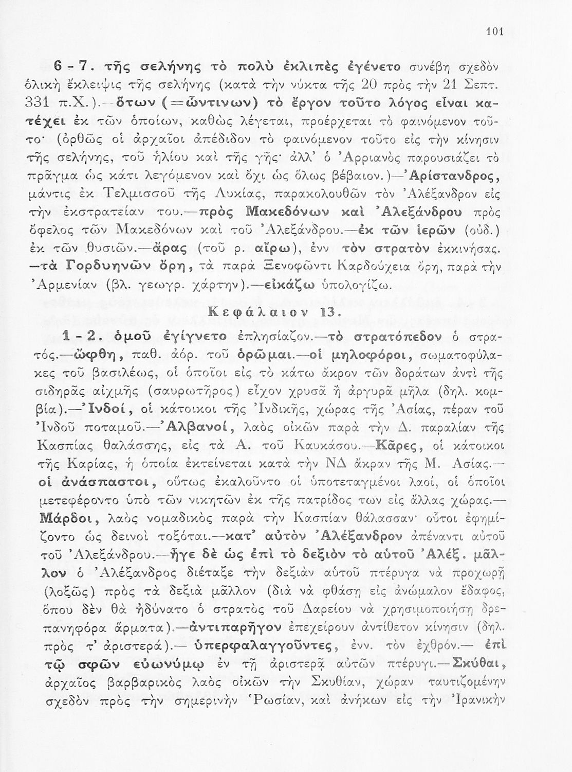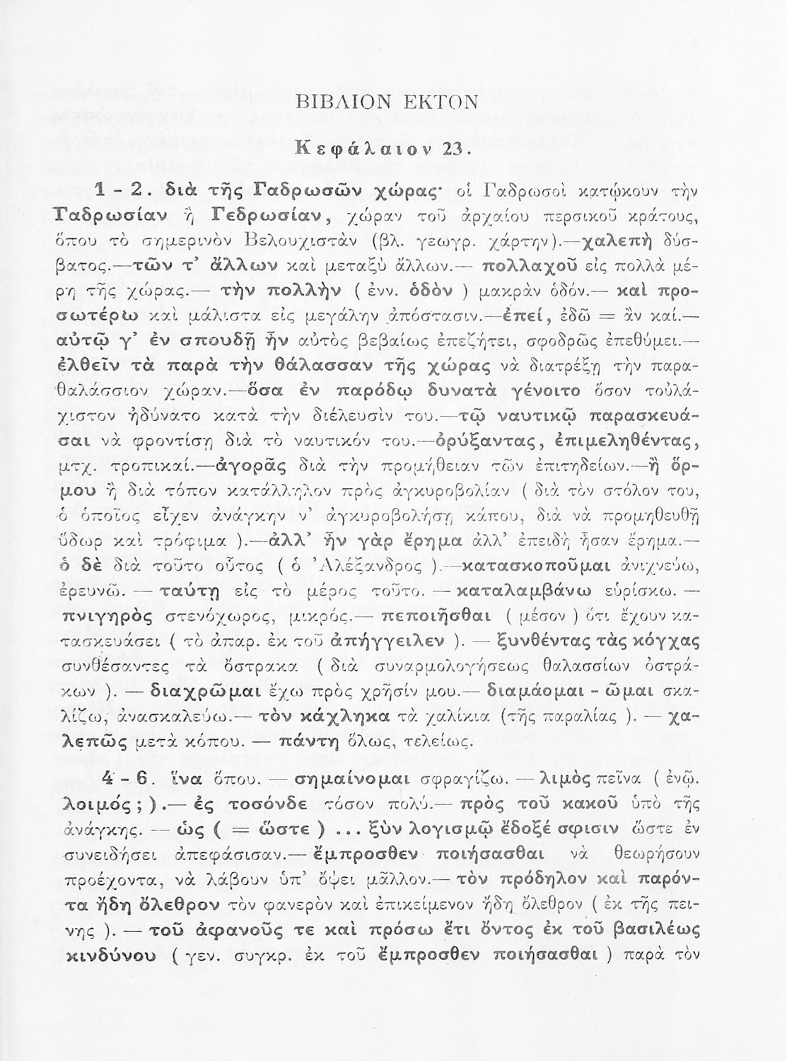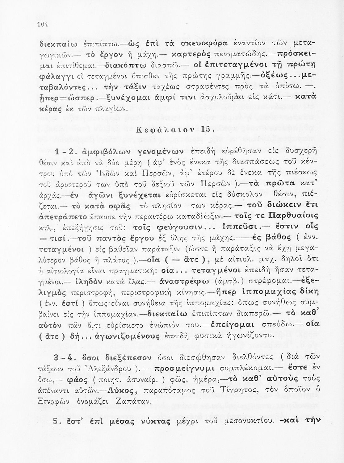 Σχολικό εγχειρίδιο Αρχαίων Ελληνικών Γ΄ Γυμνασίου που περιλαμβάνεται εισαγωγή στη ζωή και το έργο του Αρριανού, αποσπάσματα από το έργο του Αλεξάνδρου Ανάβασις, και ερμηνευτικές σημειώσεις. Περιέχει και εικόνες, διαγράμματα της θέσης του στρατού και χάρτη του κράτους του Μ. Αλεξάνδρου.
