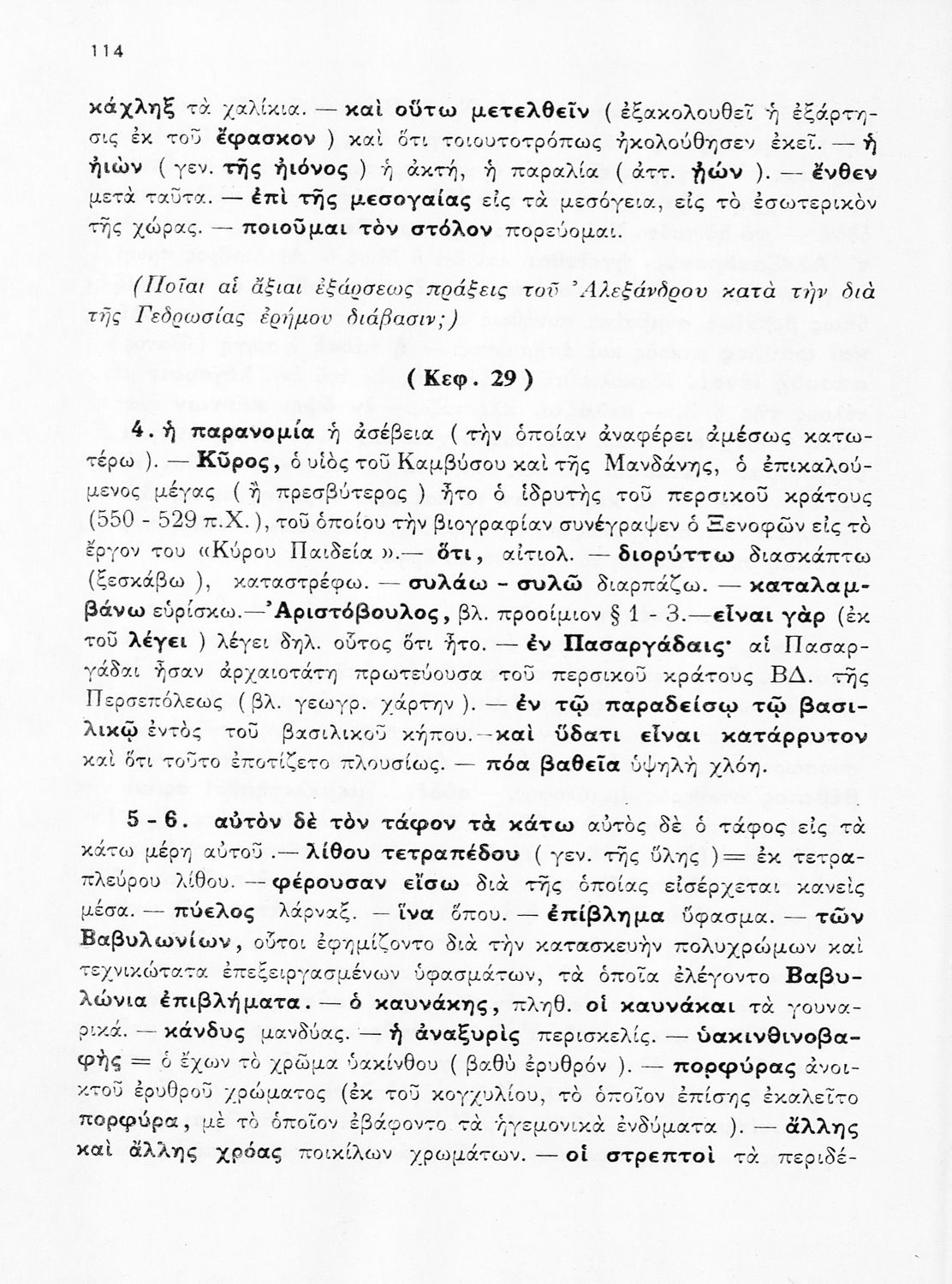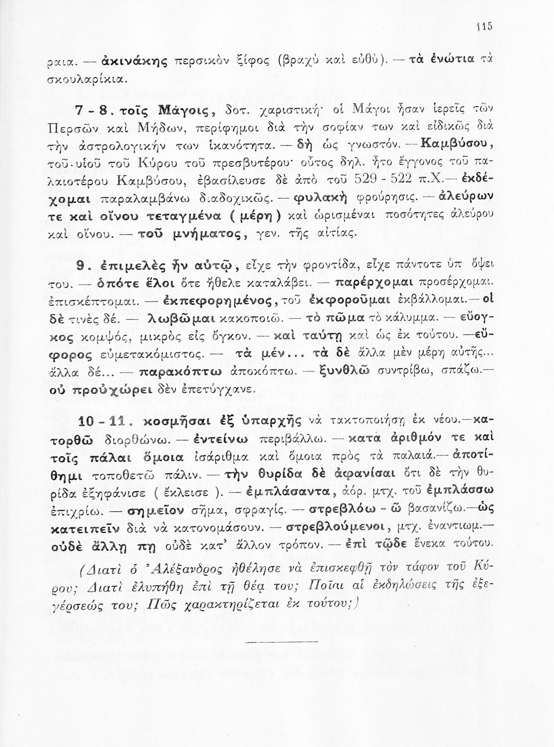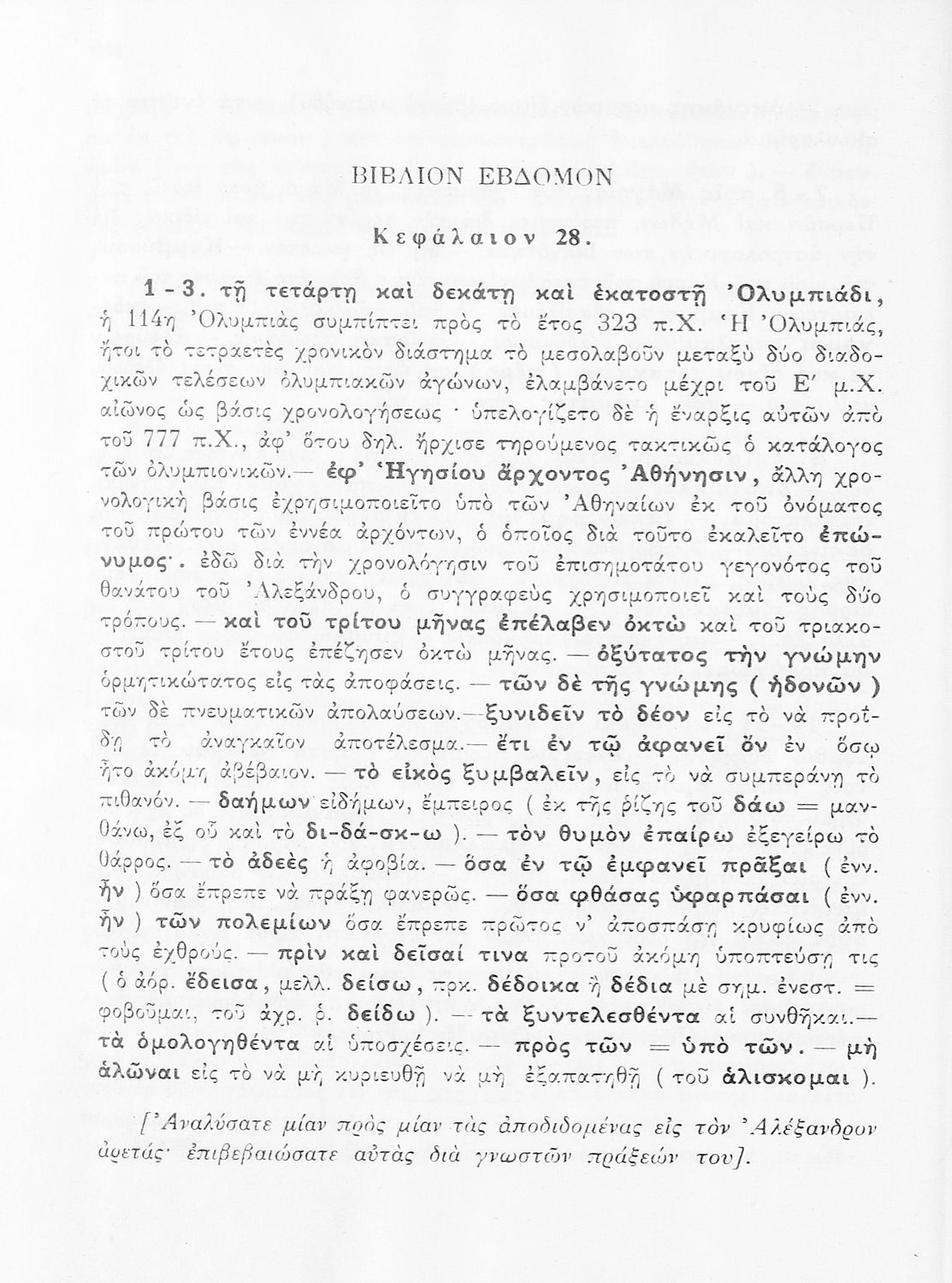 Βαθμίδα εκπαίδευσης: Δευτεροβάθμια Τάξη: Γ' Γυμνασίου Μάθημα: Αρχαία Ελληνικά Γλώσσα: Καθαρεύουσα Παρουσίαση περιεχομένου: Σχολικό εγχειρίδιο Αρχαίων Ελληνικών Γ΄ Γυμνασίου που περιλαμβάνεται εισαγωγή στη ζωή και το έργο του Αρριανού, αποσπάσματα από το έργο του Αλεξάνδρου Ανάβασις, και ερμηνευτικές σημειώσεις. Περιέχει και εικόνες, διαγράμματα της θέσης του στρατού και χάρτη του κράτους του Μ. Αλεξάνδρου. |
