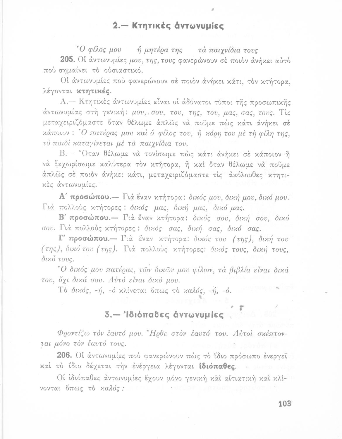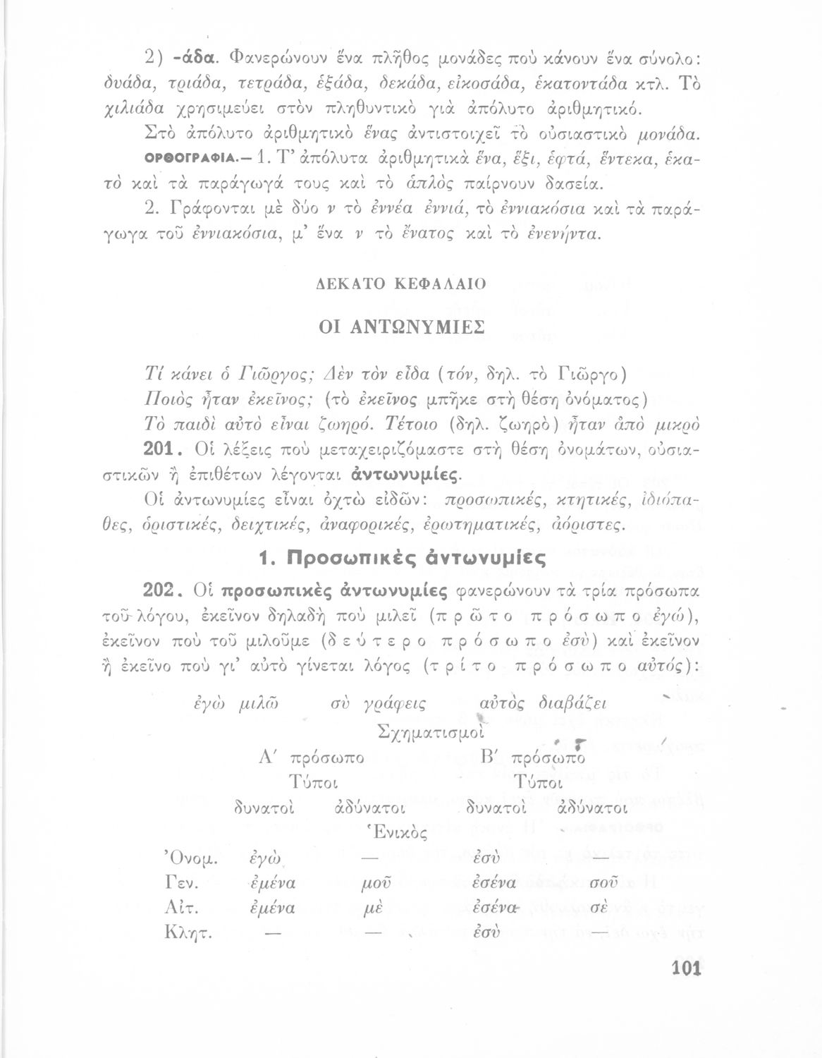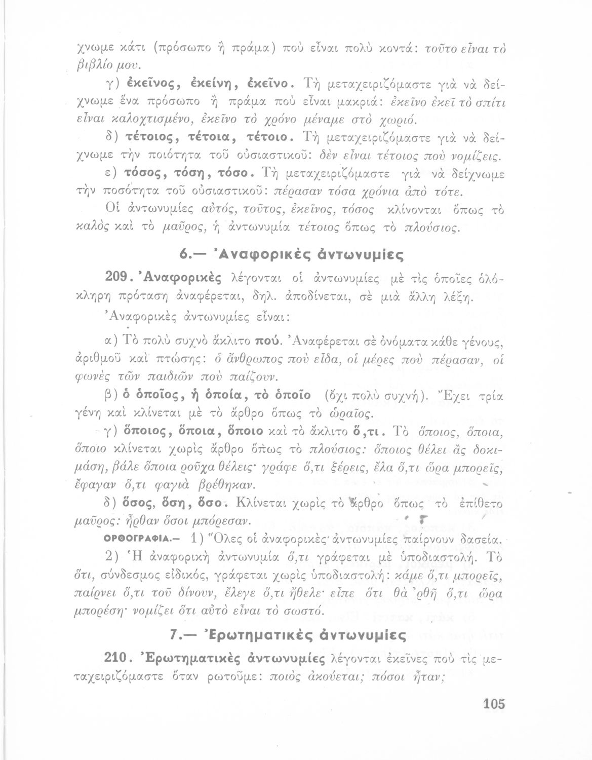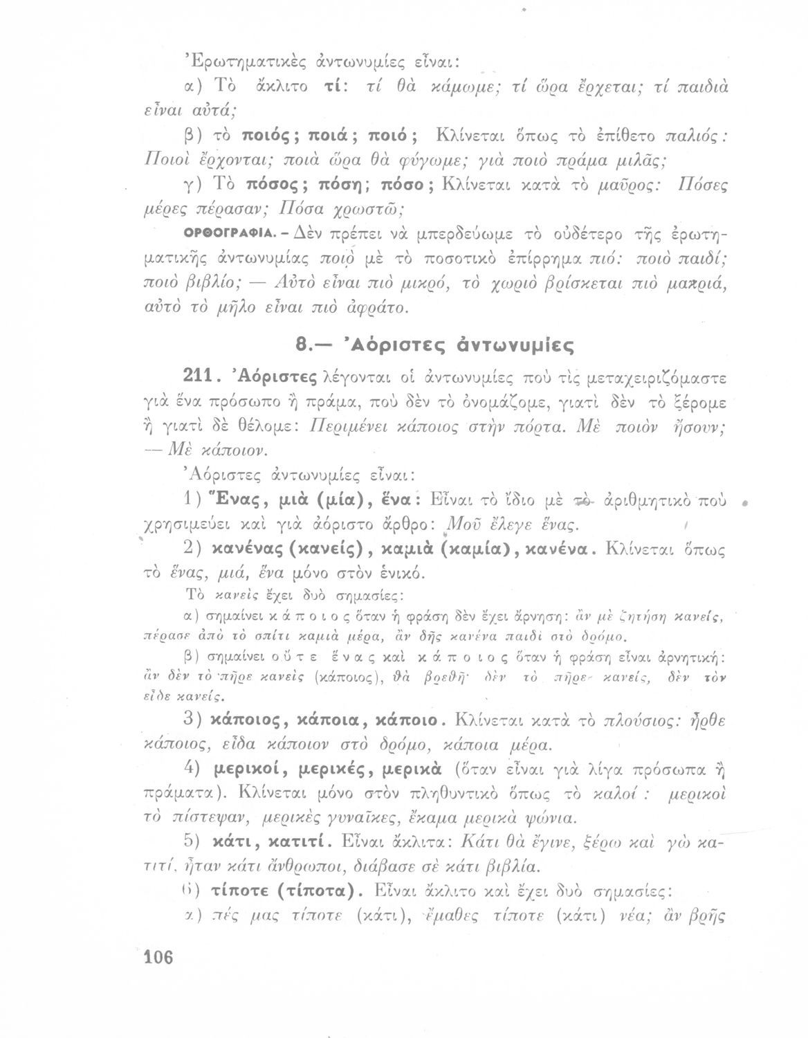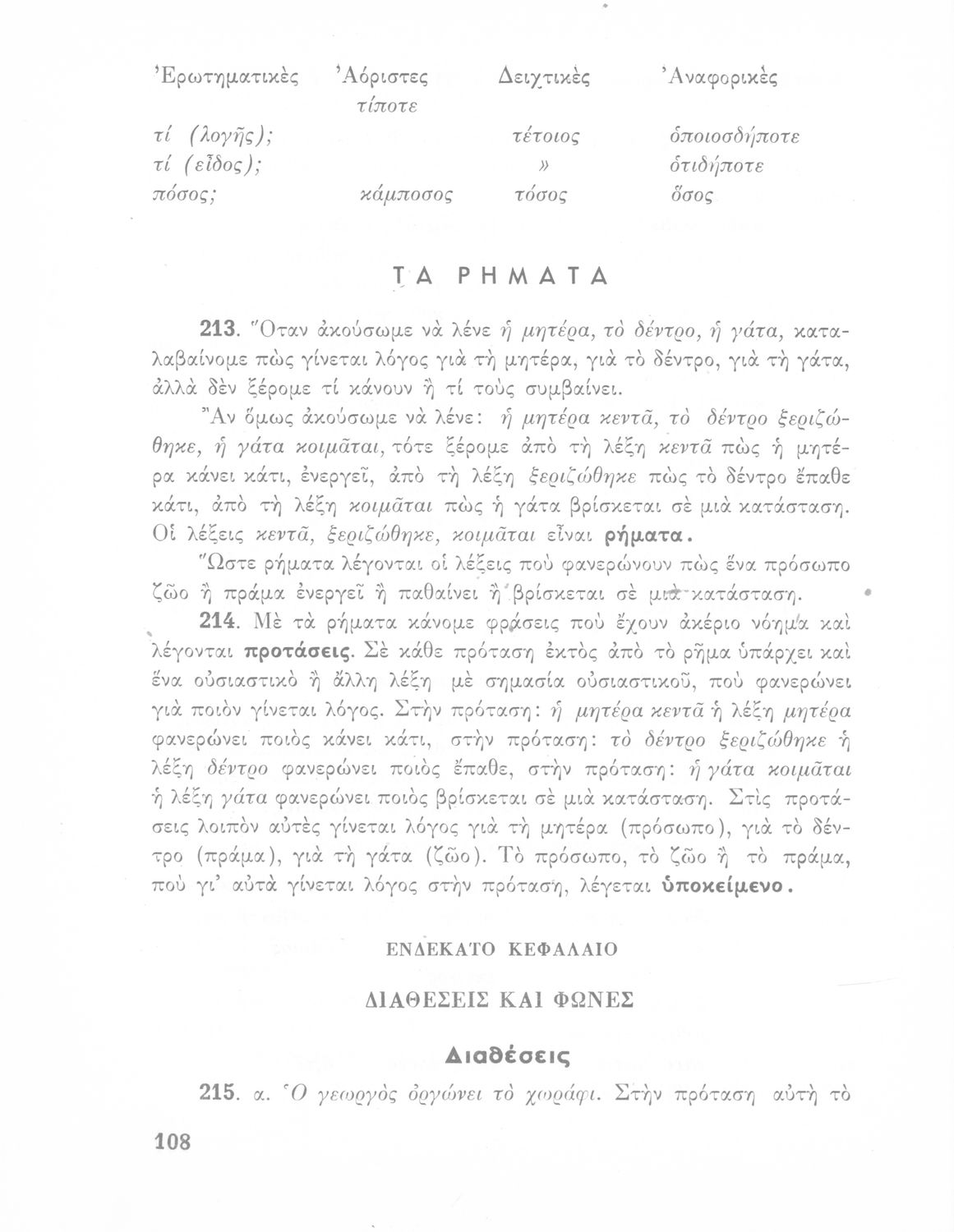 Σχολικό εγχειρίδιο Γραμματικής για τη ΣΤ΄ Δημοτικού και τις τάξεις της Μέσης εκπαίδευσης. Περιέχει τη διδασκαλία της Γραμματικής της δημοτικής και για τους παιδαγωγούς αλλά και τους μαθητές.