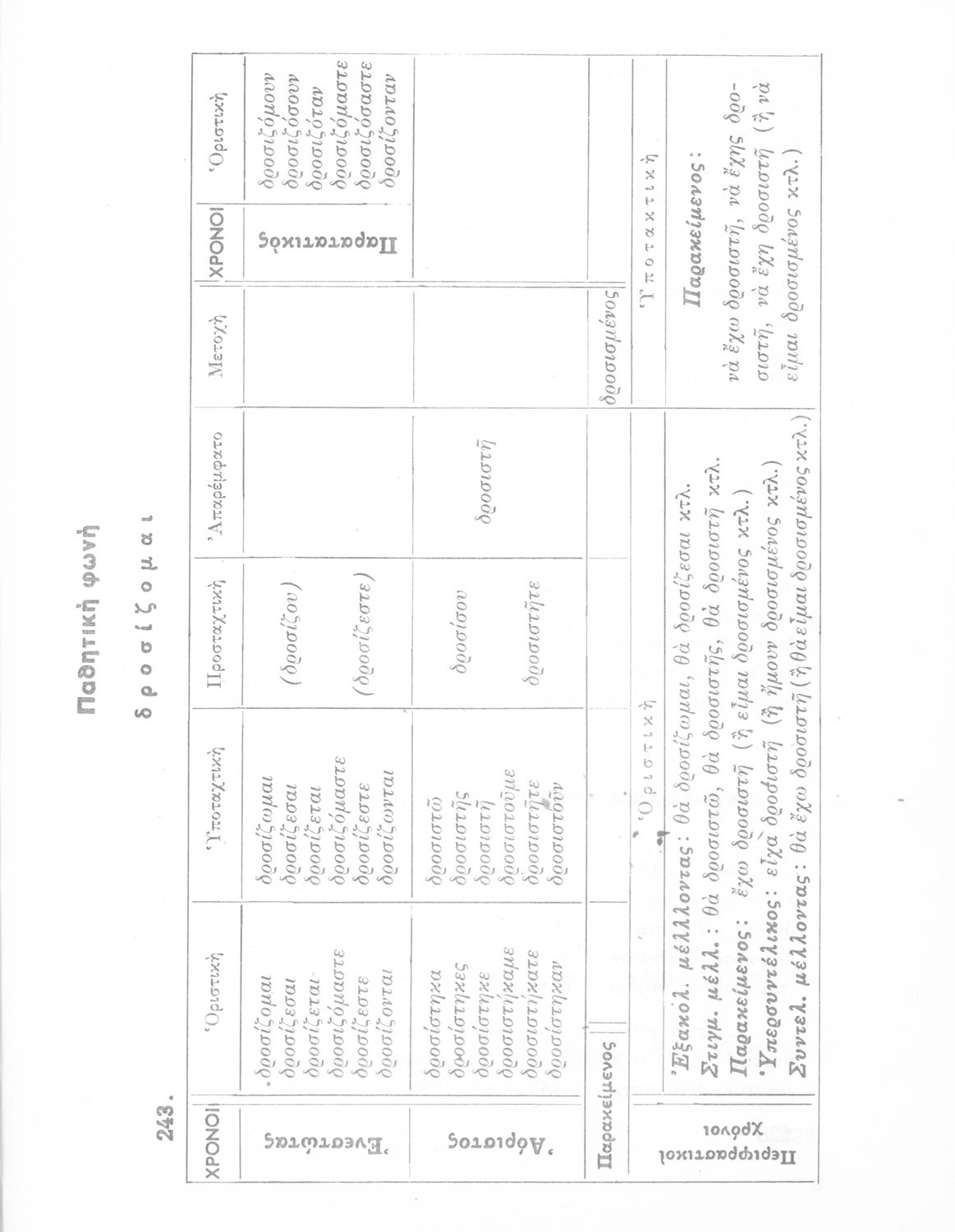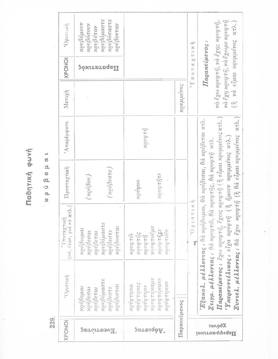 Σχολικό εγχειρίδιο γραμματικής για τους μαθητές της Ε΄ και ΣΤ΄ τάξης του Δημοτικού. Περιέχει τη διδασκαλία της γραμματικής της καθαρεύουσας με κανόνες και παραδείγματα.