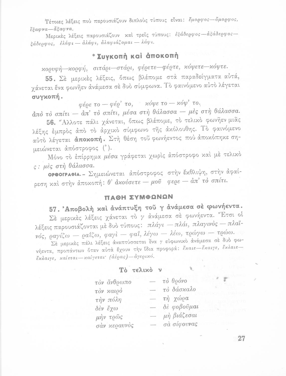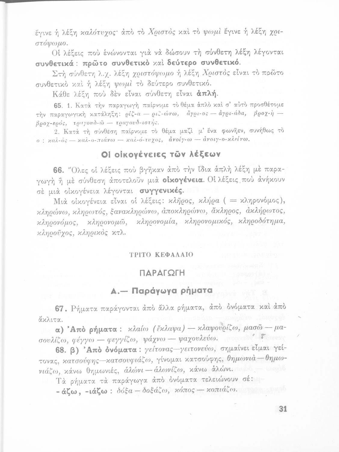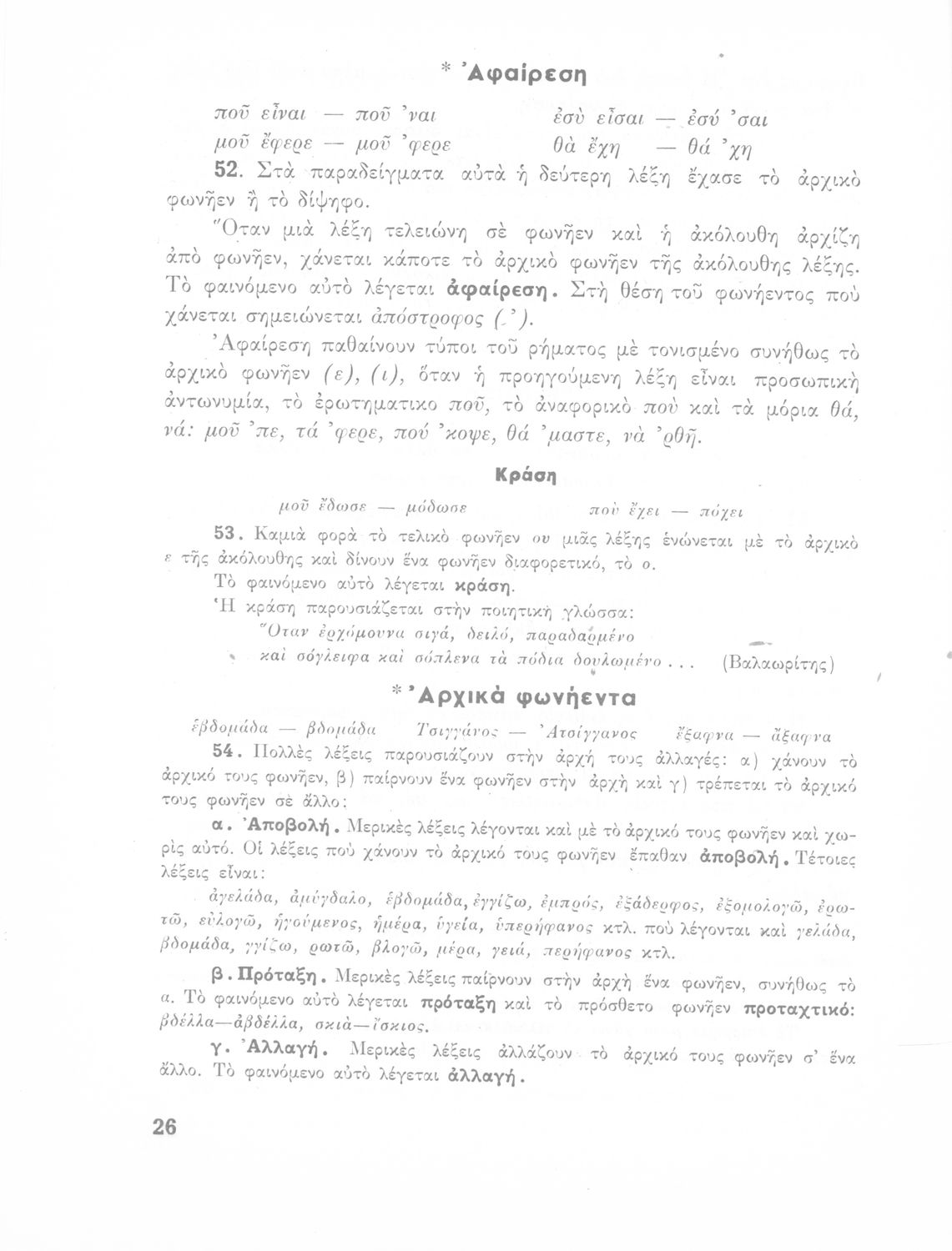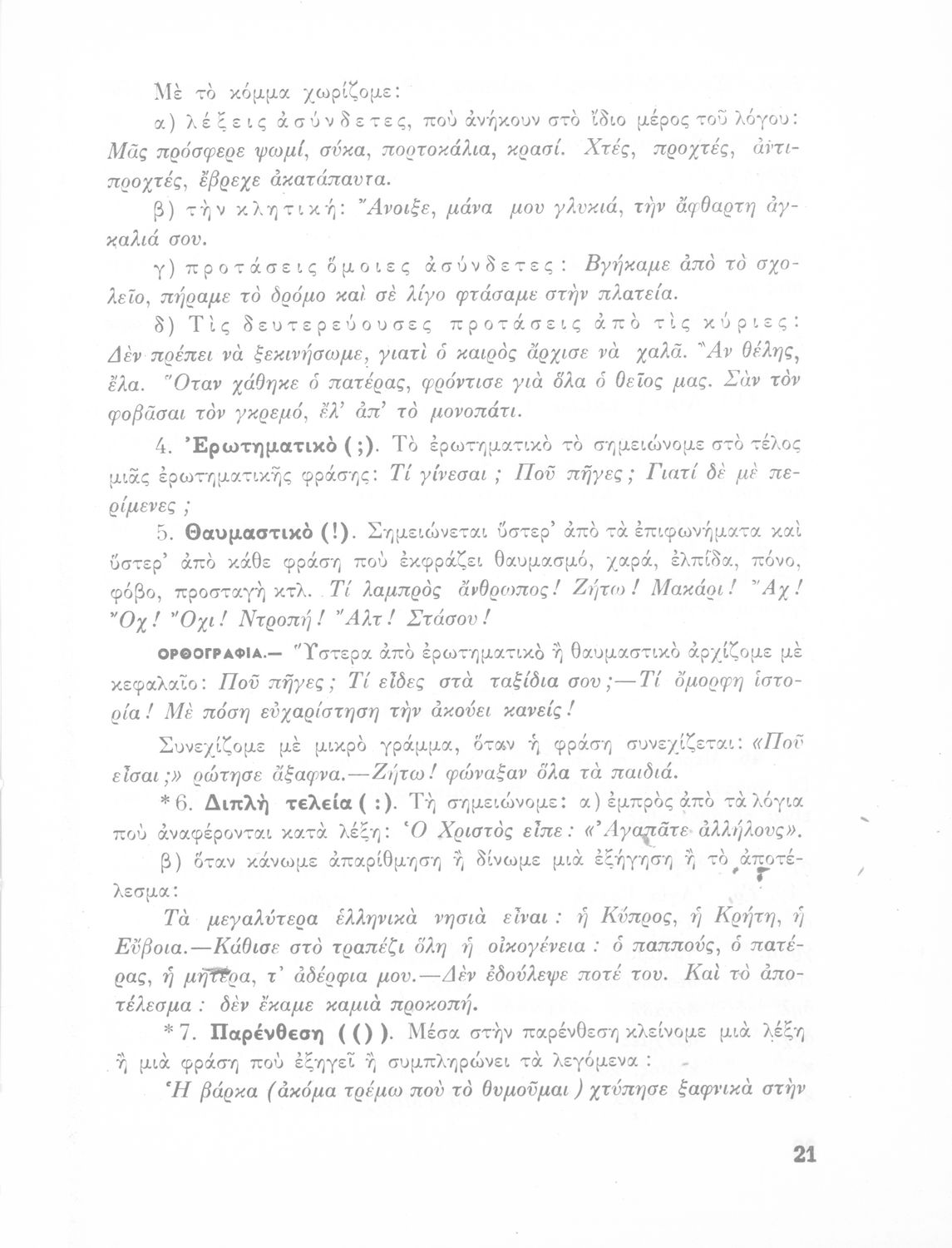 Σχολικό εγχειρίδιο Γραμματικής για τη ΣΤ΄ Δημοτικού και τις τάξεις της Μέσης εκπαίδευσης. Περιέχει τη διδασκαλία της Γραμματικής της δημοτικής και για τους παιδαγωγούς αλλά και τους μαθητές.