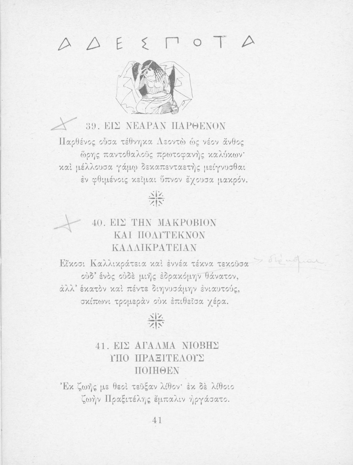 Σχολικό εγχειρίδιο Αρχαίων Ελληνικών Ε΄ Γυμνασίου που περιλαμβάνει αποσπάσματα από έργα αρχαίων Ελλήνων και χριστιανών ποιητών, και λεξιλόγιο