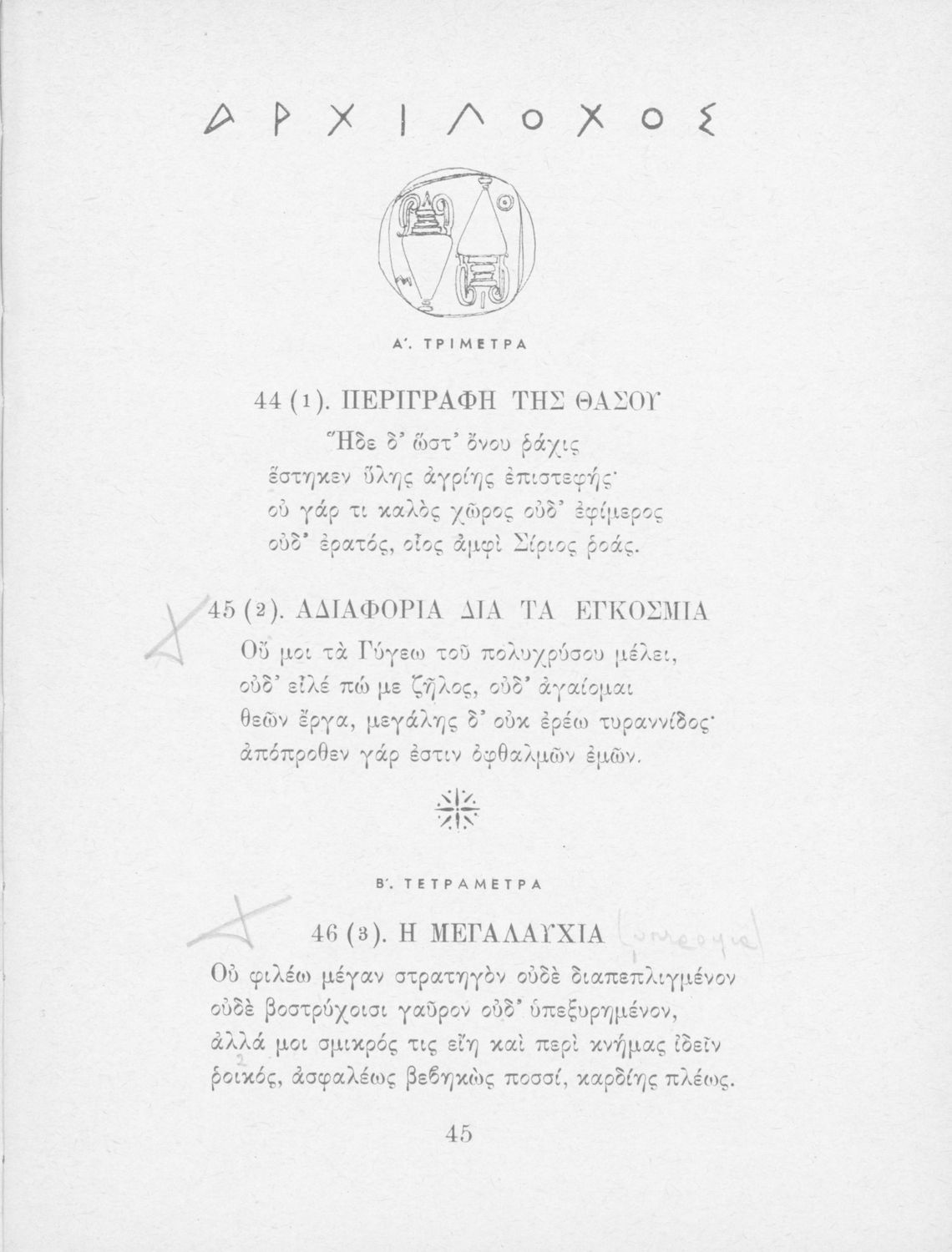 Σχολικό εγχειρίδιο Αρχαίων Ελληνικών Ε΄ Γυμνασίου που περιλαμβάνει αποσπάσματα έργων αρχαίων Ελλήνων λυρικών, πολιτικές και γνωμικές ελεγείες, ιάμβους και επιγράμματα. Περιέχει υπόμνημα με ερμηνευτικά, ...