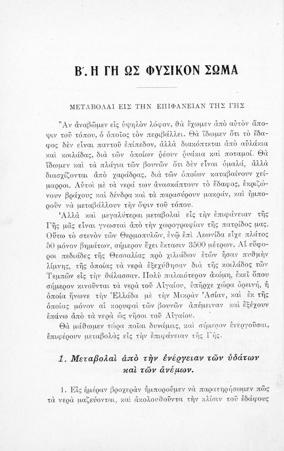 Σχολικό εγχειρίδιο Γεωγραφίας Β' Ελληνικού Σχολείου που περιλαμβάνει στοιχεία μαθηματικής και φυσικής γεωγραφίας και εξετάζει ενδεικτικές χώρες από τις πέντε ηπείρους από γεωφυσική άποψη.