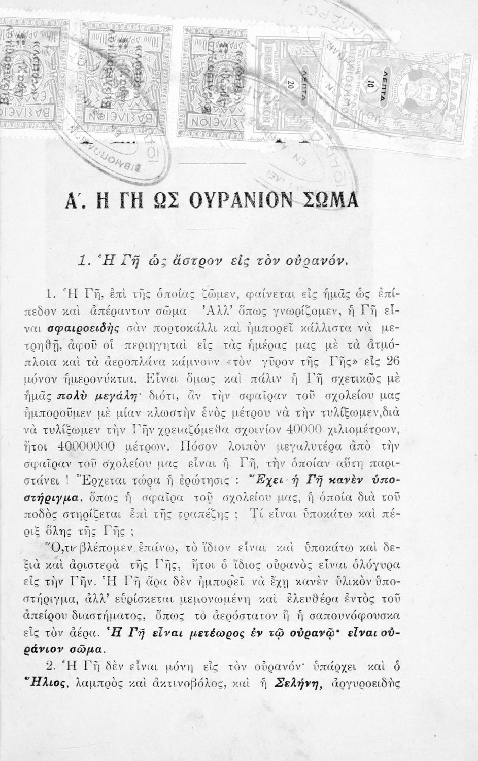 Τάξη:  Β' Ελληνικού Σχολείου / Γ'Ελληνικού Σχολείου / Αστικό Σχολείο / Παρθεναγωγείο