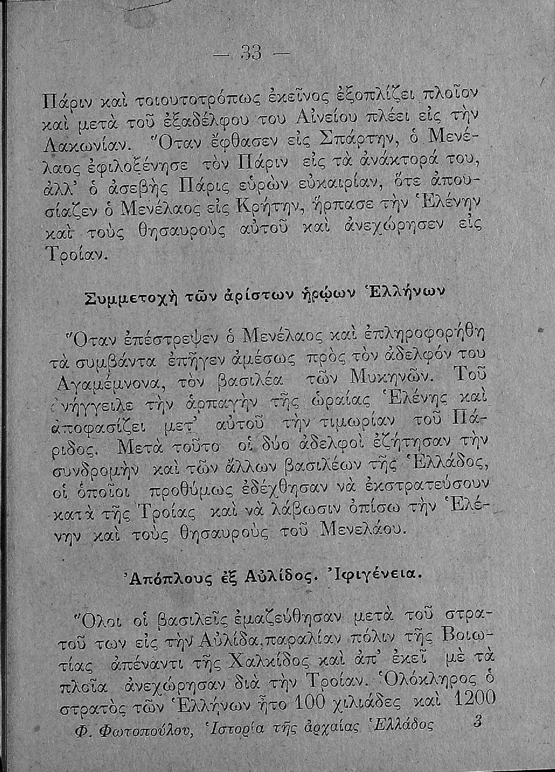 Ιστορία της αρχαίας Ελλάδος τεύχος πρώτον περιέχον την ύλην του προγράμματος της Γ’ τάξης των Δημοτικών Σχολείων από του Ηρακλέους μέχρι τέλους του Τρωικού Πολέμου