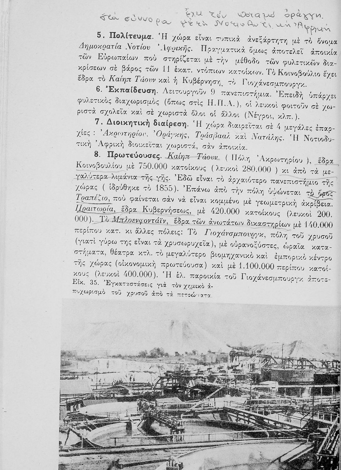 Μαθητικό βοήθημα Γεωγραφίας για την Ε' Δημοτικού. Πρόκειται για βιβλίο φυσικής και μαθηματικής γεωγραφίας. Εξετάζει τις Ηπείρους και τα κράτη τους γεωφυσικά, πολιτικά και οικονομικά χωρίζοντας τη μελέτη σε Νέο