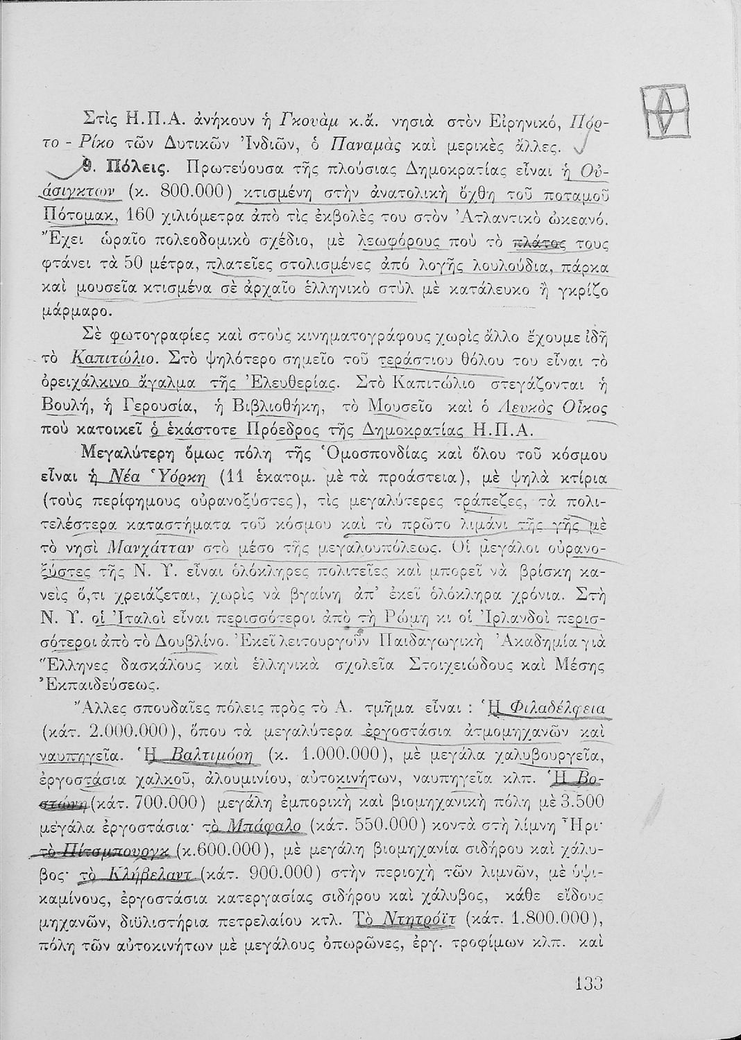 Μαθητικό βοήθημα Γεωγραφίας για την Ε' Δημοτικού. Πρόκειται για βιβλίο φυσικής και μαθηματικής γεωγραφίας. Εξετάζει τις Ηπείρους και τα κράτη τους γεωφυσικά, πολιτικά και οικονομικά χωρίζοντας τη μελέτη σε Νέο