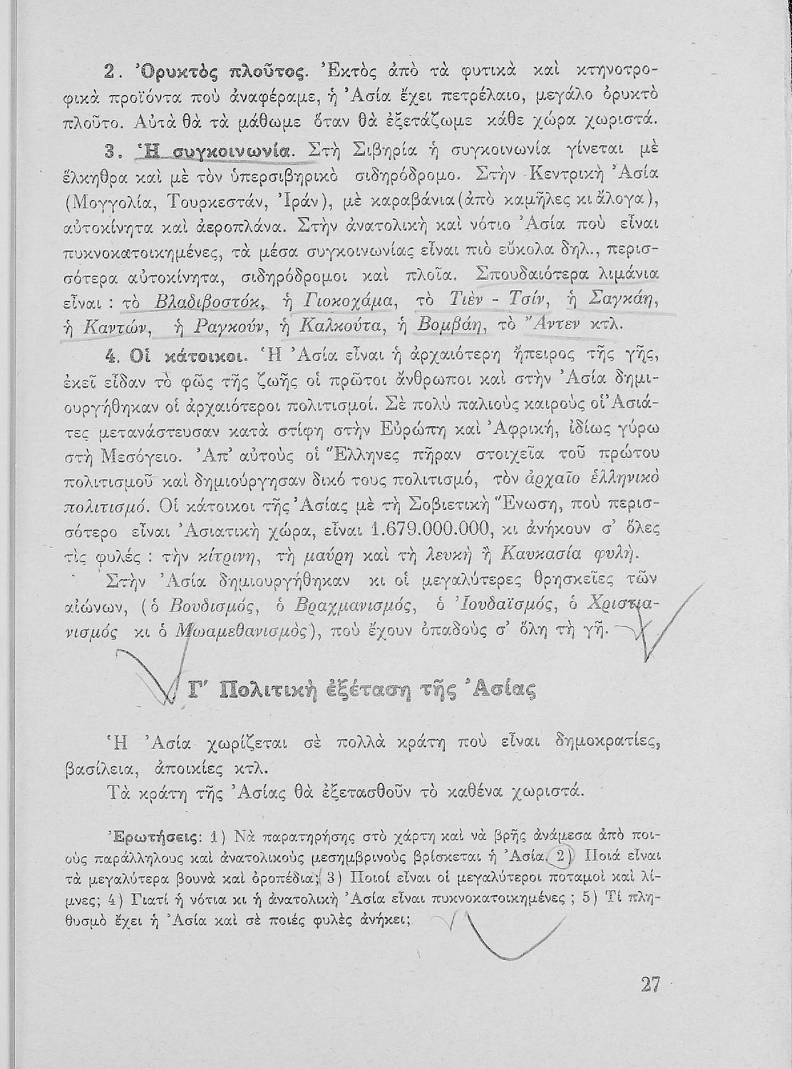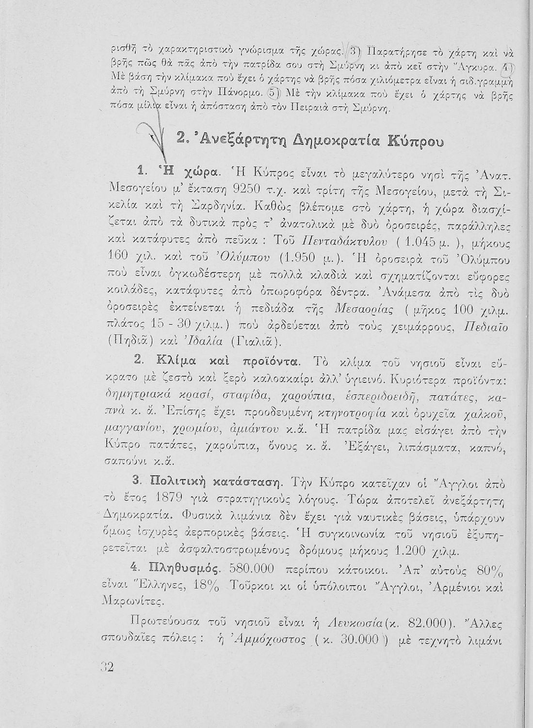 Βαθμίδα εκπαίδευσης: Πρωτοβάθμια Τάξη: Ε' Δημοτικού Μάθημα: Γεωγραφία Γλώσσα: Δημοτική Παρουσίαση περιεχομένου: Μαθητικό βοήθημα Γεωγραφίας για την Ε΄ Δημοτικού που περιλαμβάνει εισαγωγή στη φυσική, μαθηματική και πολιτική γεωγραφία και εξετάζει ενδεικτικές χώρες και περιοχές από τις πέντε ηπείρους, εκτός της Ευρώπης, από γεωφυσική και πολιτική άποψη. |