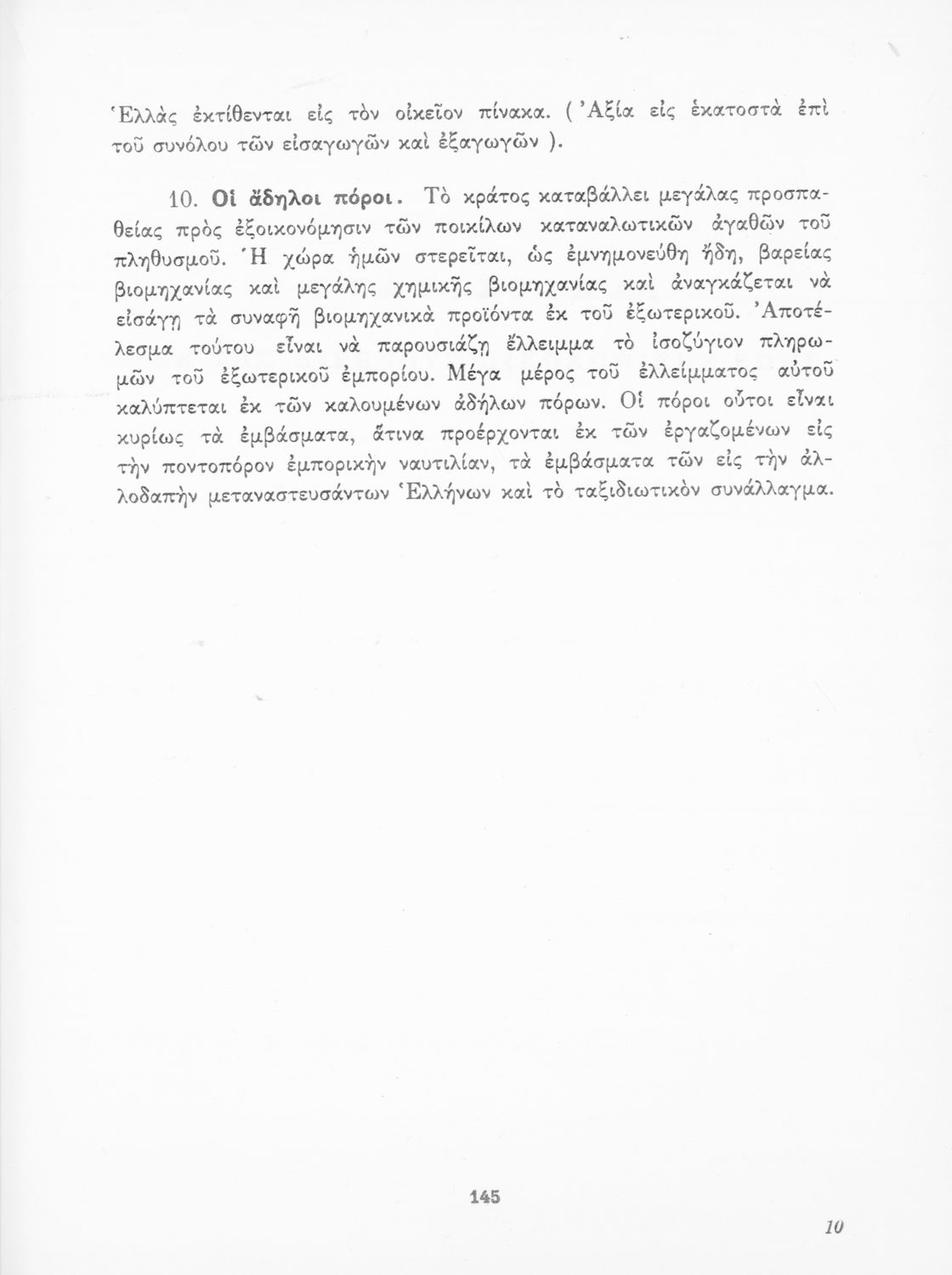 Σχολικό εγχειρίδιο Γεωγραφίας που περιλαμβάνει εισαγωγή στην ανθρωπογεωγραφία και την οικονομική και πολιτισμική γεωγραφία και εξετάζει την Ελλάδα από οικονομική, πολιτισμική και πολιτική άποψη. Φέρει το σύμβολο της δικτατορίας.