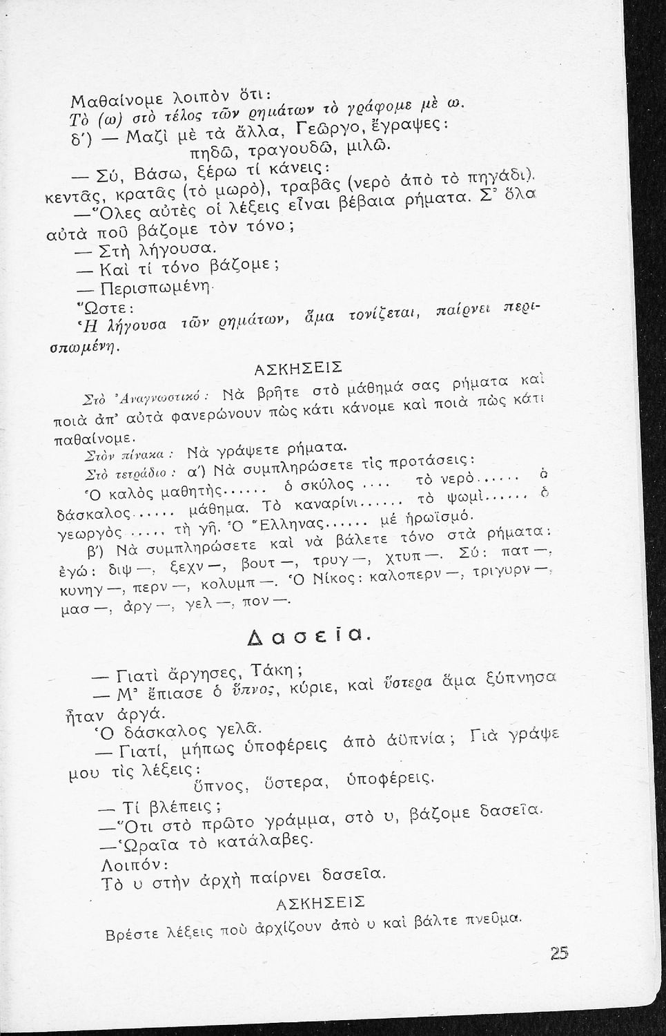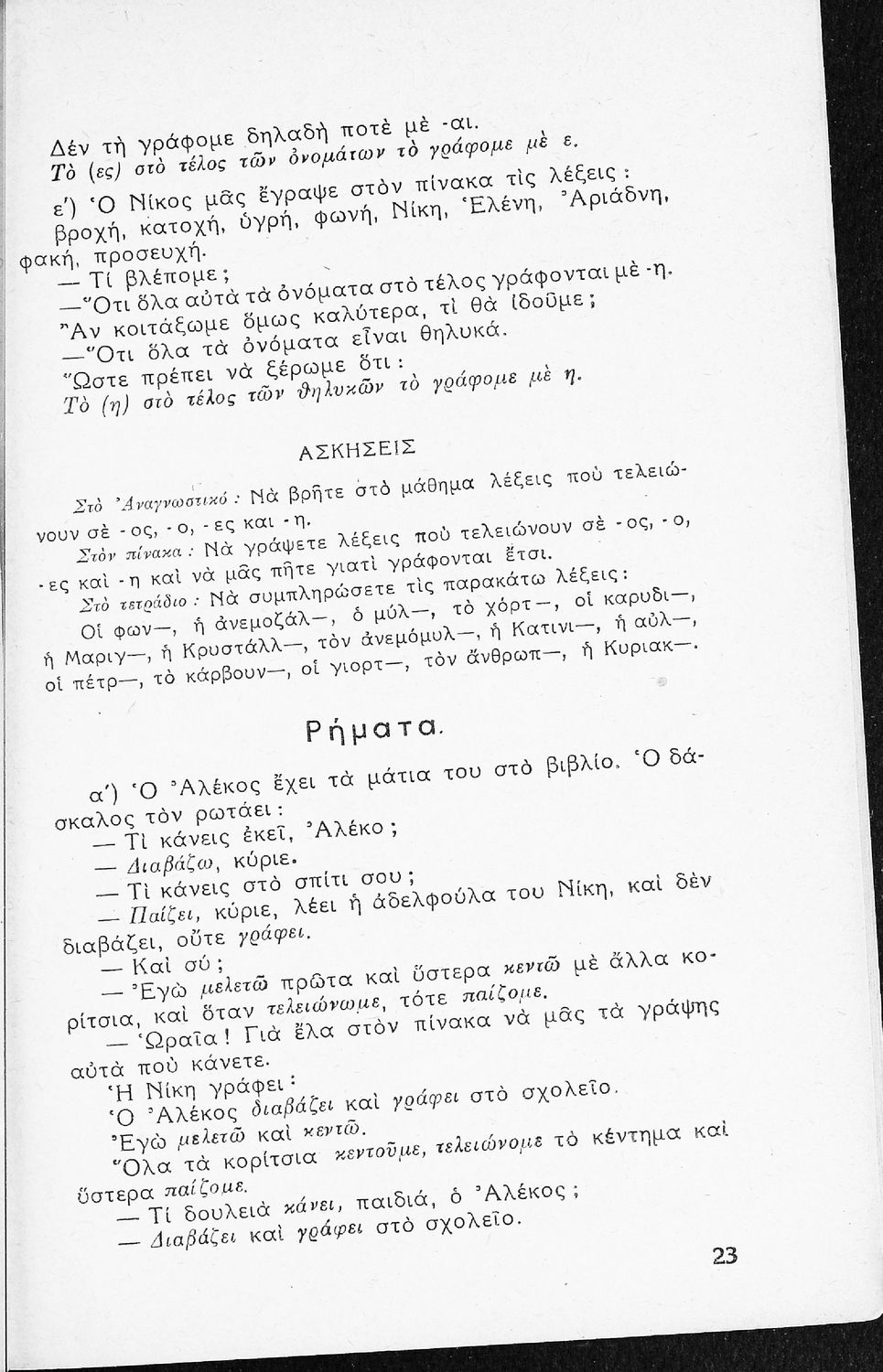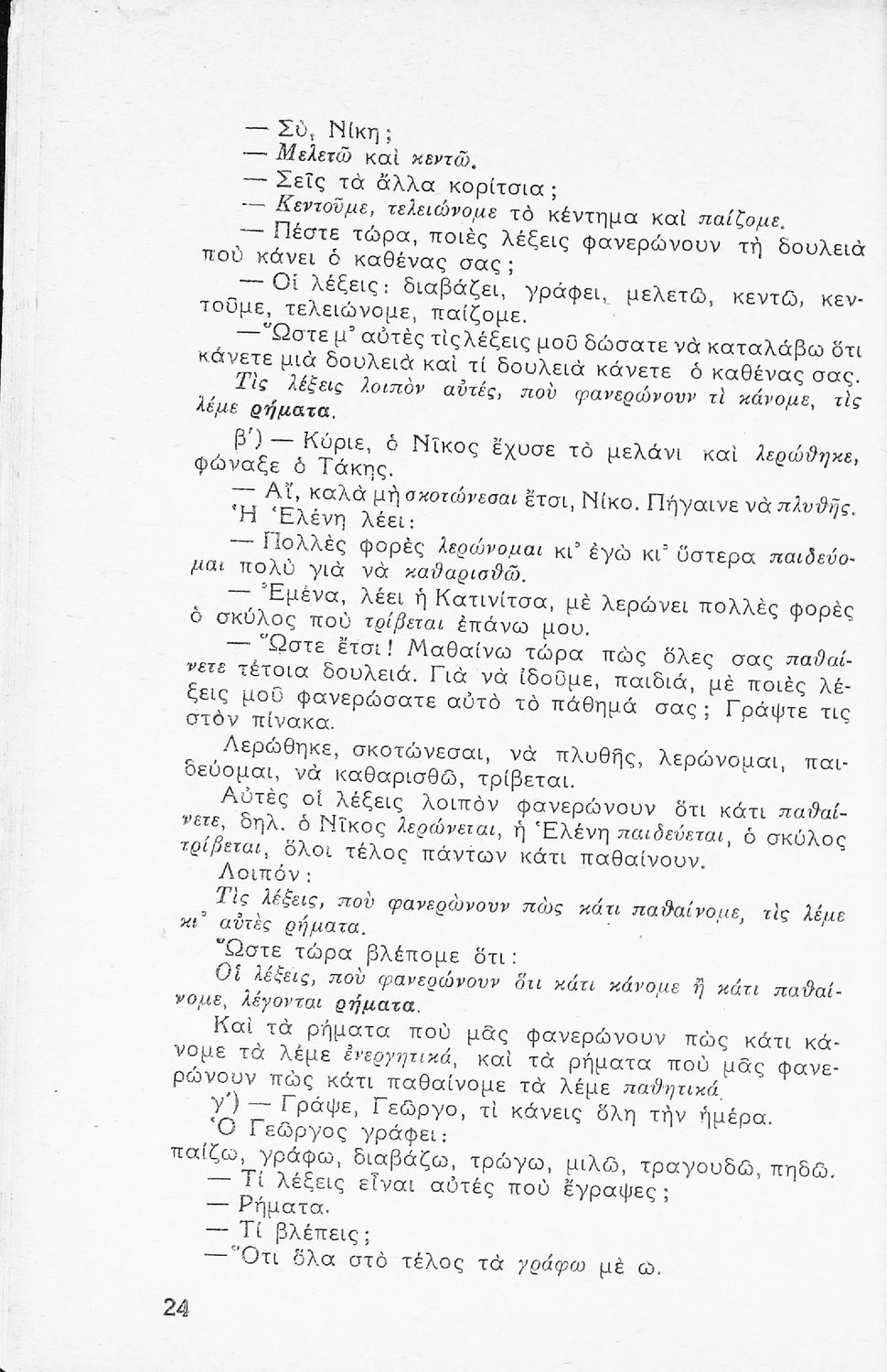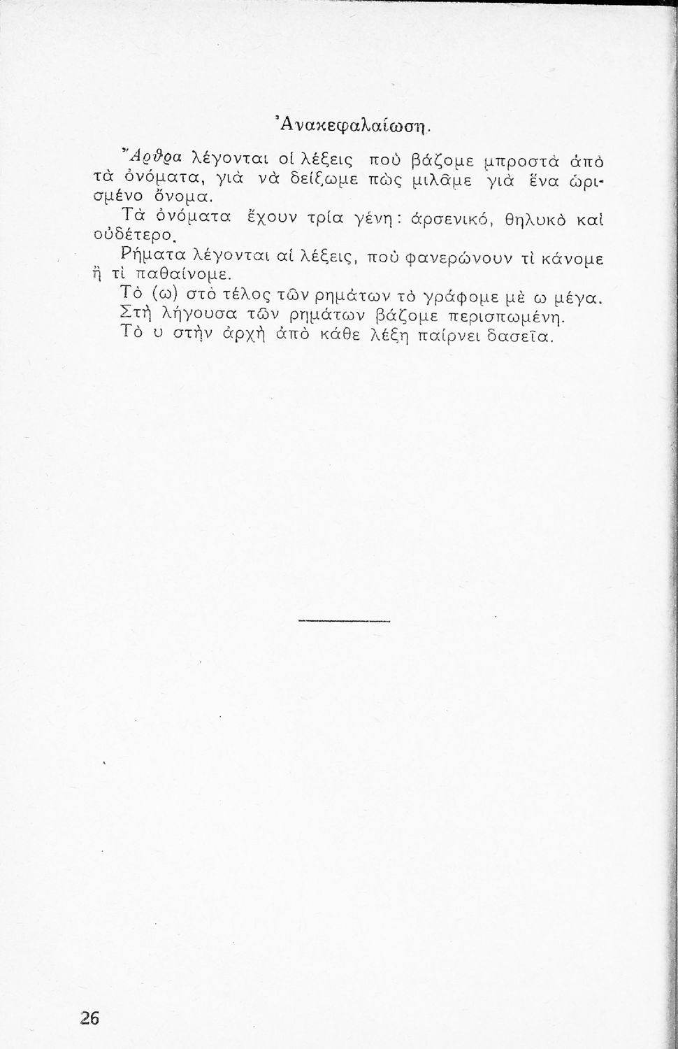 Σχολικό εγχειρίδιο Γ΄ και Δ΄ Δημοτικού που περιλαμβάνει τους κανόνες γραμματικής και τη δομή της νέας ελληνικής και είναι χωρισμένο στο φωνητικό, τυπικό και παραγωγικό μέρος.