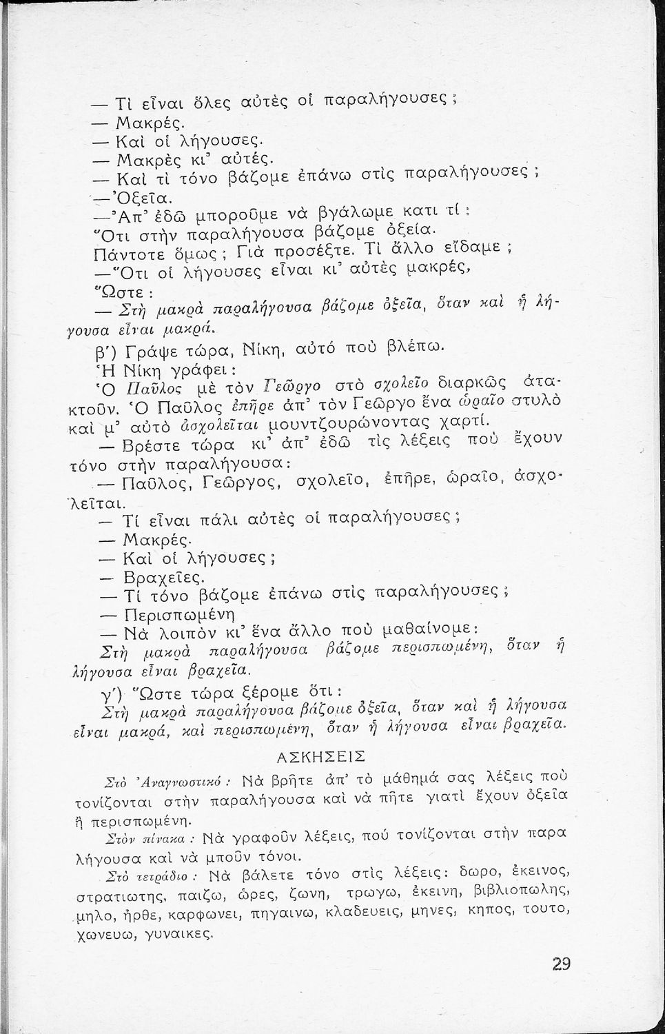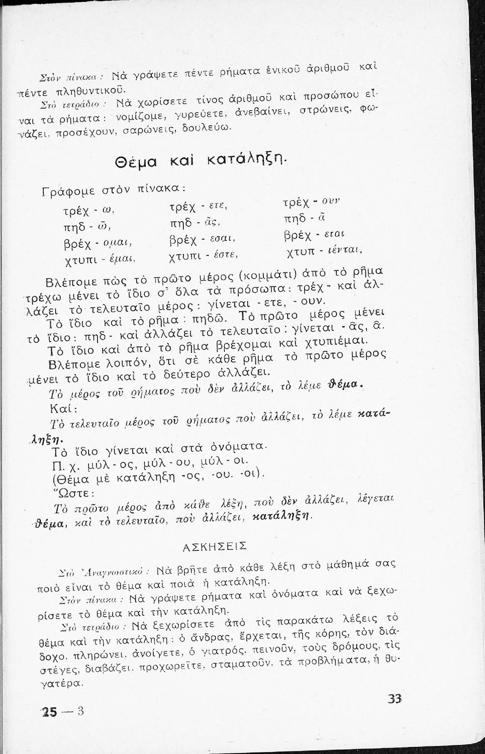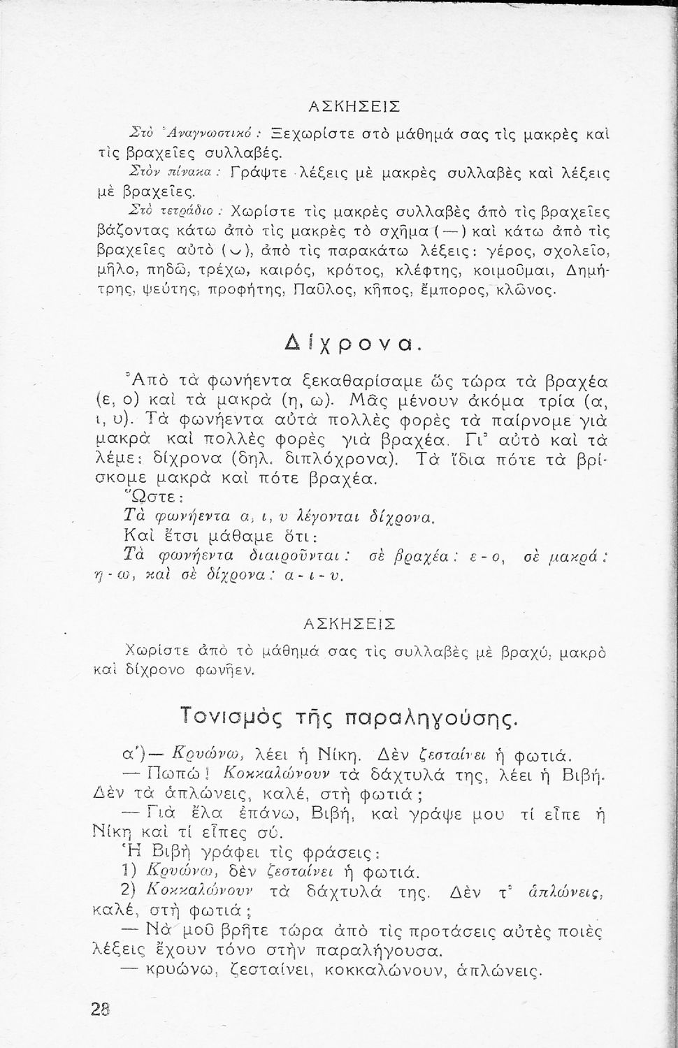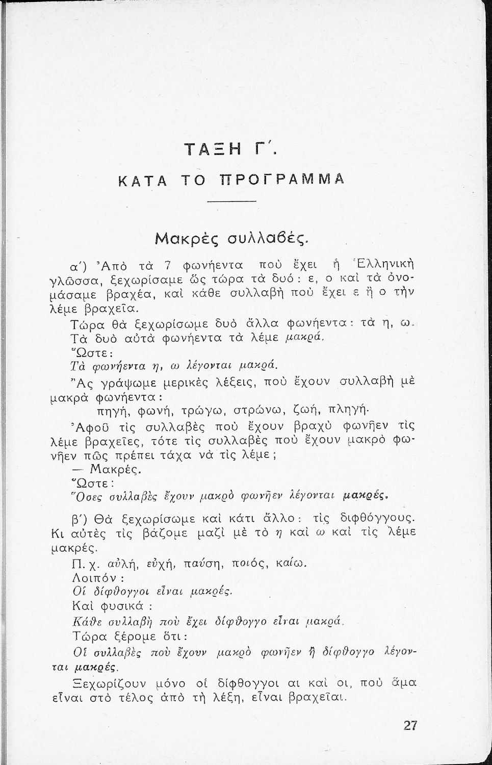 Σχολικό εγχειρίδιο Γ΄ και Δ΄ Δημοτικού που περιλαμβάνει τους κανόνες γραμματικής και τη δομή της νέας ελληνικής και είναι χωρισμένο στο φωνητικό, τυπικό και παραγωγικό μέρος.