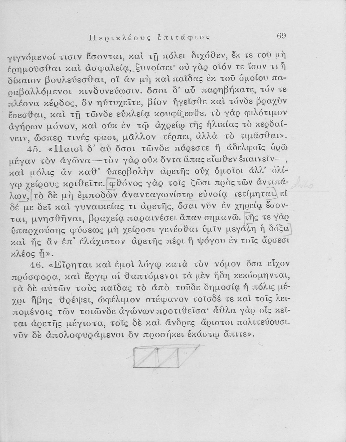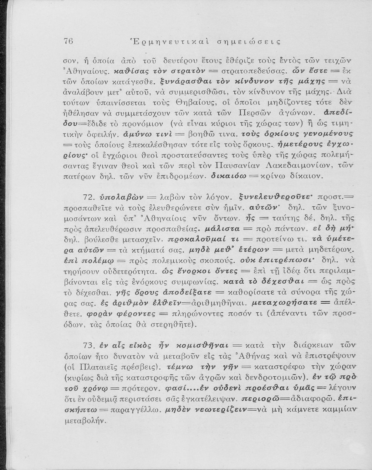 Σχολικό εγχειρίδιο Αρχαίων Ελληνικών Δ΄, Ε΄ και ΣΤ΄ Γυμνασίου που περιέχει αποσπάσματα από το έργο του Θουκυδίδη Ιστορία, ερμηνευτικά και πραγματολογικά σχόλια, και γραμματικές παρατηρήσεις του συγγραφέα.