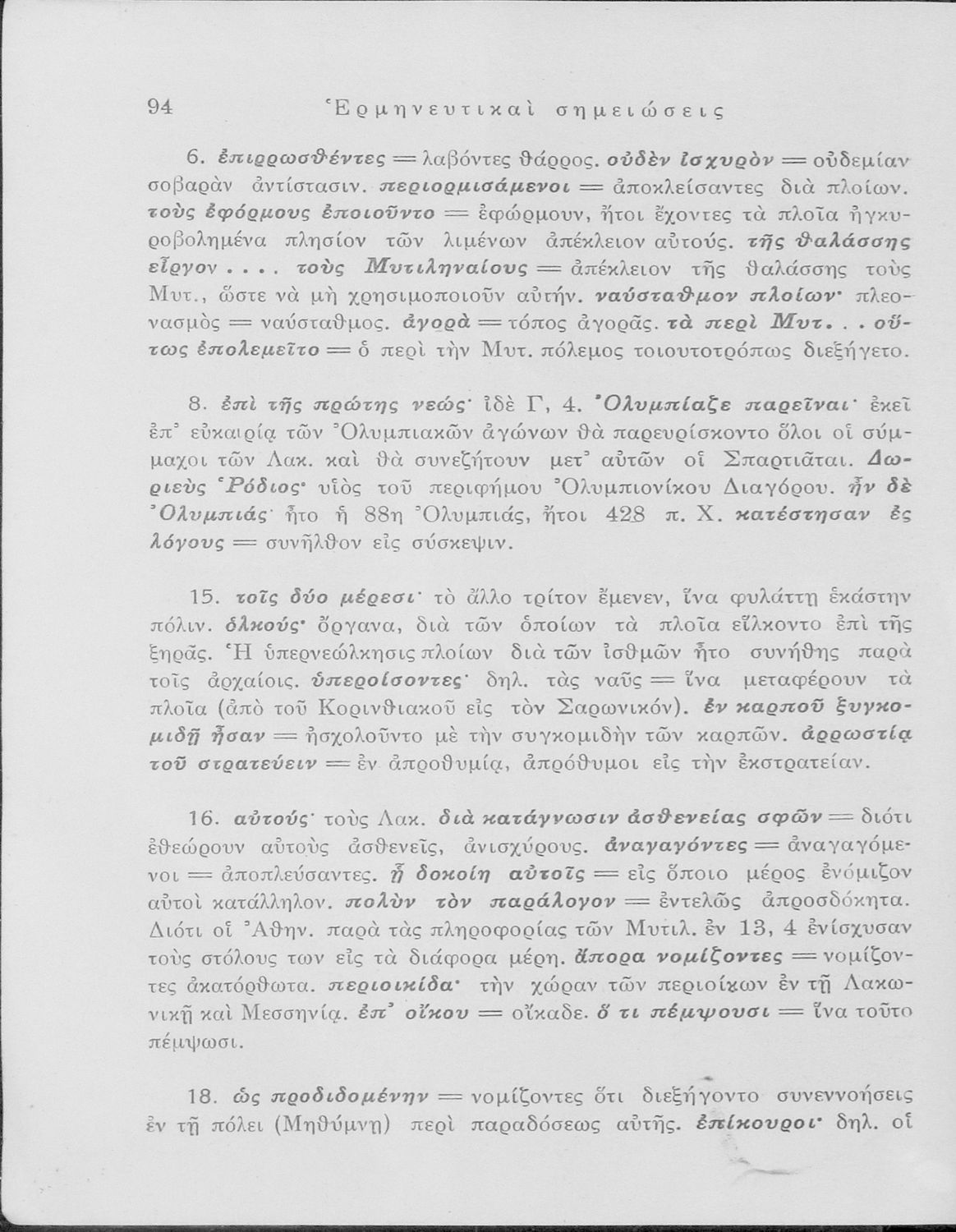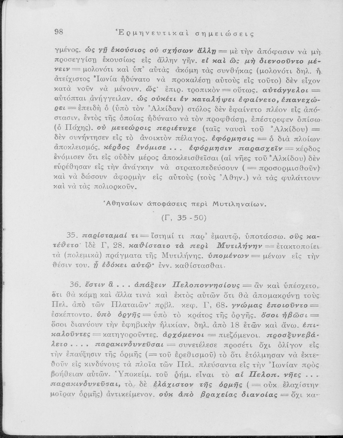 Σχολικό εγχειρίδιο Αρχαίων Ελληνικών Δ΄, Ε΄ και ΣΤ΄ Γυμνασίου που περιέχει αποσπάσματα από το έργο του Θουκυδίδη Ιστορία, ερμηνευτικά και πραγματολογικά σχόλια, και γραμματικές παρατηρήσεις του συγγραφέα.