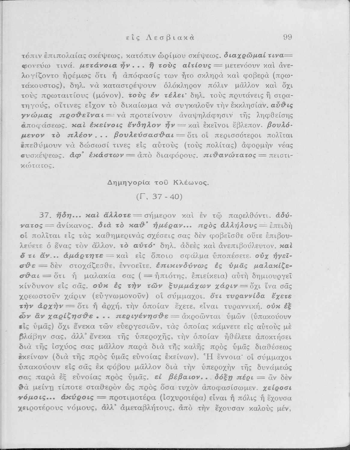 Σχολικό εγχειρίδιο Αρχαίων Ελληνικών Δ΄, Ε΄ και ΣΤ΄ Γυμνασίου που περιέχει αποσπάσματα από το έργο του Θουκυδίδη Ιστορία, ερμηνευτικά και πραγματολογικά σχόλια, και γραμματικές παρατηρήσεις.