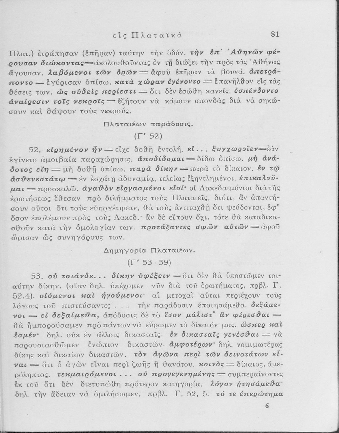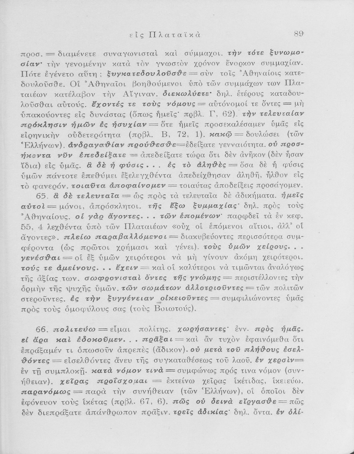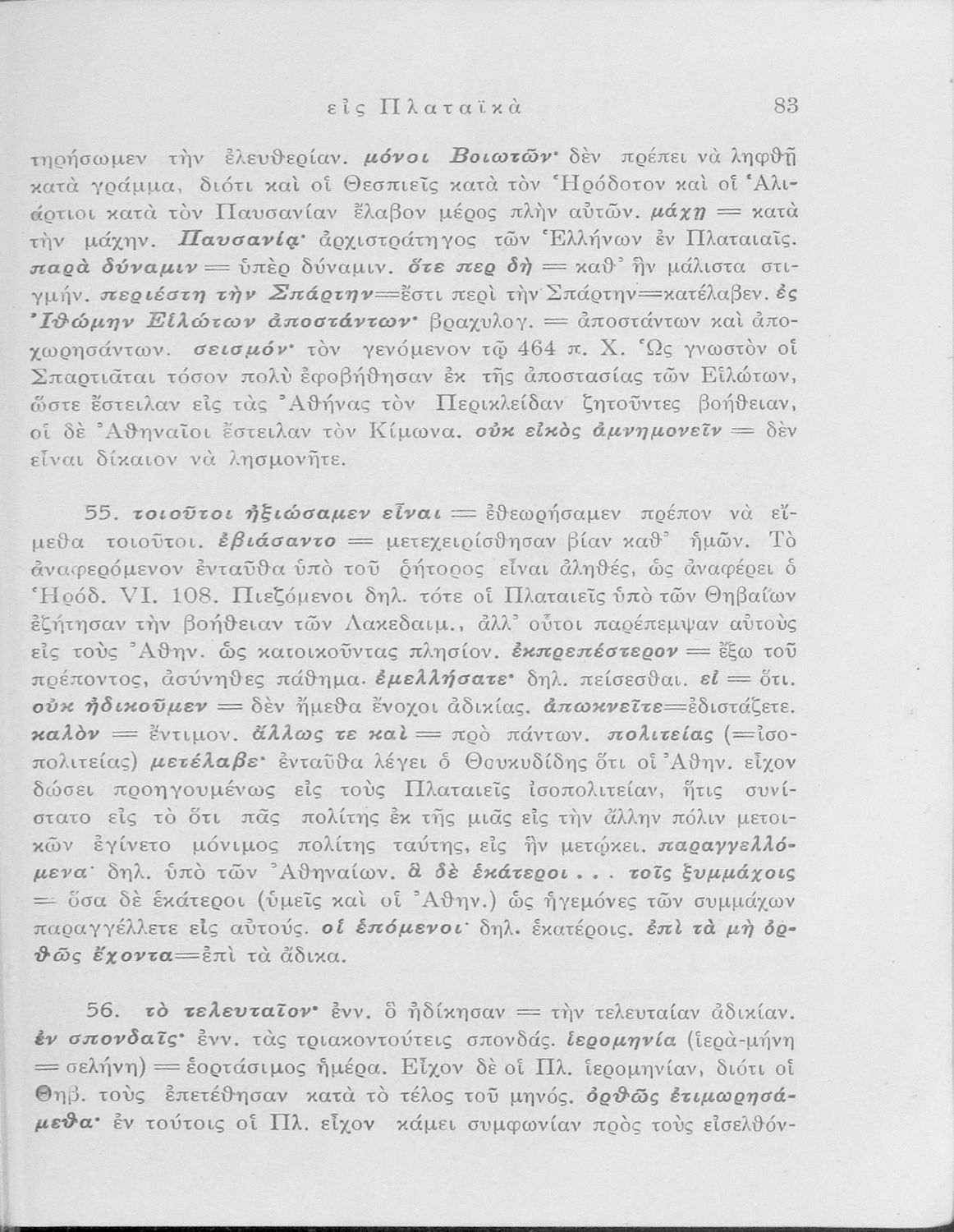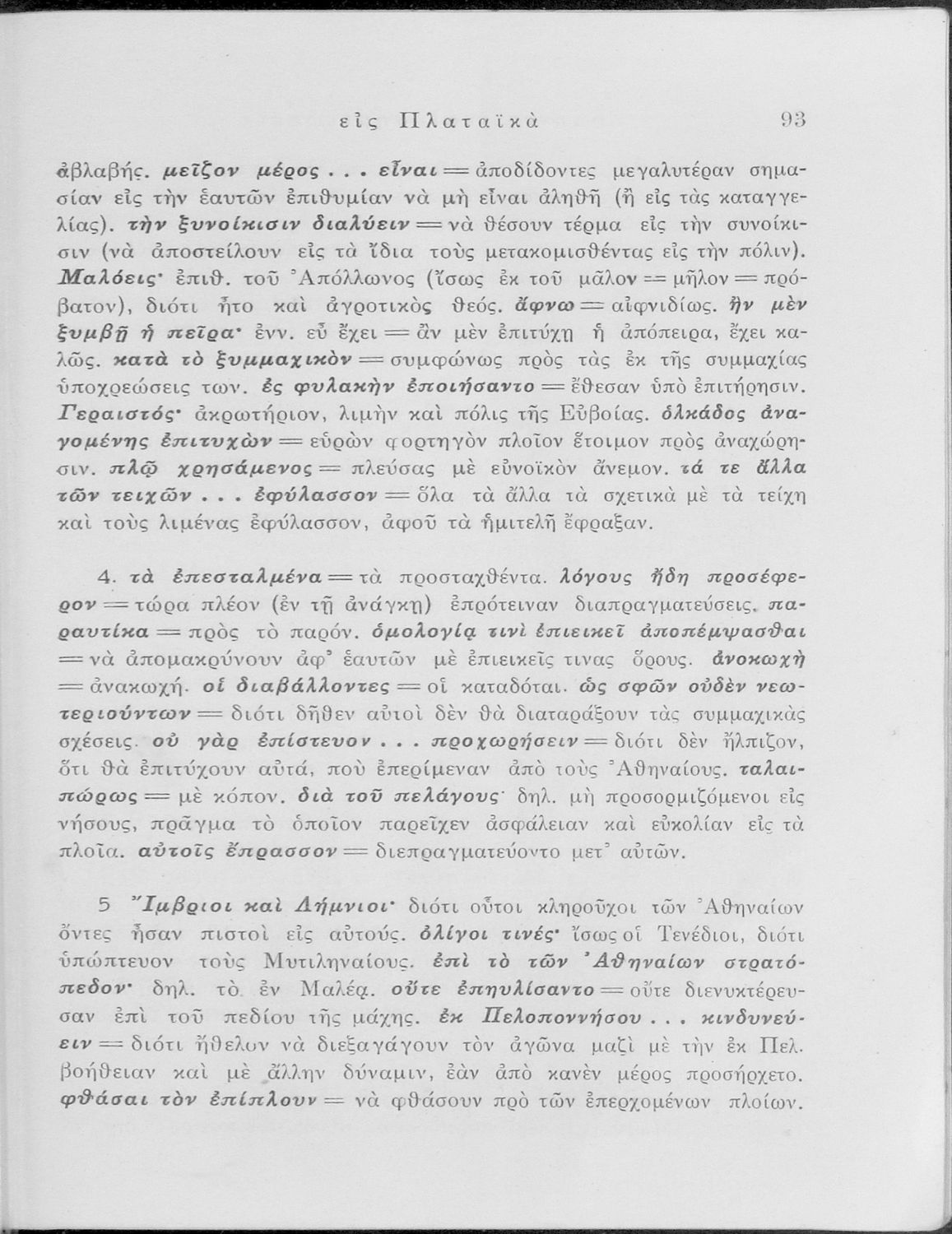 Σχολικό εγχειρίδιο Αρχαίων Ελληνικών για τις Δ΄, Ε΄ και ΣΤ΄ Γυμνασίου παλαιού τύπου που περιλαμβάνει σύντομο βιογραφικό σημείωμα του Θουκυδίδη, περιγραφή του ιστορικού πλαισίου, αποσπάσματα από τα Πλαταϊκά, τα