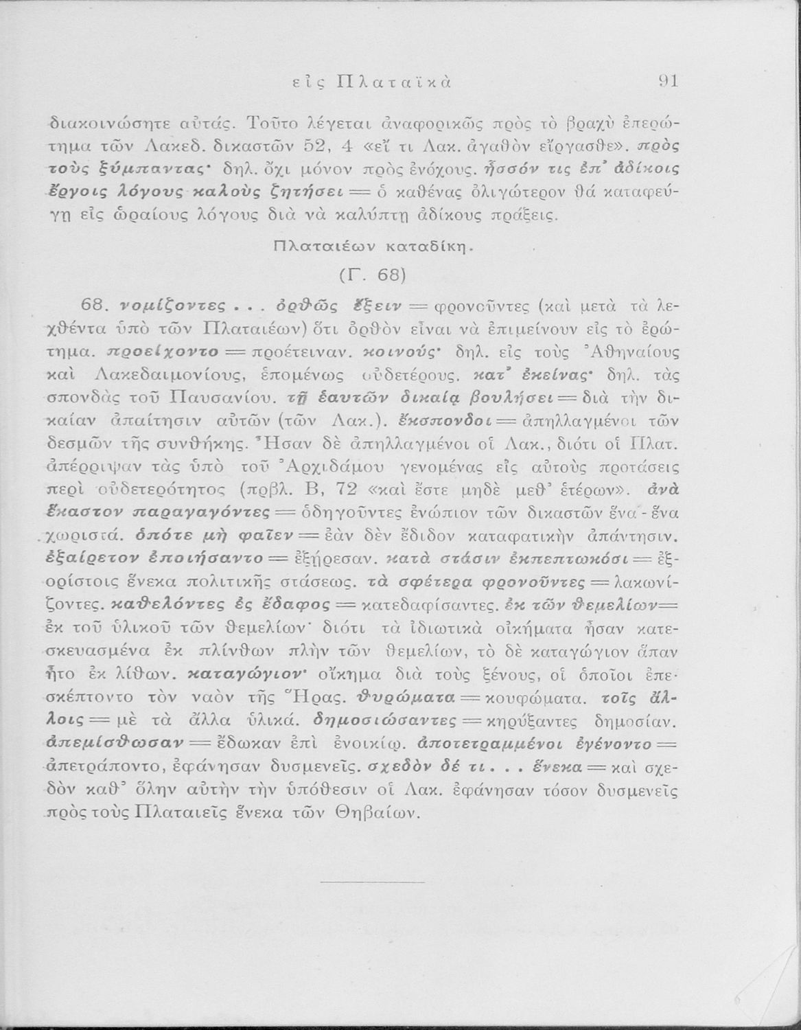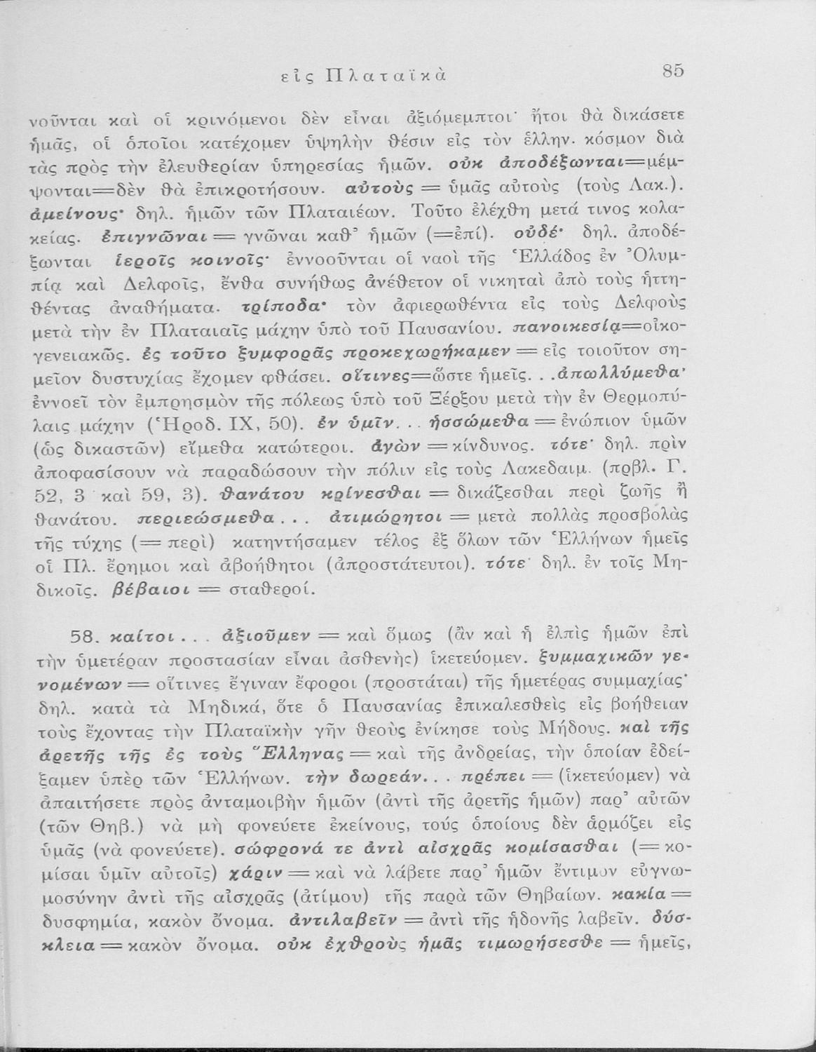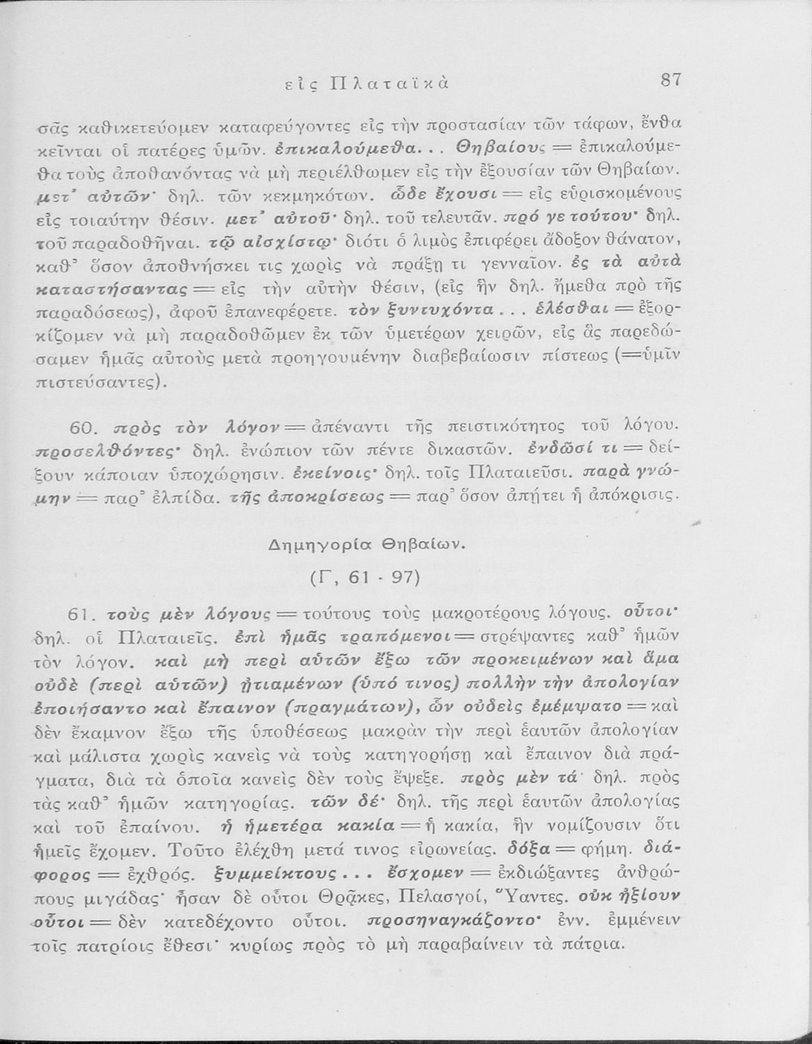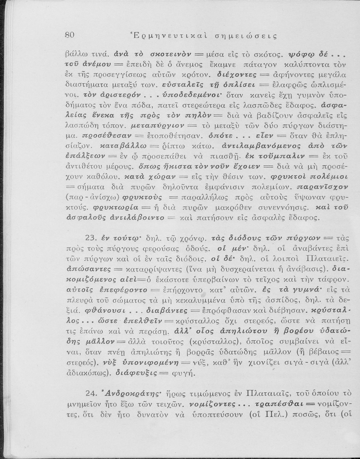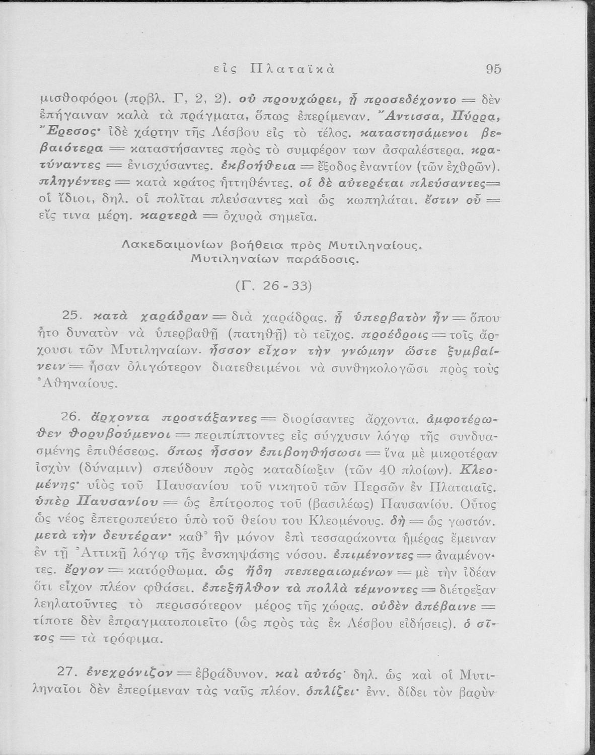 Σχολικό εγχειρίδιο Αρχαίων Ελληνικών για τις Δ΄, Ε΄ και ΣΤ΄ Γυμνασίου παλαιού τύπου που περιλαμβάνει σύντομο βιογραφικό σημείωμα του Θουκυδίδη, περιγραφή του ιστορικού πλαισίου, αποσπάσματα από τα Πλαταϊκά, τα