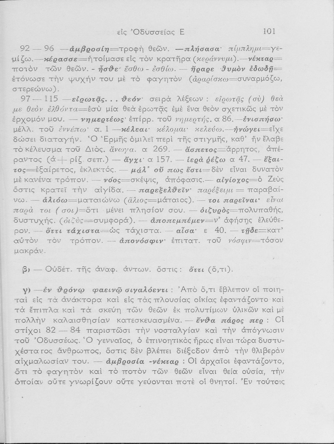 Σχολικό εγχειρίδιο της Ε΄ Γυμνασίου για το μάθημα των Αρχαίων Ελληνικών. Περιέχει αποσπάσματα από τις ραψωδίες της Οδύσσειας, ερμηνευτικά και πραγματολογικά σχόλια και τις γραμματικές παρατηρήσεις.