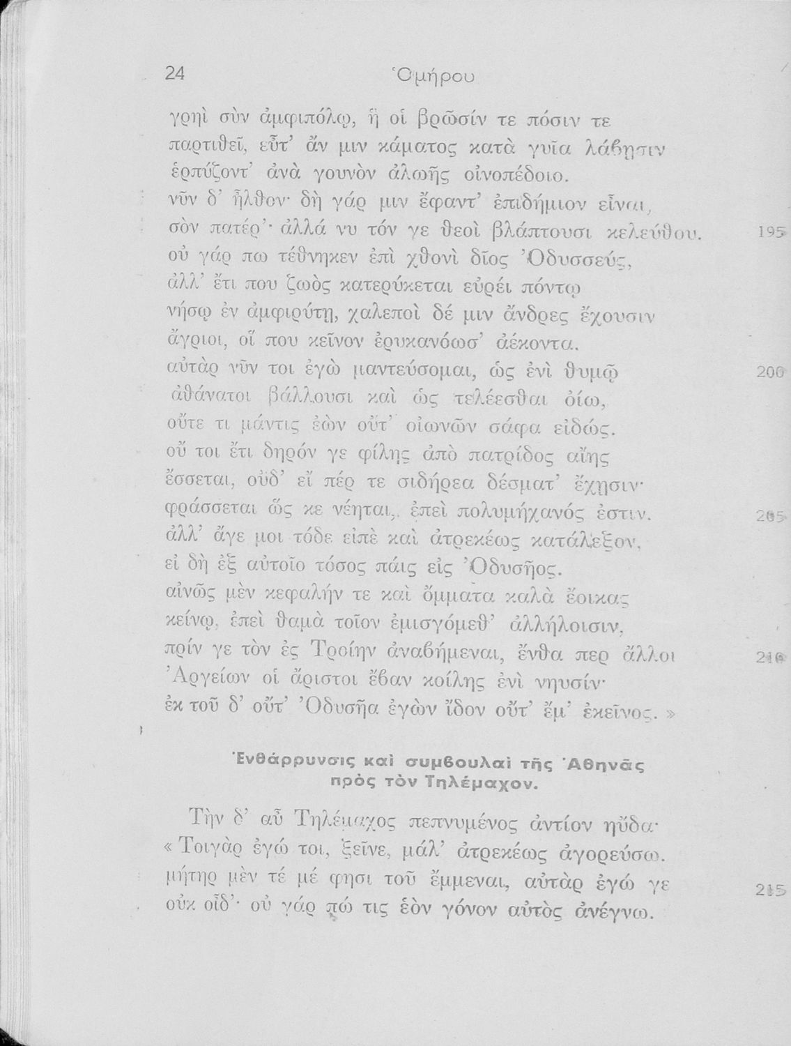 Εκλογαί εκ της Ομήρου Οδύσσειας ια την Ε΄ τάξιν των Γυμνασίων νέου τύπου