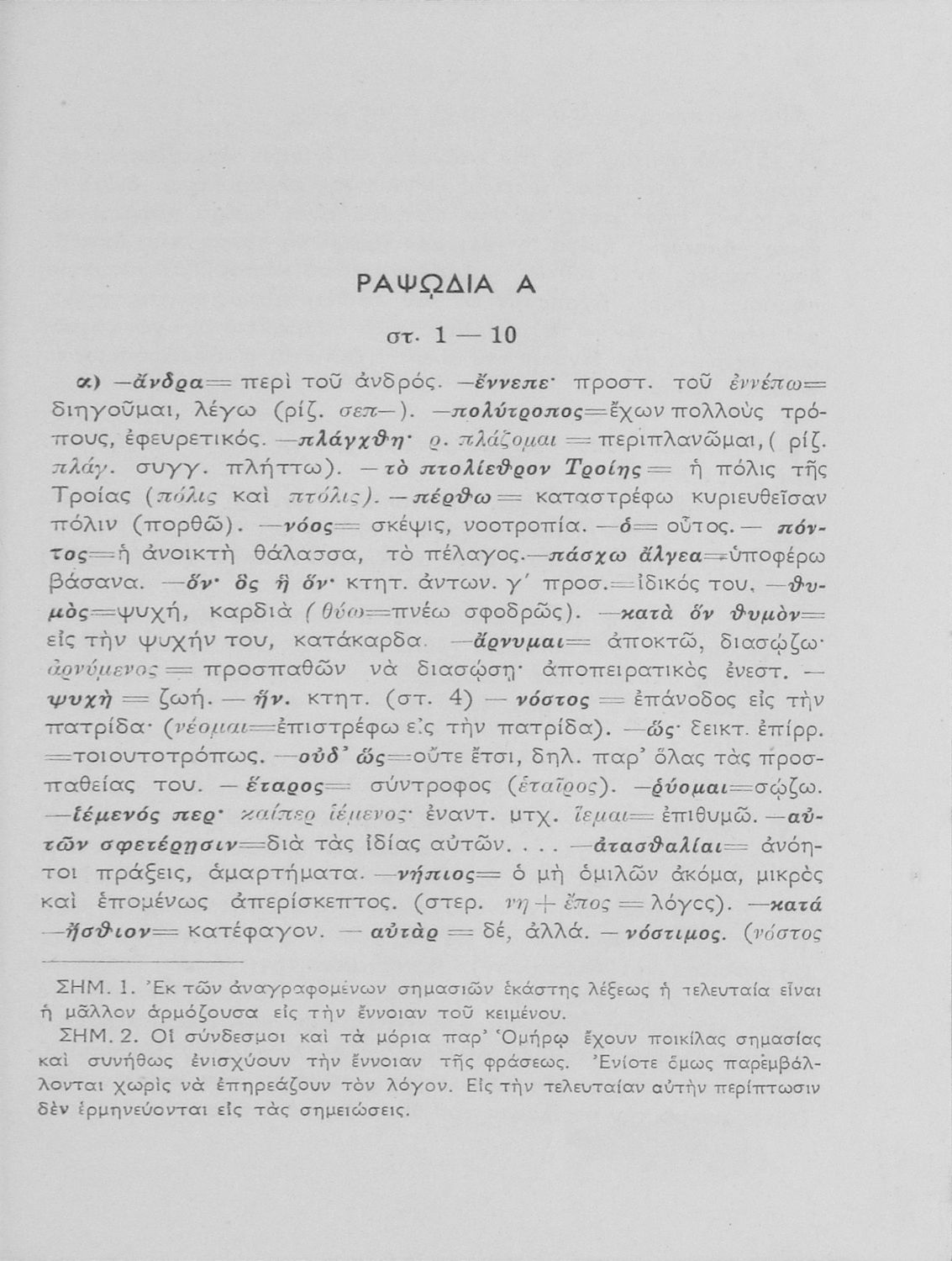 Σχολικό εγχειρίδιο Αρχαίων Ελληνικών Ε΄ Γυμνασίου που περιλαμβάνει εισαγωγικά σχόλια για τις αρχές της ελληνικής ποίησης, βιογραφία και εργογραφία του Όμηρου, αποσπάσματα από ραψωδίες της Οδύσσειας και ερμηνευτικά, πραγματολογικά και σημασιολογικά σχόλια.
