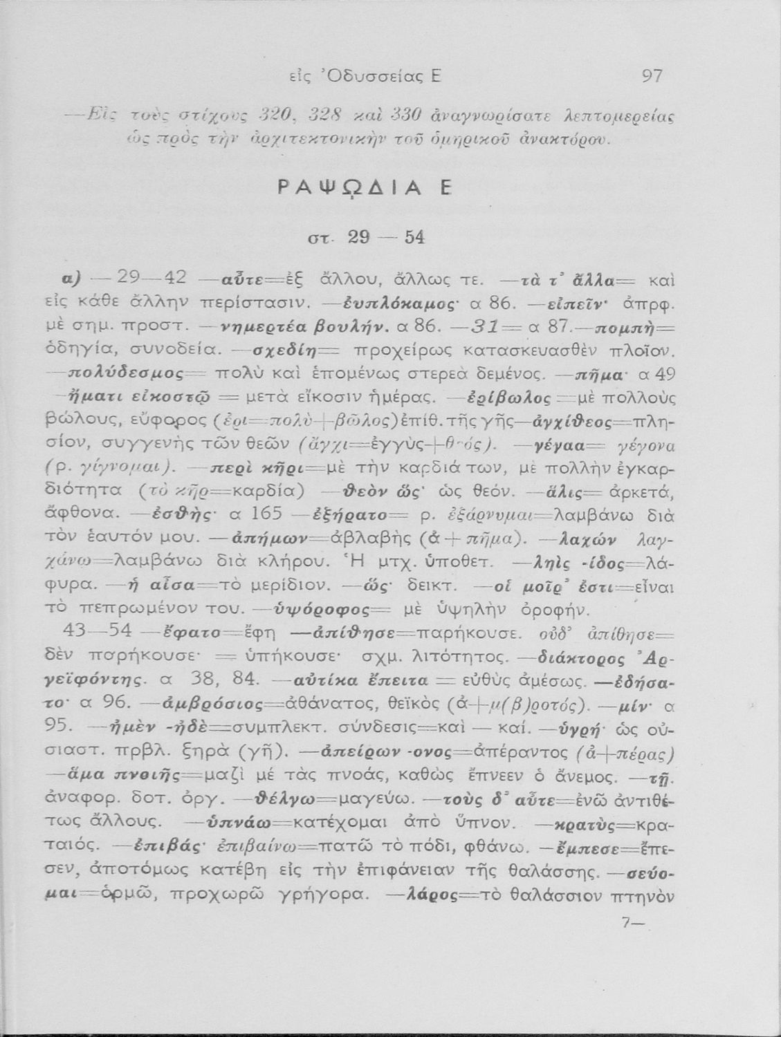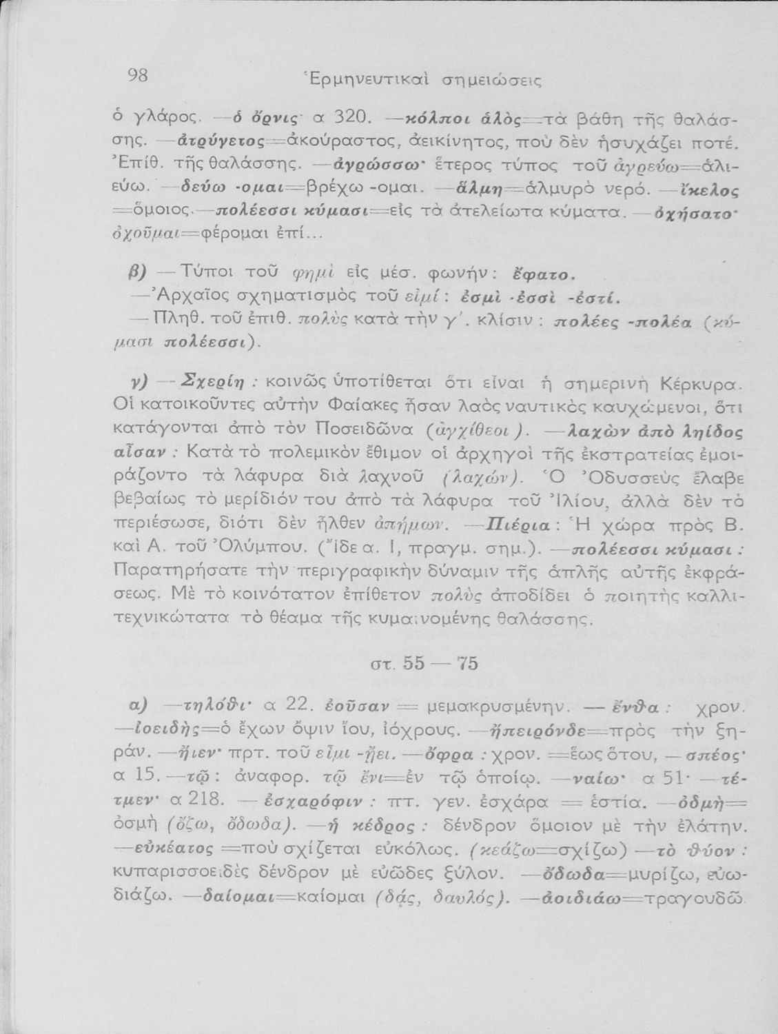 Σχολικό εγχειρίδιο της Ε΄ Γυμνασίου για το μάθημα των Αρχαίων Ελληνικών. Περιέχει αποσπάσματα από τις ραψωδίες της Οδύσσειας, ερμηνευτικά και πραγματολογικά σχόλια και τις γραμματικές παρατηρήσεις.