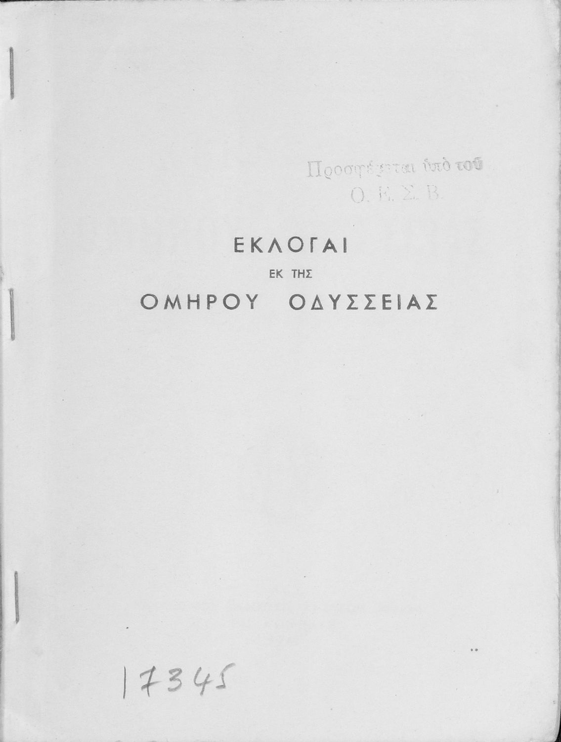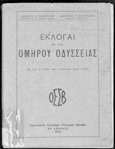 Τίτλος: Εκλογαί εκ της Ομήρου Οδύσσειας ια την Ε΄ τάξιν των Γυμνασίων νέου τύπου
