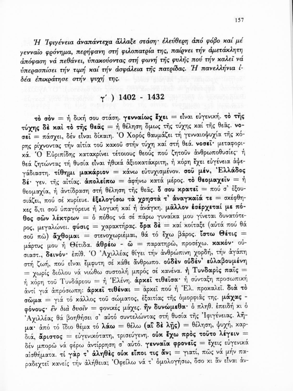 Σχολικό εγχειρίδιο Αρχαίων Ελληνικών Γυμνασίου που περιλαμβάνει αποσπάσματα τις τραγωδίες του Ευριπίδη Ιφιγένεια η εν Αυλίδι και Ιφιγένεια η εν Ταύροις, ερμηνευτικά και πραγματολογικά σχόλια και λεξιλογικές ...