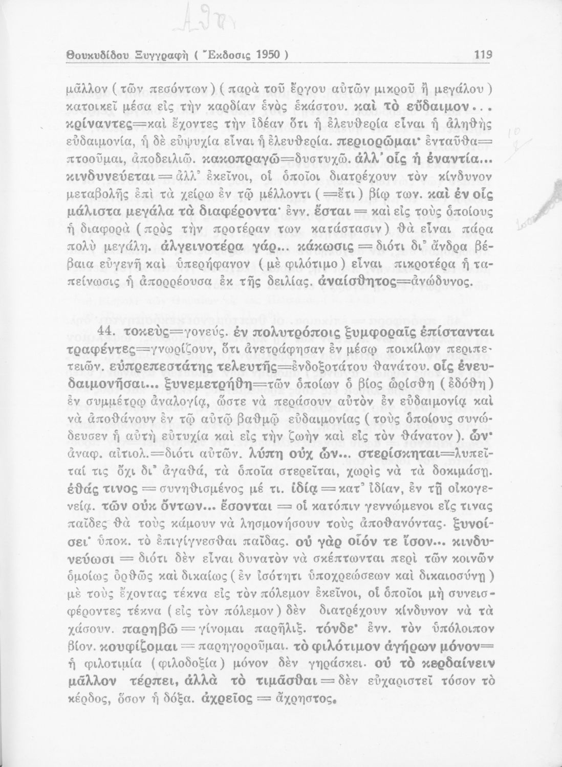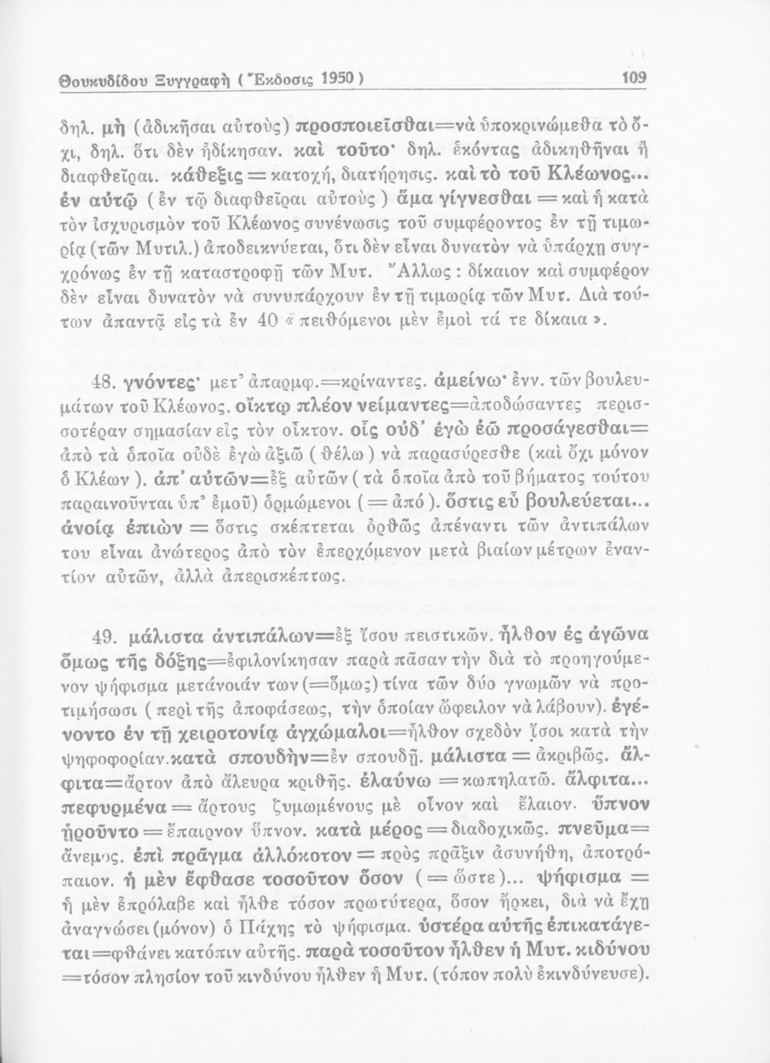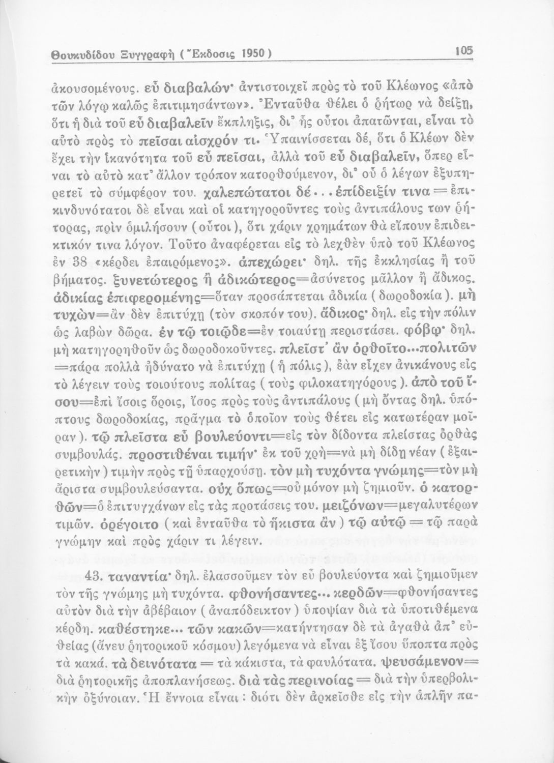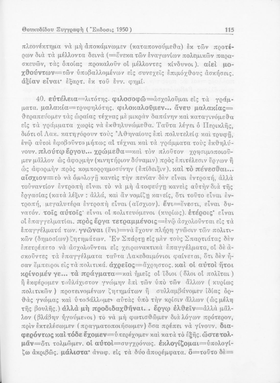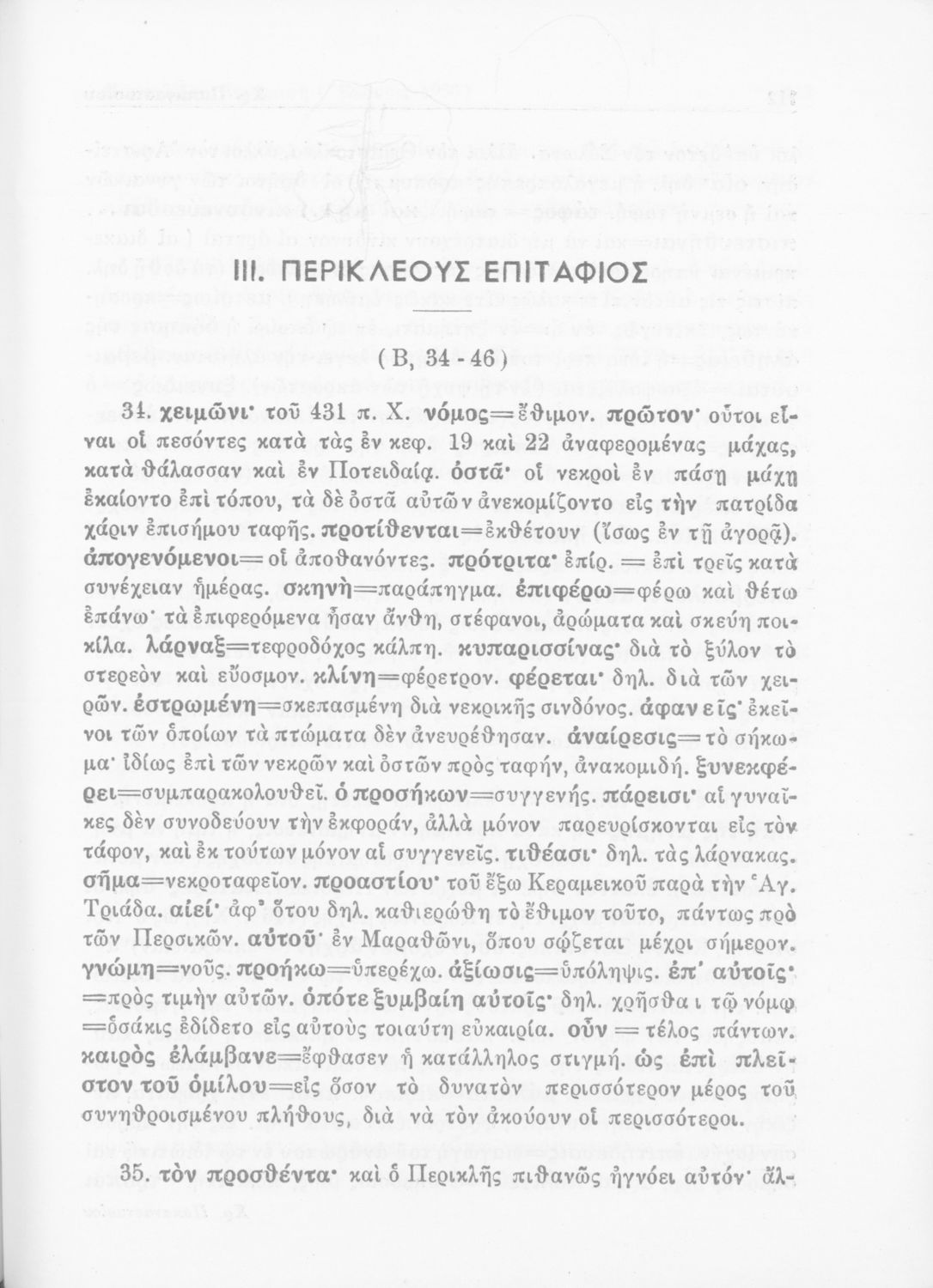 Σχολικό εγχειρίδιο Αρχαίων Ελληνικών Γυμνασίου που περιέχει εισαγωγή στη ζωή και το έργο του Θουκυδίδη, αποσπάσματα από τα Πλαταιϊκά, τα Λεσβιακά και τον Επιτάφιο του Περικλή και ερμηνευτικές σημειώσεις.