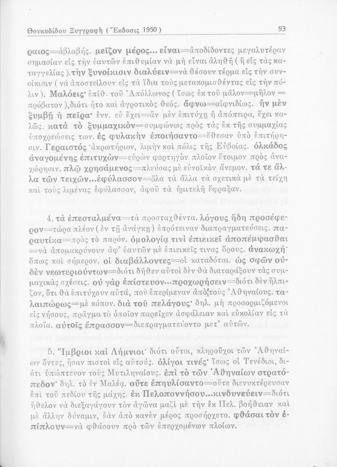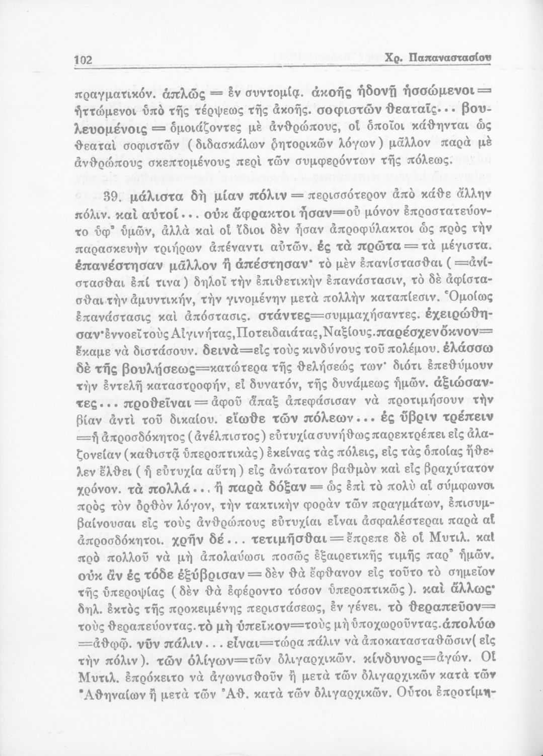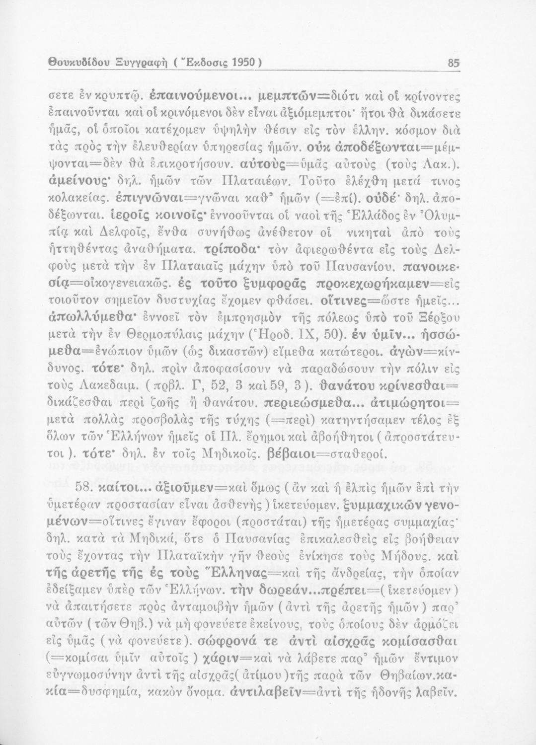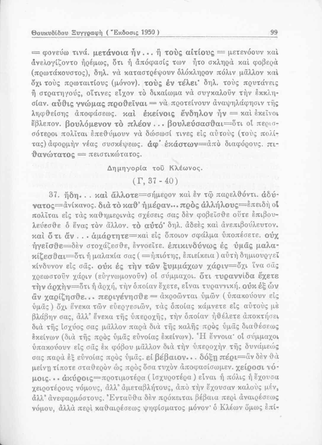 Σχολικό εγχειρίδιο Αρχαίων Ελληνικών Γυμνασίου που περιέχει εισαγωγή στη ζωή και το έργο του Θουκυδίδη, αποσπάσματα από τα Πλαταιϊκά, τα Λεσβιακά και τον Επιτάφιο του Περικλή και ερμηνευτικές σημειώσεις.