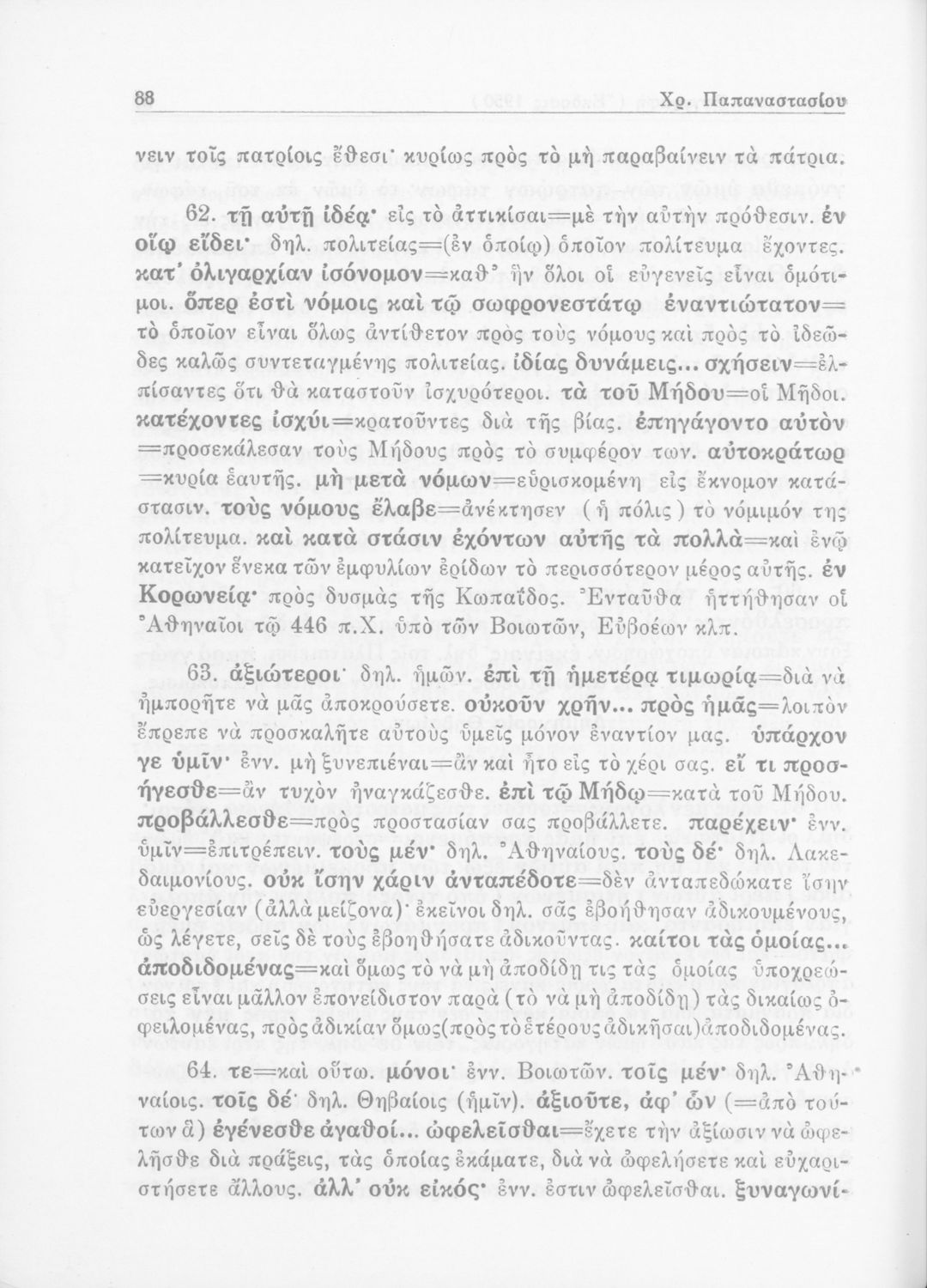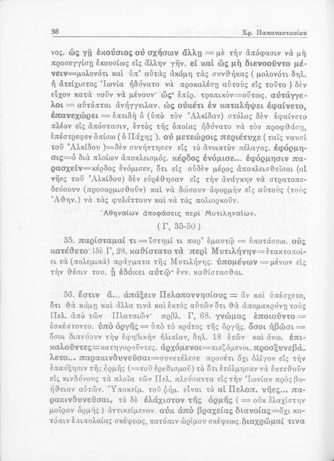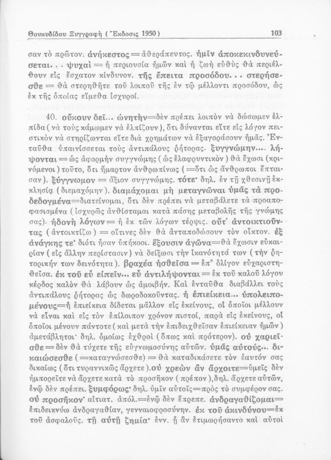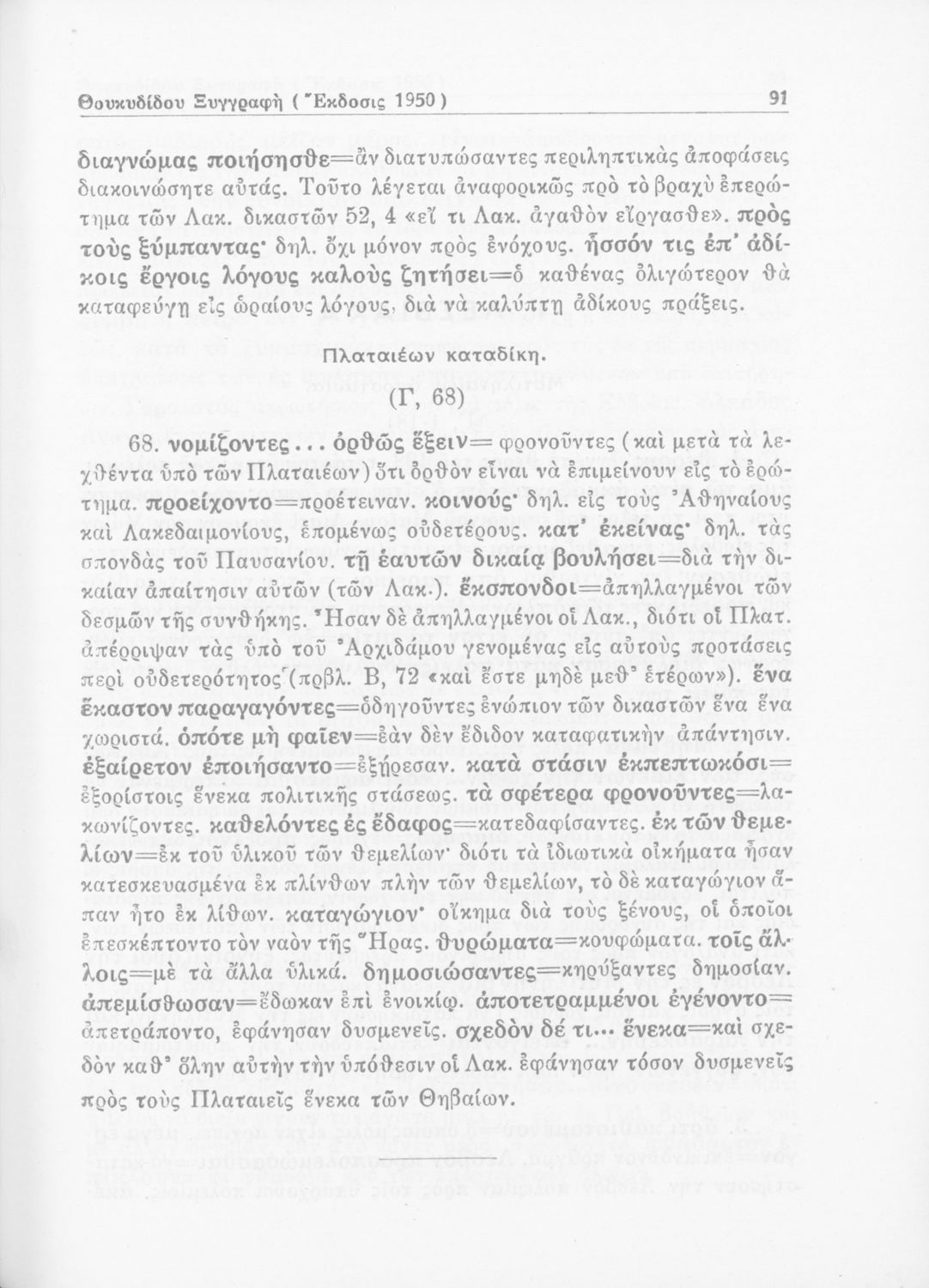 Σχολικό εγχειρίδιο Αρχαίων Ελληνικών Γυμνασίου που περιέχει εισαγωγή στη ζωή και το έργο του Θουκυδίδη, αποσπάσματα από τα Πλαταιϊκά, τα Λεσβιακά και τον Επιτάφιο του Περικλή και ερμηνευτικές σημειώσεις.