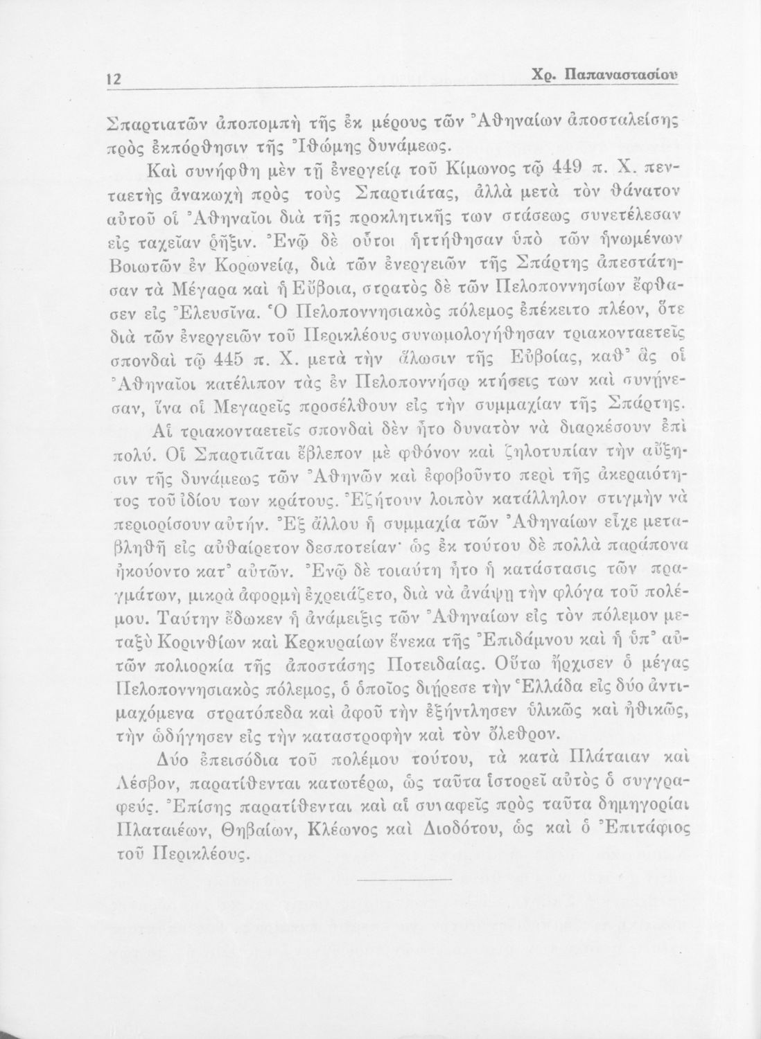 Θουκυδίδης, Χρισ. Παπαναστασίου (σχόλια)