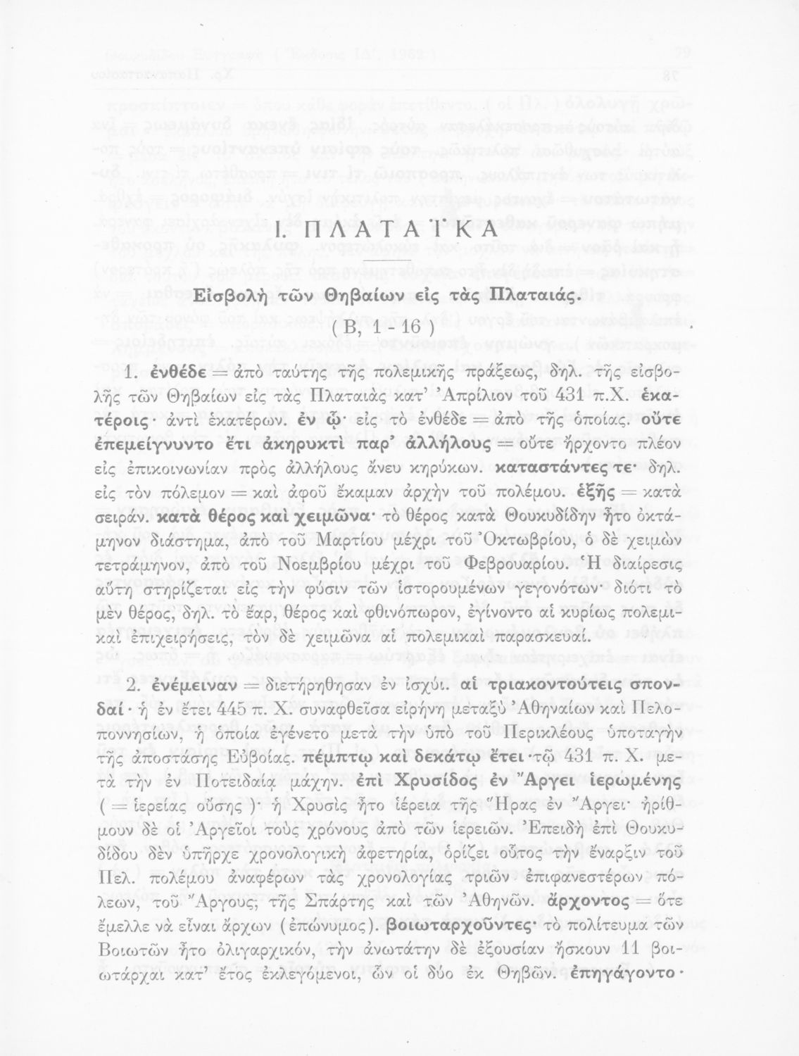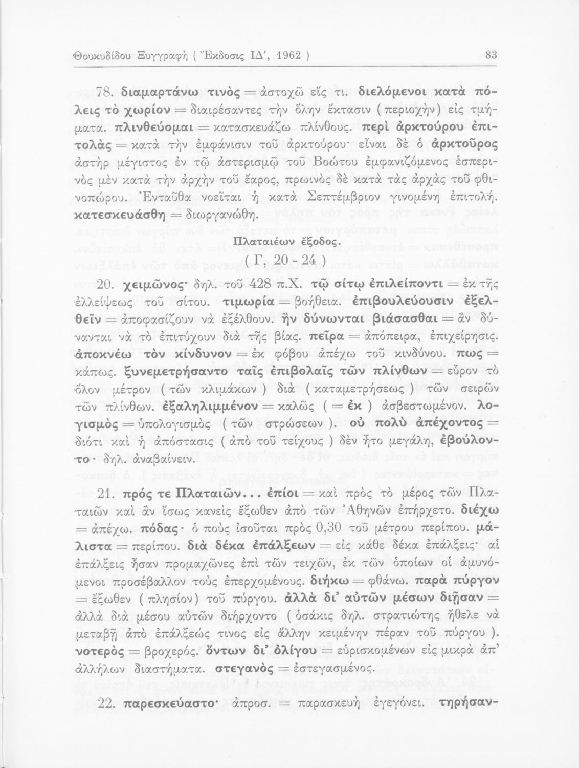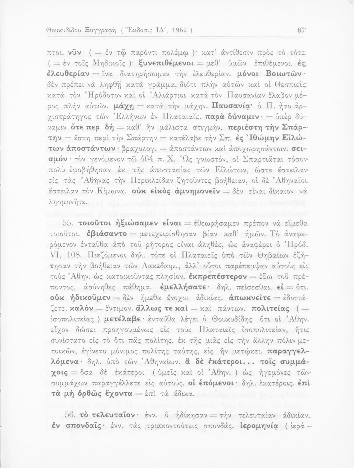 Σχολικό εγχειρίδιο Αρχαίων Ελληνικών για τις Δ΄, Ε΄ και ΣΤ΄ Γυμνασίου παλαιού τύπου που περιλαμβάνει σύντομο βιογραφικό σημείωμα του Θουκυδίδη, περιγραφή του ιστορικού πλαισίου, αποσπάσματα από τα Πλαταϊκά, τα