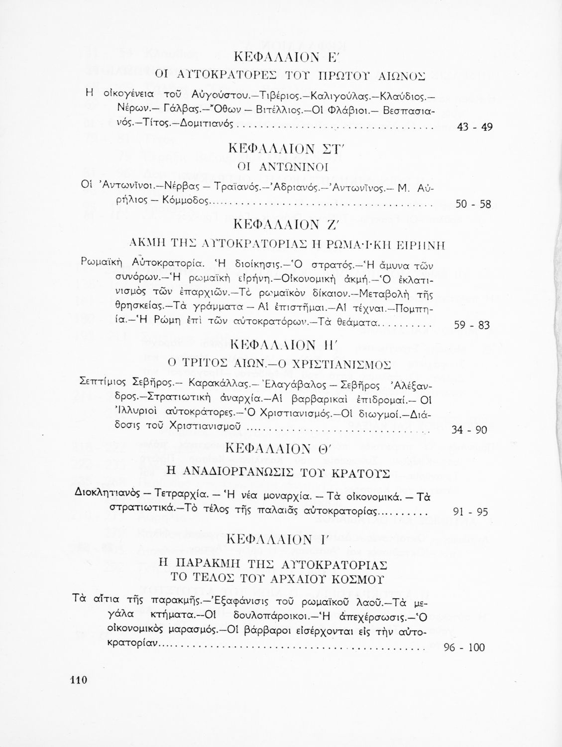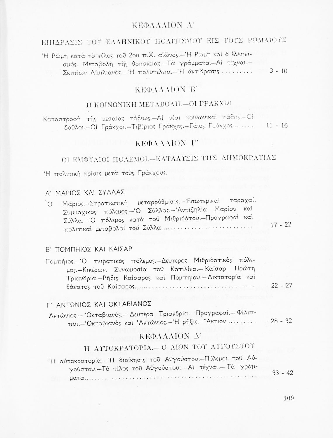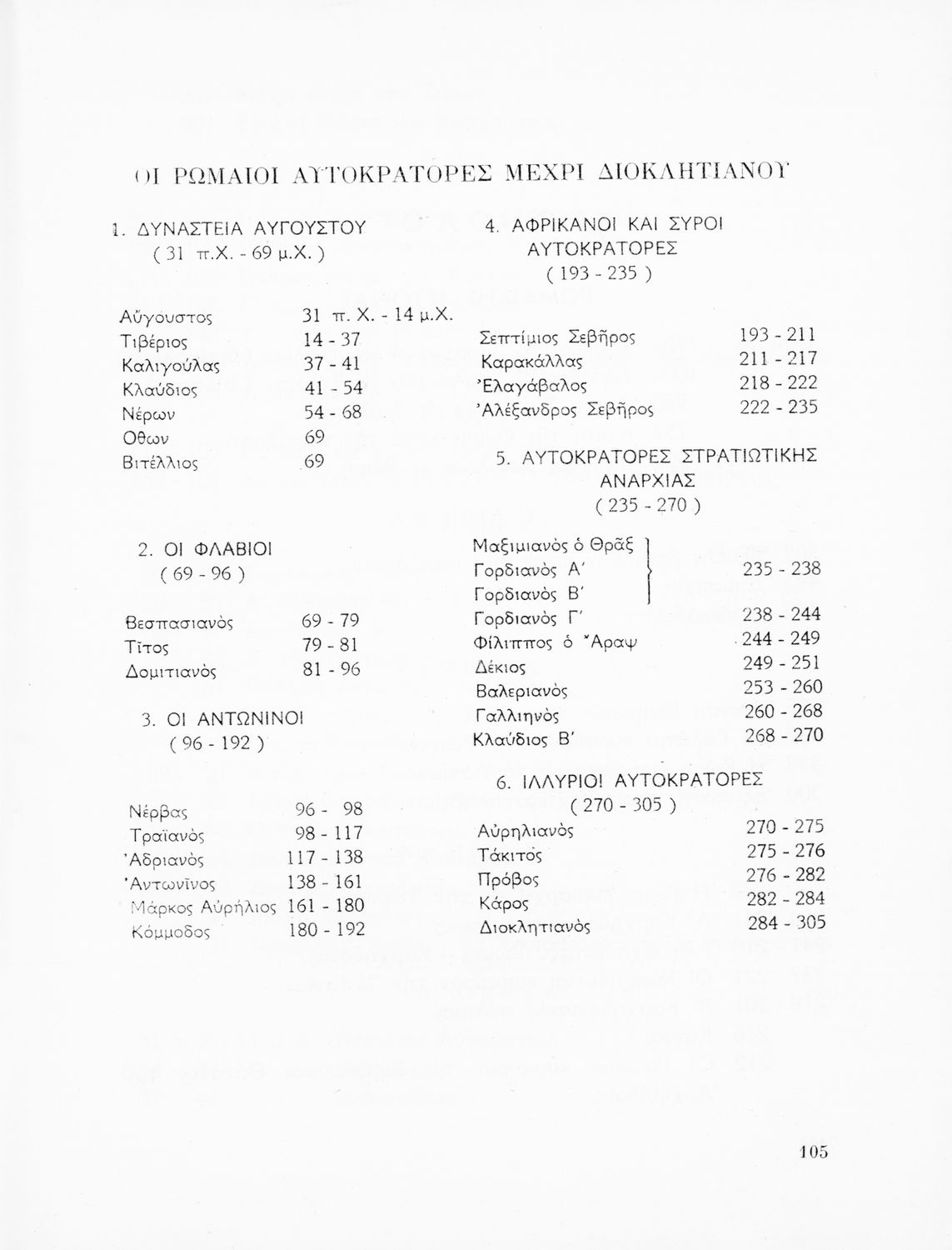 Σχολικό εγχειρίδιο Ιστορίας που καλύπτει την περίοδο από την ίδρυση της ρωμαϊκής αυτοκρατορίας ως την παρακμή της. Περιέχει και μετρικό παράρτημα. Φέρει το σύμβολο της δικτατορίας.