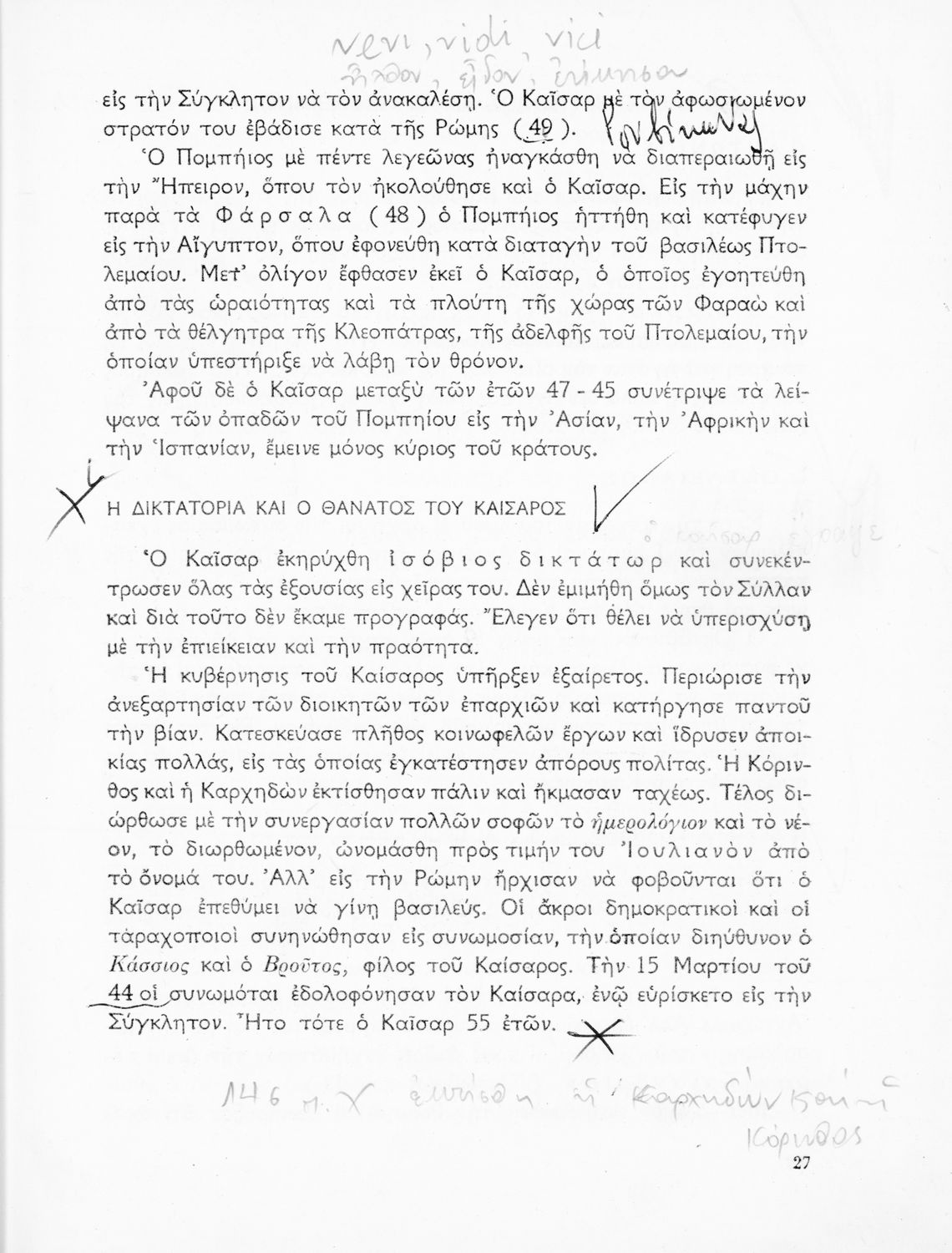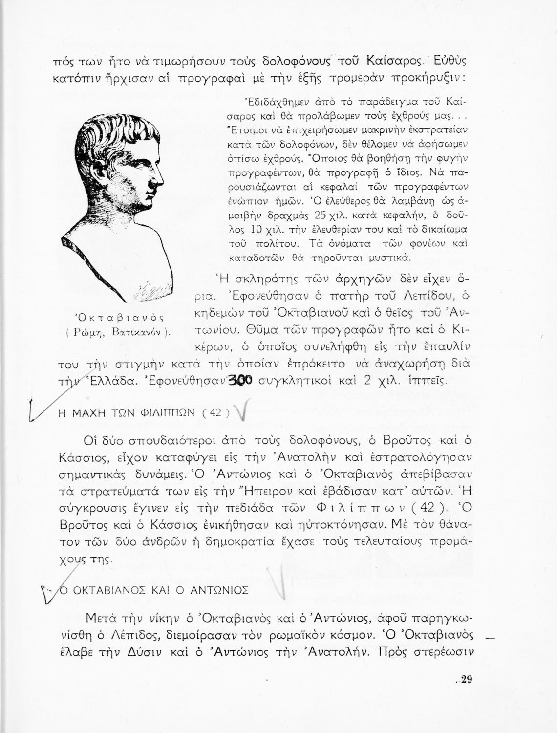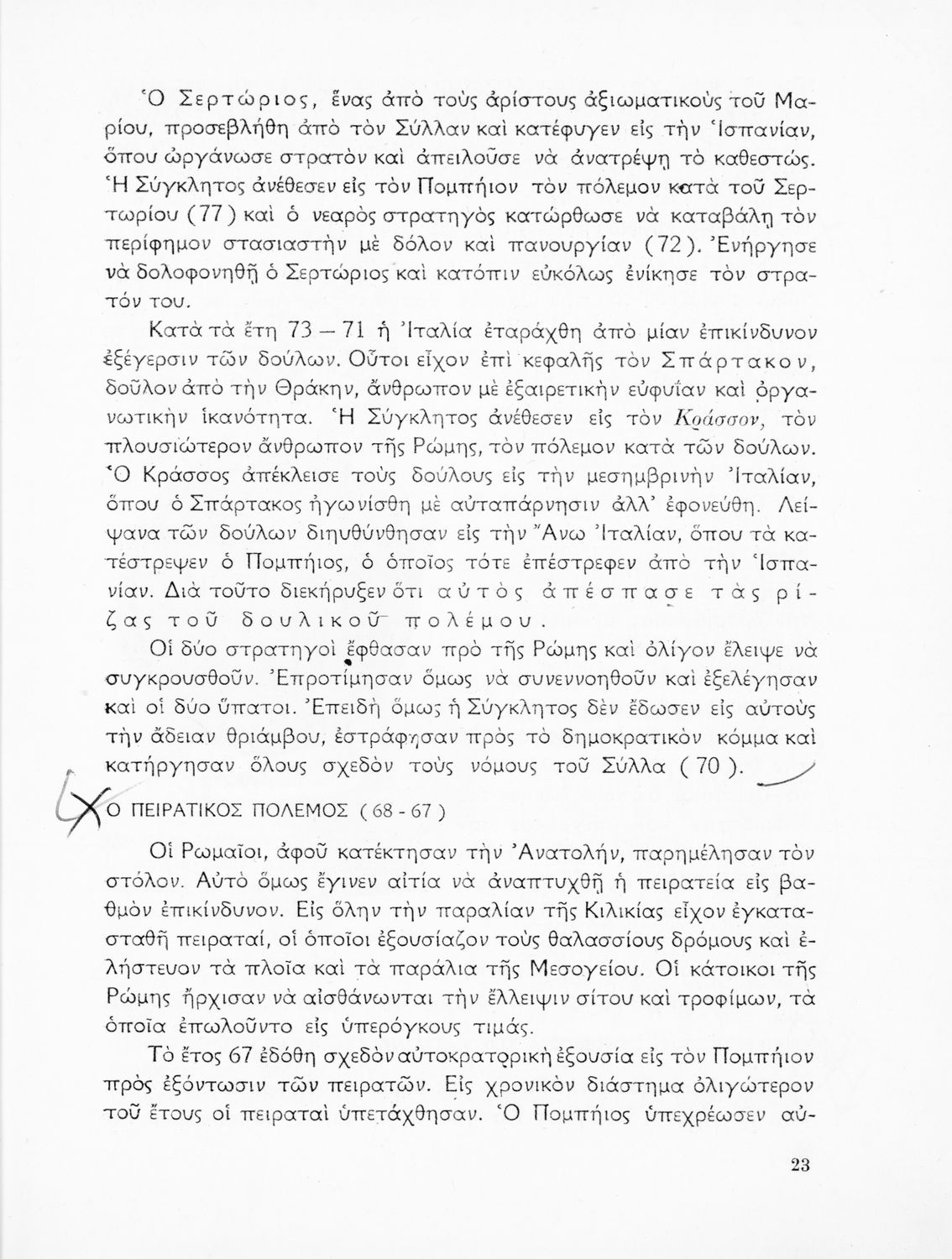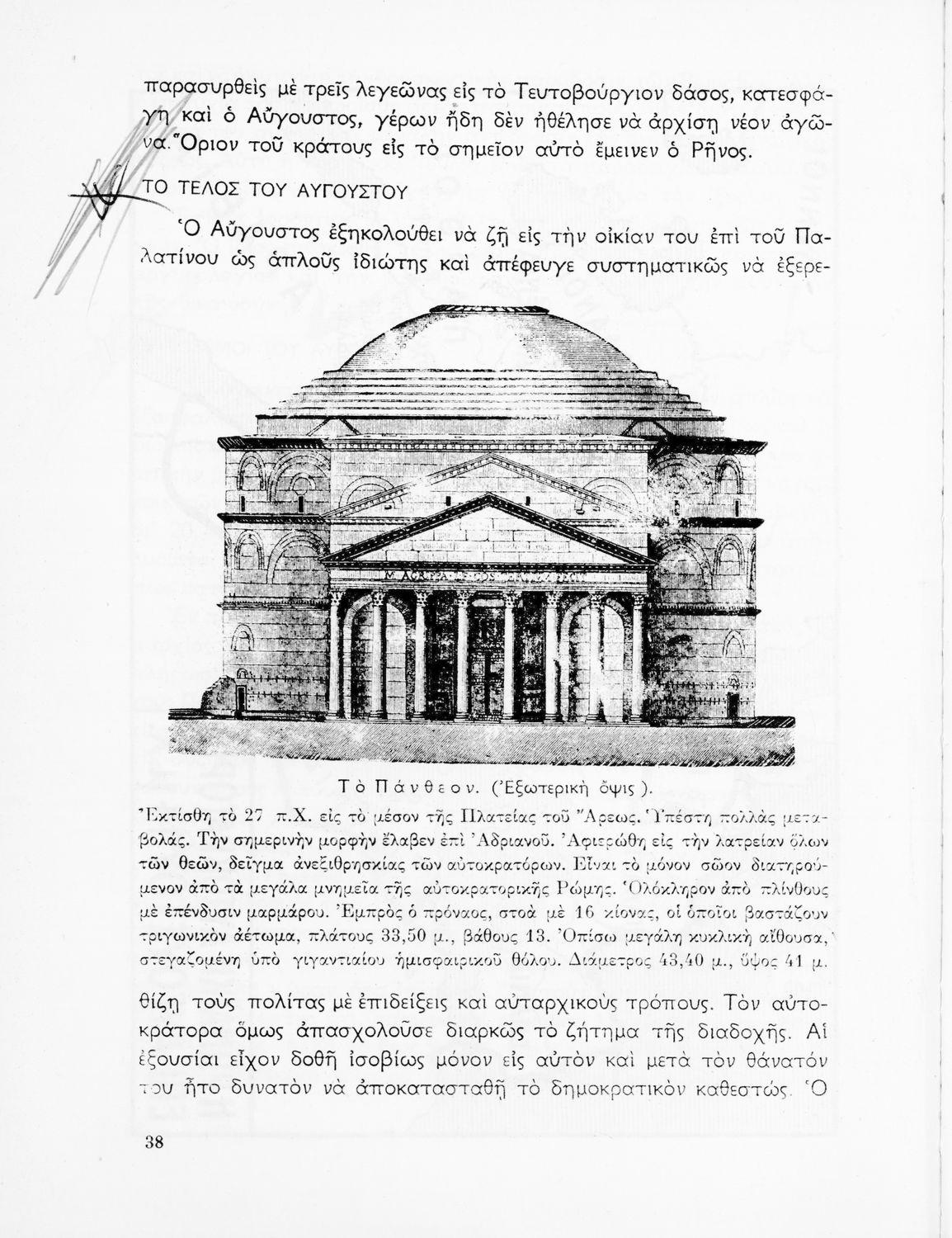 Σχολικό εγχειρίδιο Ιστορίας που καλύπτει την περίοδο από την ίδρυση της ρωμαϊκής αυτοκρατορίας ως την παρακμή της. Περιέχει και μετρικό παράρτημα. Φέρει το σύμβολο της δικτατορίας.