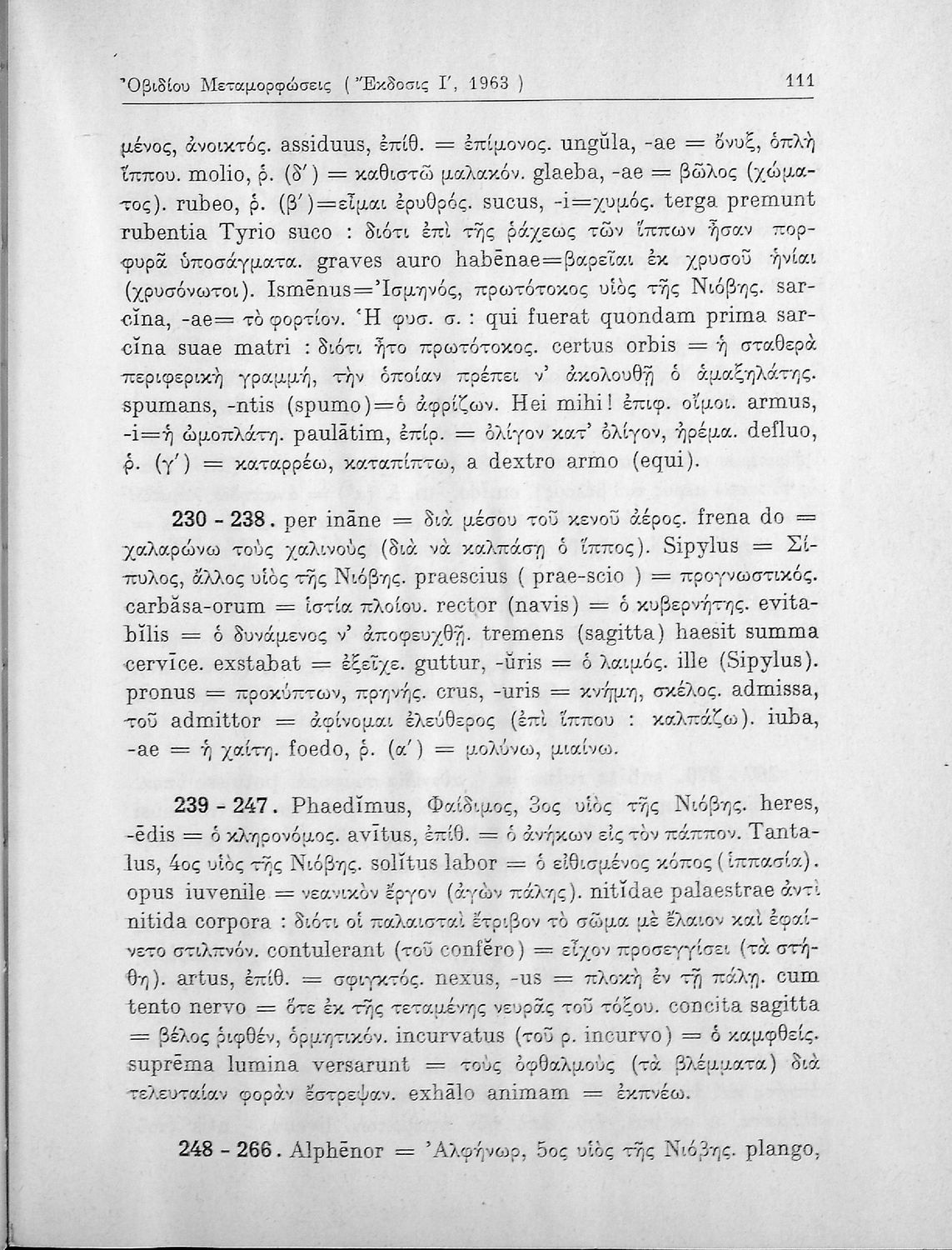 Σχολικό εγχειρίδιο Λατινικών για την Ε΄ Γυμνασίου παλαιού τύπου και την ΣΤ΄ Γυμνασίου νέου τύπου ου περιέχει βιογραφικό σημείωμα των Κικέρωνα και Οβίδιου, εισαγωγικά σχόλια, κείμενο και ερμηνευτικές σημειώσεις.