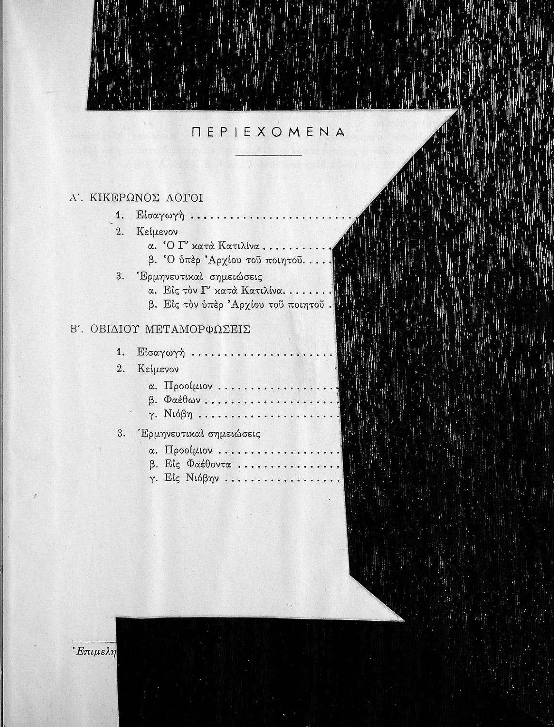 Κικέρωνος Λόγοι Ο Γ΄ κατά Κατιλίνα και ο υπέρ Αρχίου του ποιητού, Οβίδιου Μεταμορφώσεις (Εκλογαί) δια την Ε΄ τάξιν των Γυμνασίων