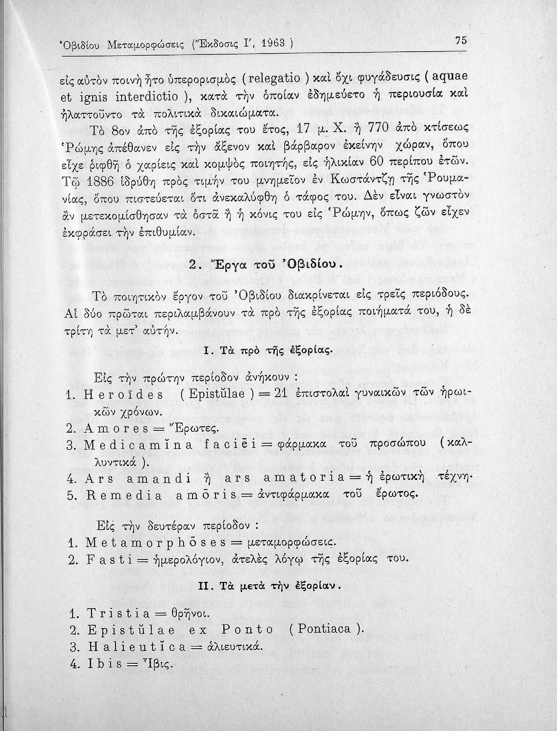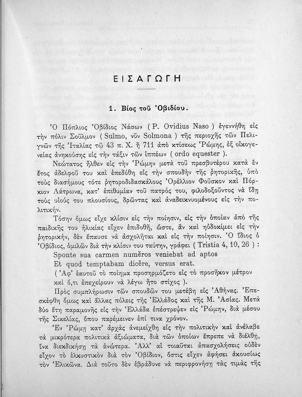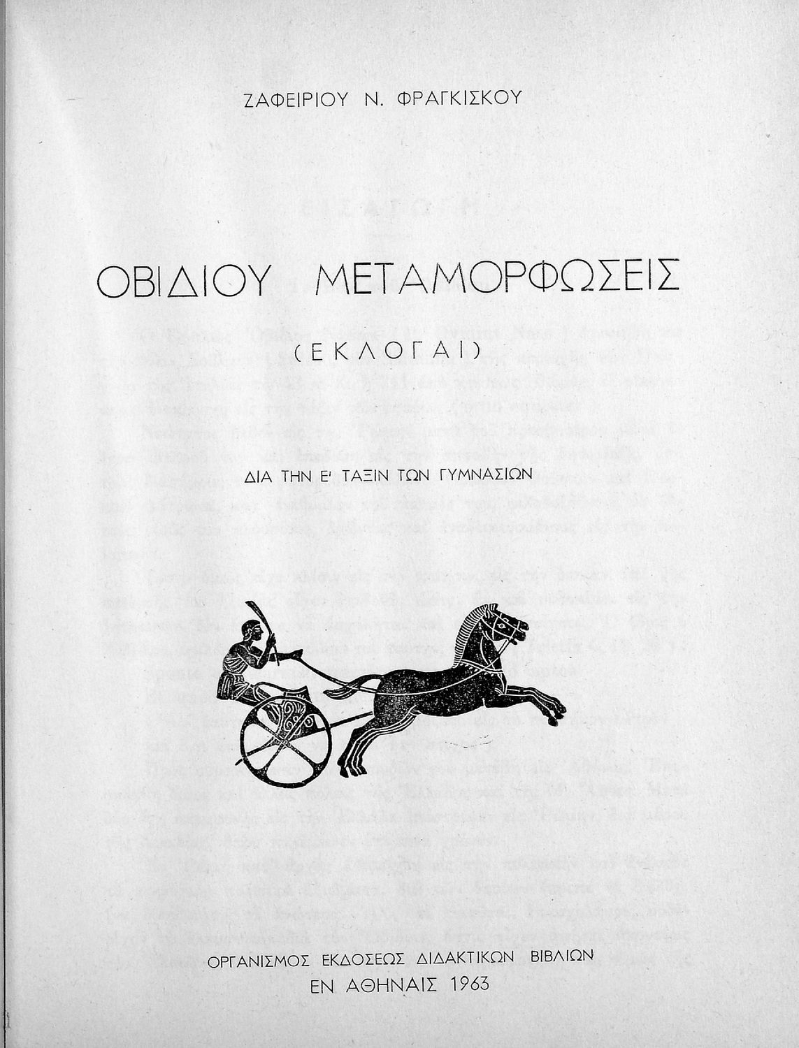 Σχολικό εγχειρίδιο Λατινικών για την Ε΄ Γυμνασίου παλαιού τύπου και την ΣΤ΄ Γυμνασίου νέου τύπου ου περιέχει βιογραφικό σημείωμα των Κικέρωνα και Οβίδιου, εισαγωγικά σχόλια, κείμενο και ερμηνευτικές σημειώσεις.