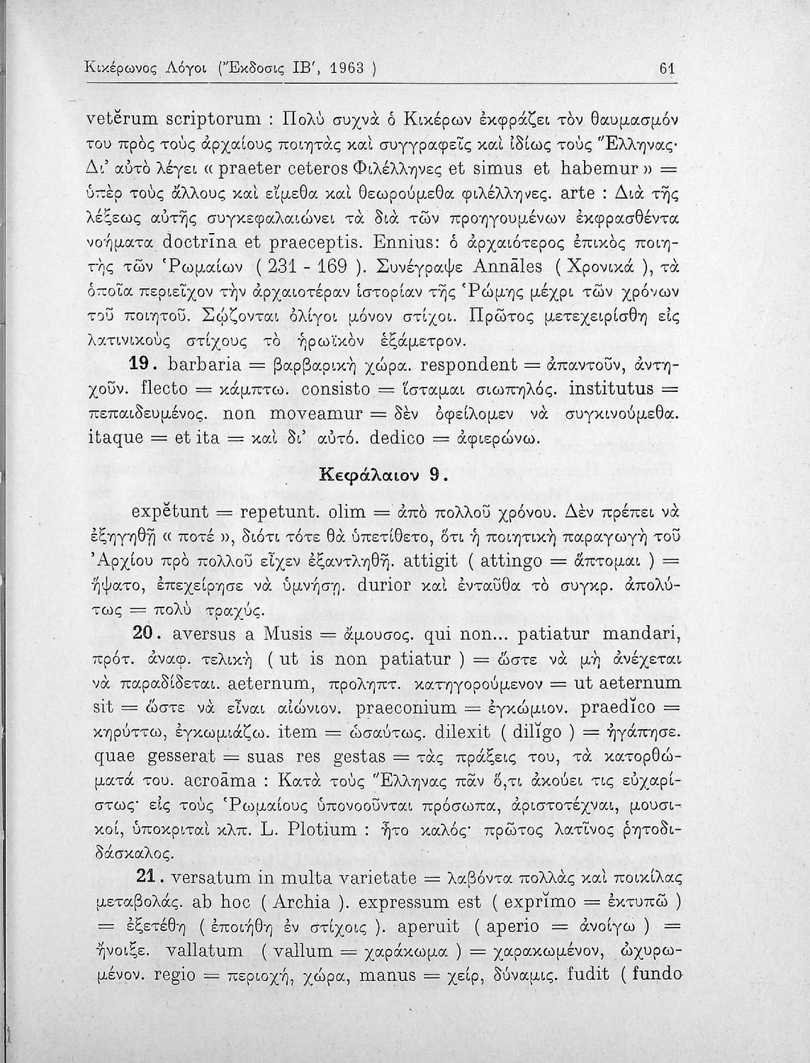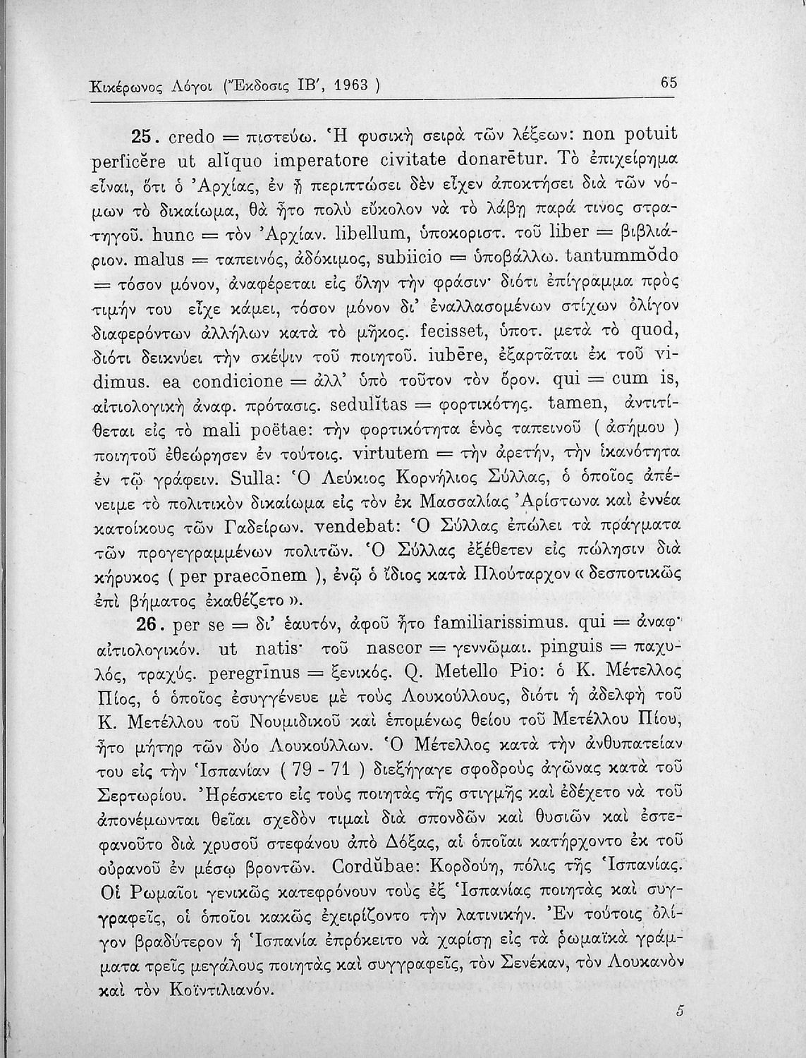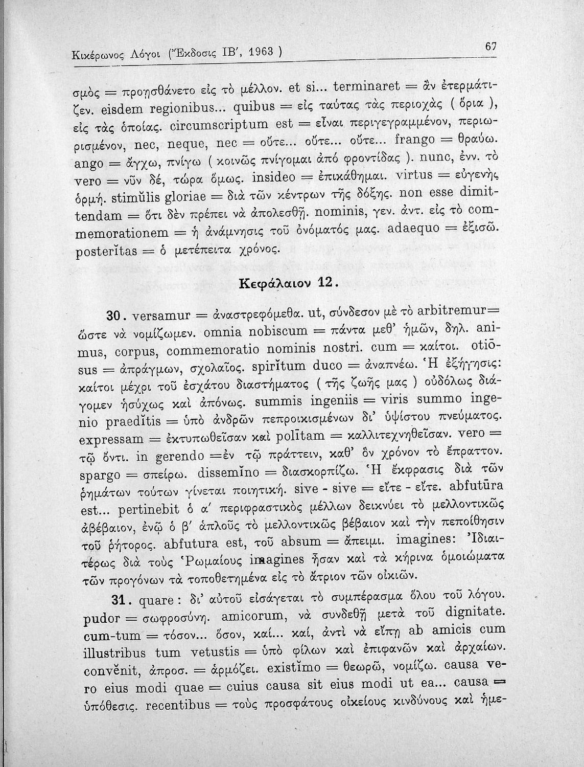 Σχολικό εγχειρίδιο Λατινικών για την Ε΄ Γυμνασίου παλαιού τύπου και την ΣΤ΄ Γυμνασίου νέου τύπου ου περιέχει βιογραφικό σημείωμα των Κικέρωνα και Οβίδιου, εισαγωγικά σχόλια, κείμενο και ερμηνευτικές σημειώσεις.