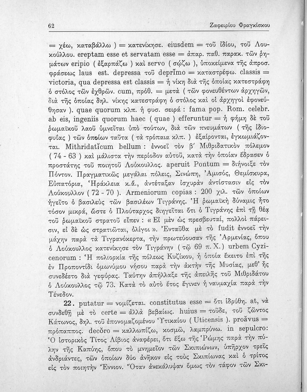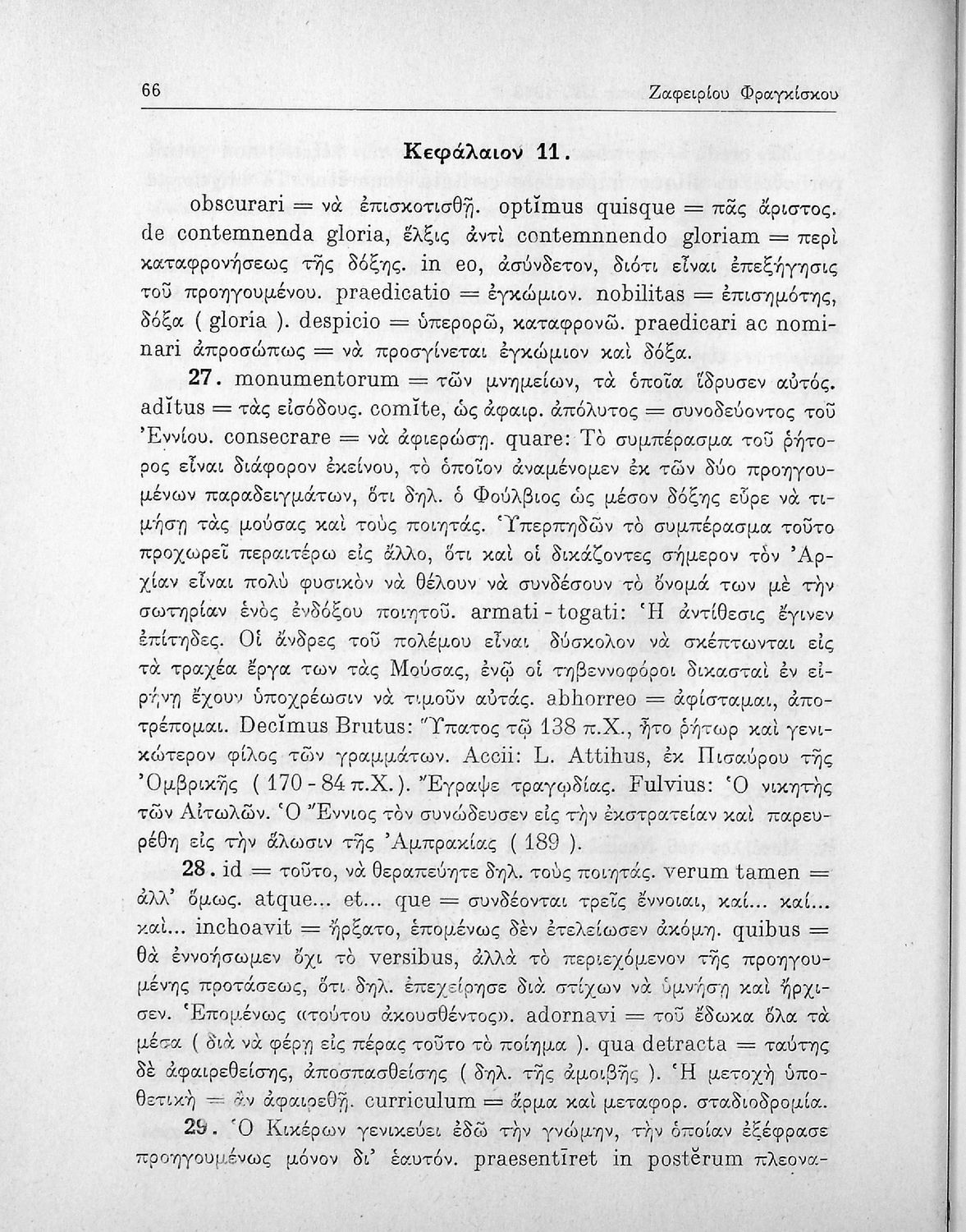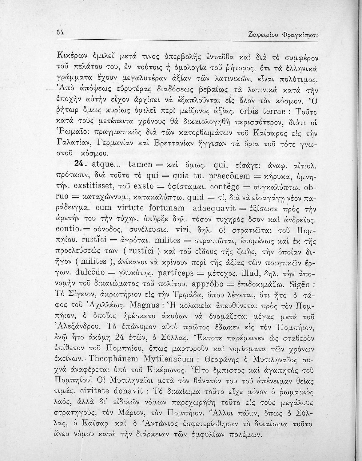 Μάρκος Τύλλιος Κικέρωνας (Marcus Tullius Cicero), Ζαφείριος Ν. Φραγκίσκος (εισαγωγή, σχόλια)