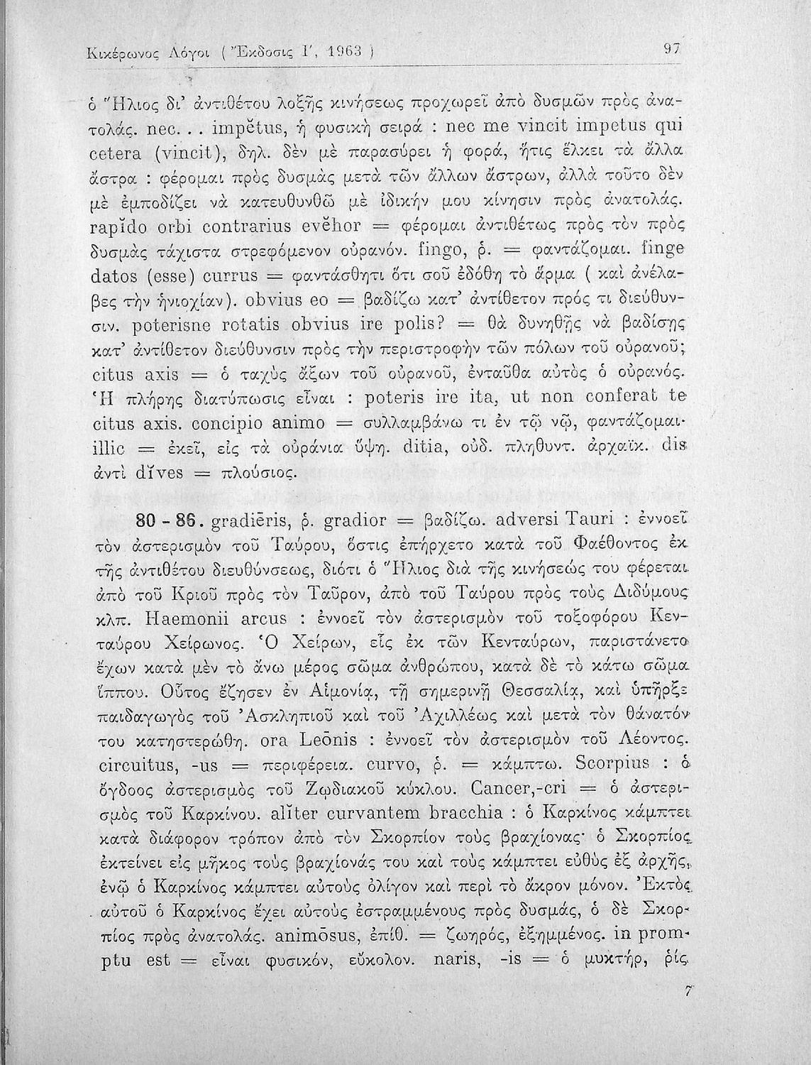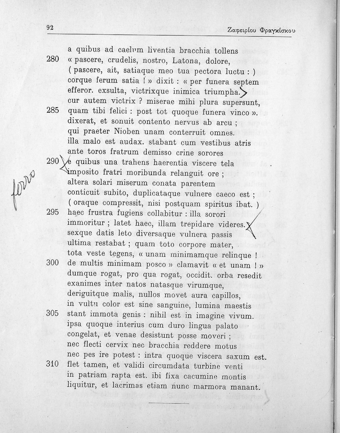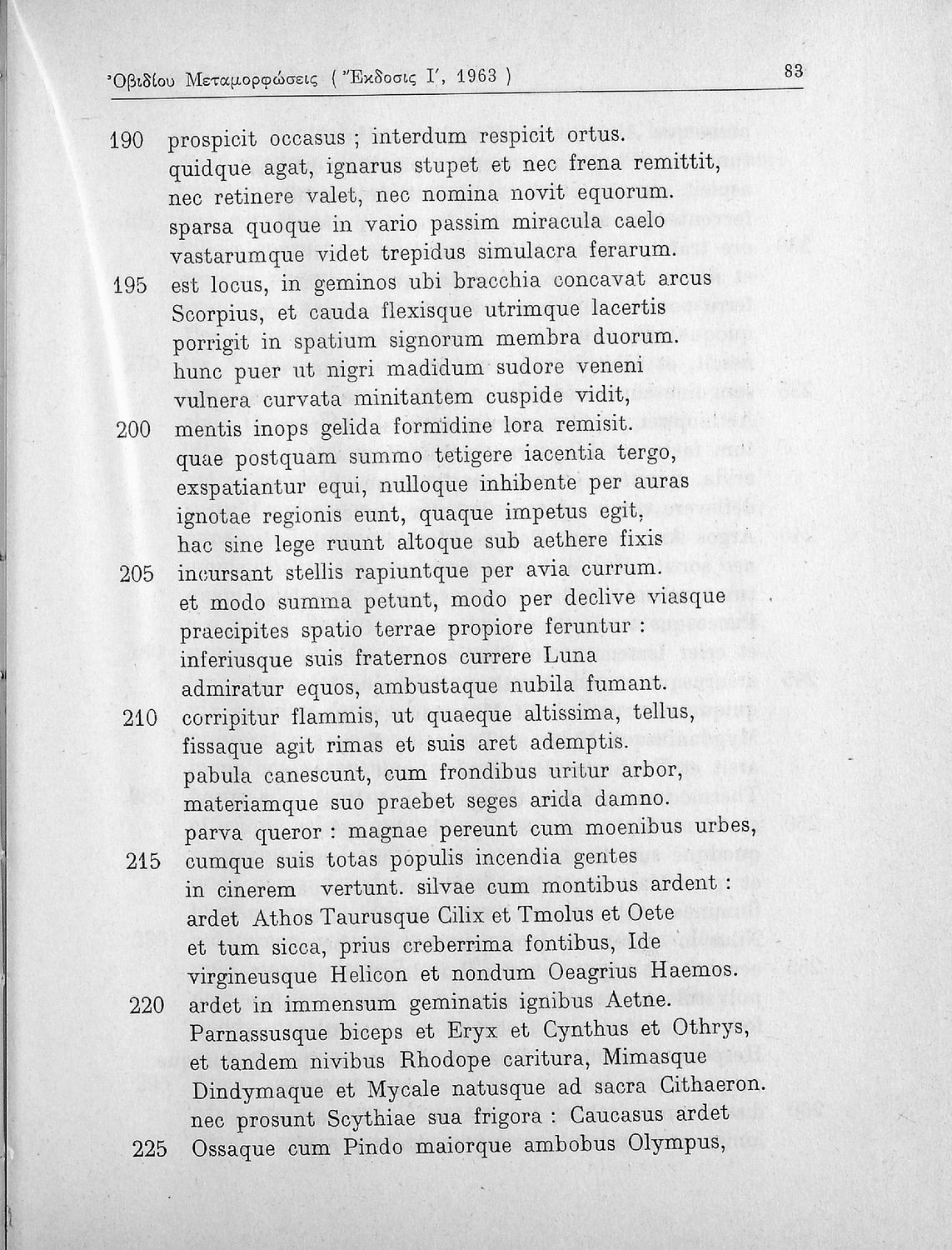 Σχολικό εγχειρίδιο Λατινικών για την Ε΄ Γυμνασίου παλαιού τύπου και την ΣΤ΄ Γυμνασίου νέου τύπου ου περιέχει βιογραφικό σημείωμα των Κικέρωνα και Οβίδιου, εισαγωγικά σχόλια, κείμενο και ερμηνευτικές σημειώσεις.