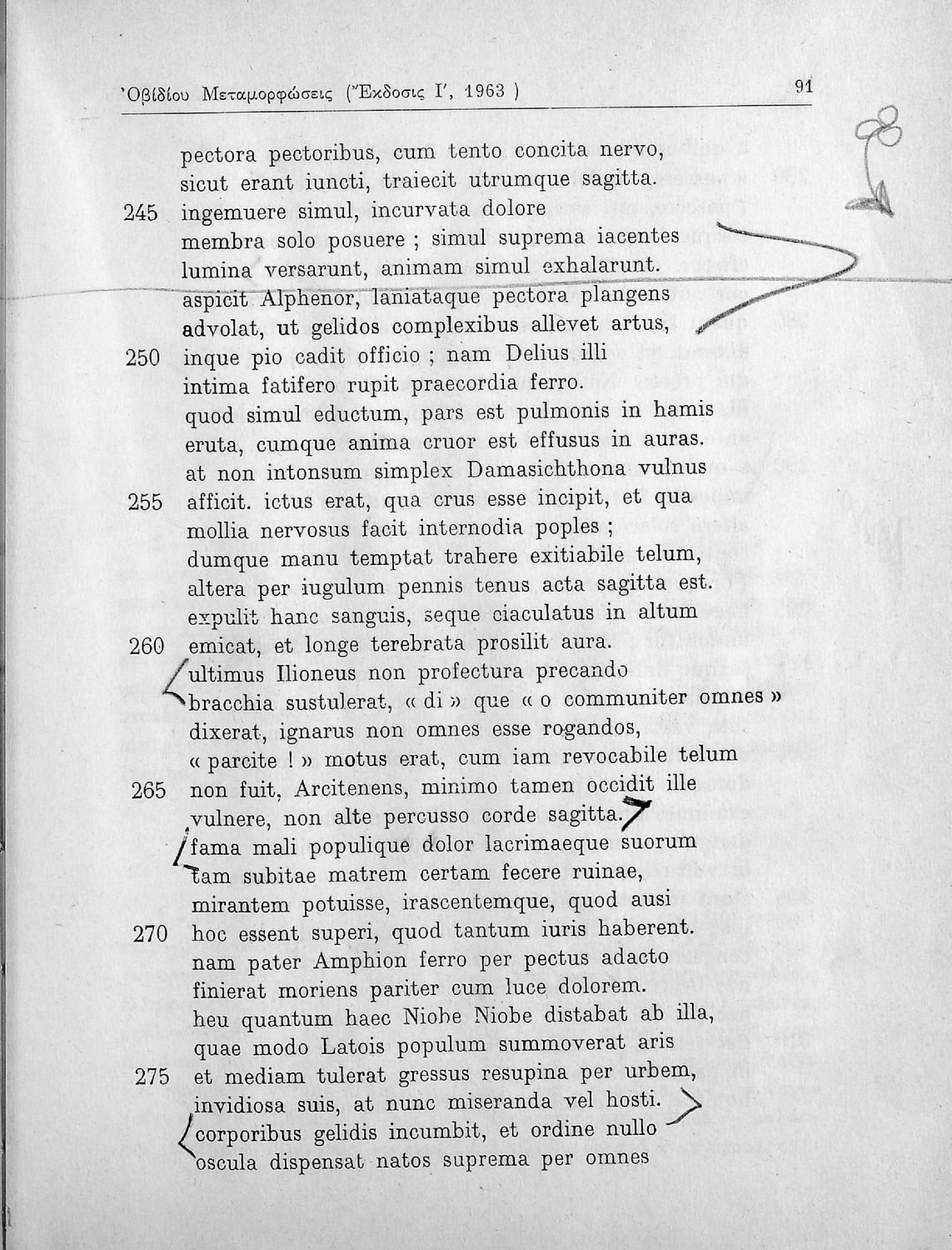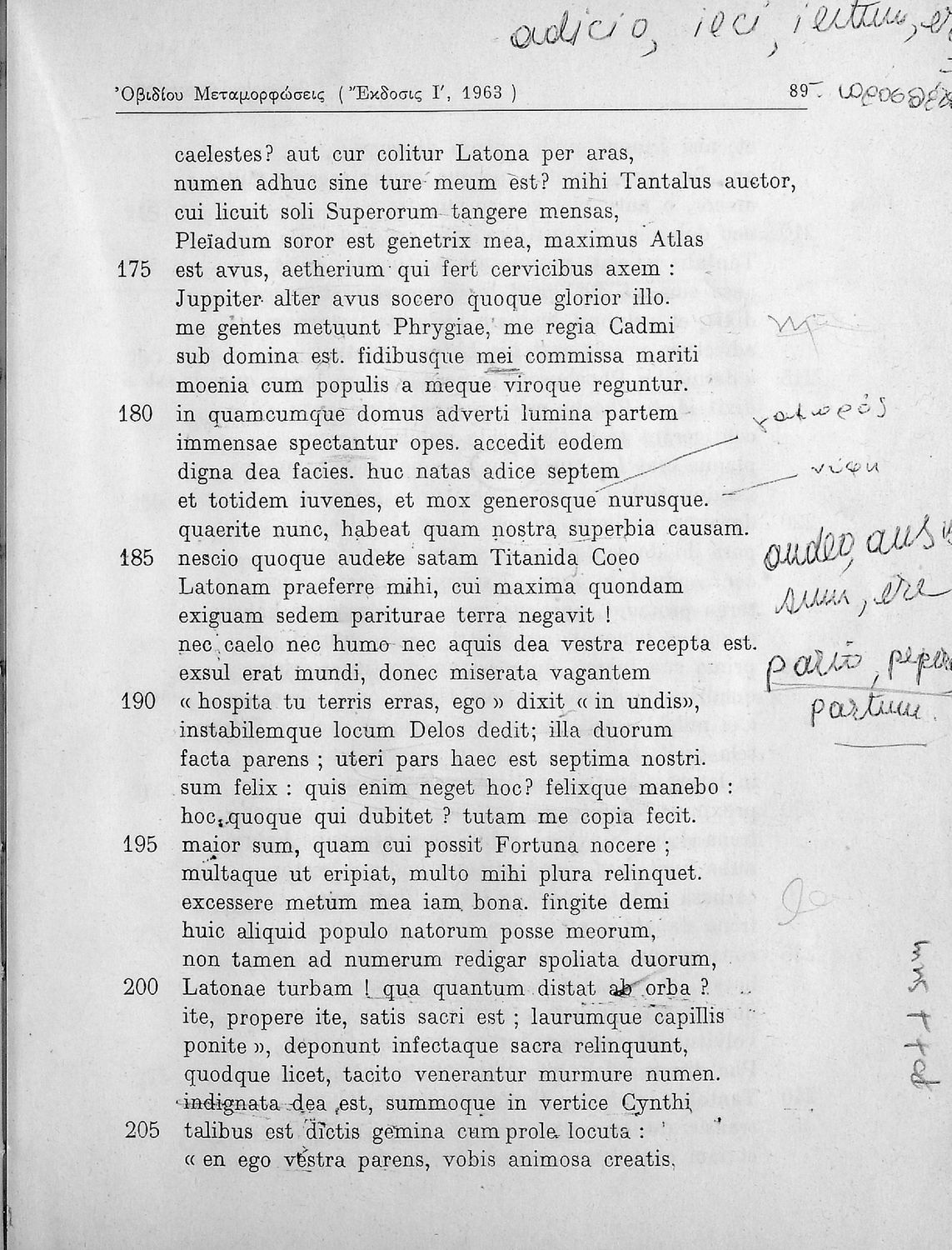 Σχολικό εγχειρίδιο Λατινικών της Ε΄ Γυμνασίου που περιέχει τους Λόγους του Κικέρωνα, Ο Τρίτος κατά Κατιλίνα και ο Υπέρ Αρχίου του Ποιητού, και τις Μεταμορφώσεις του Οβίδιου, Φαίδων και Νιόβη, και γλωσσικές και
