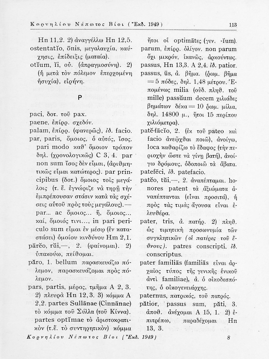 Σχολικό εγχειρίδιο Λατινικών Δ΄ Γυμνασίου που περιέχει σύντομο βιογραφικό σημείωμα του Νέπωτα, αποσπάσματα από τα έργα Αμίλκας, Αννίβας, Κάτων και Αττικός, ιστορικό και γεωγραφικό πίνακα και λεξιλόγιο. Ο συγγραφέας ήταν καθηγητής της Λατινικής Φιλολογίας στο Πανεπιστήμιο Αθηνών