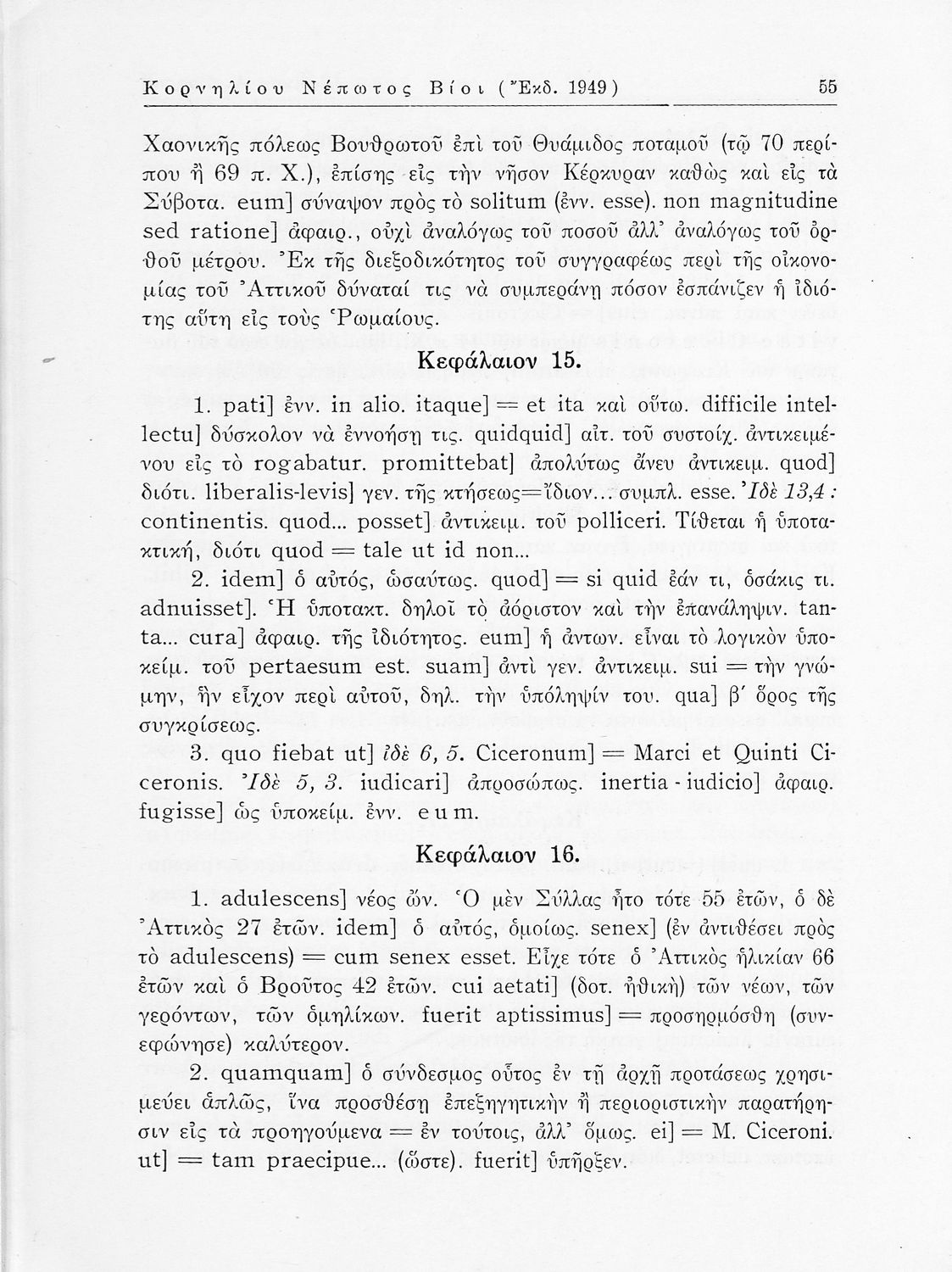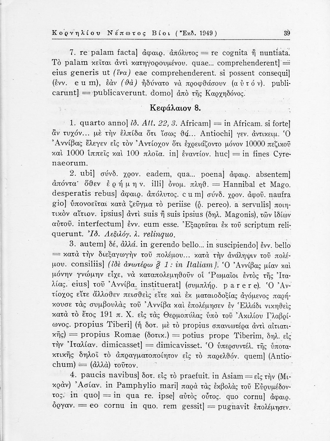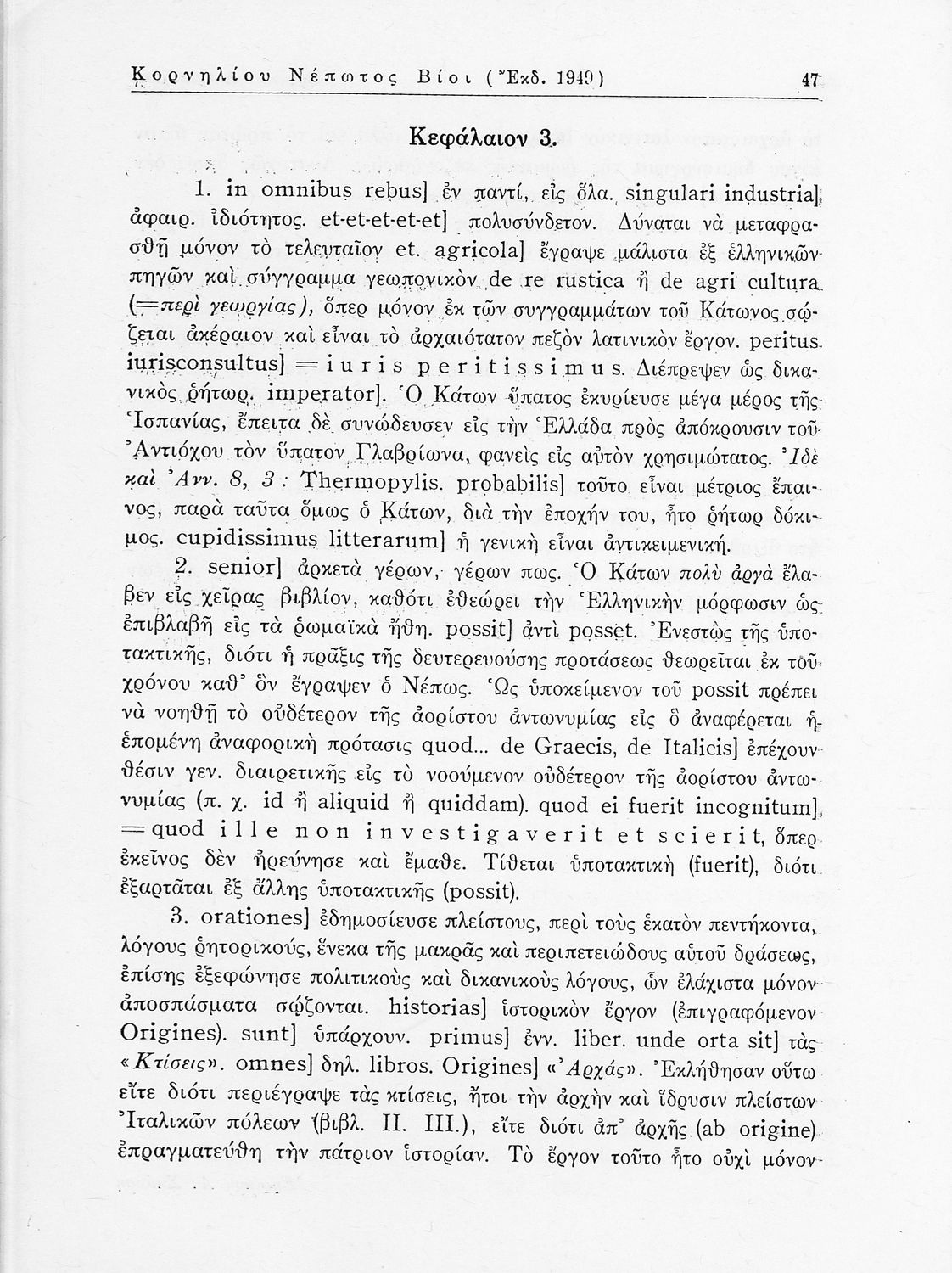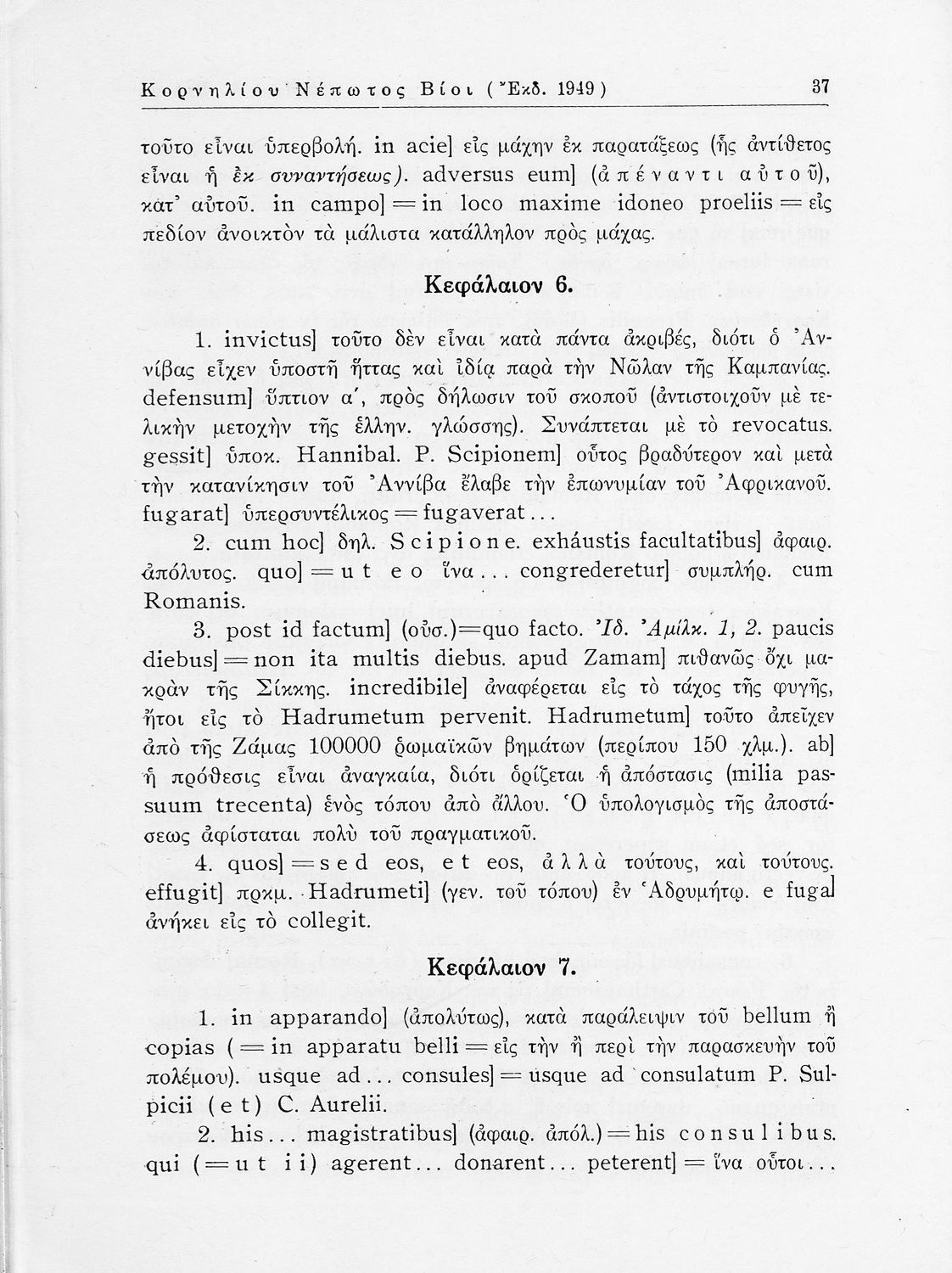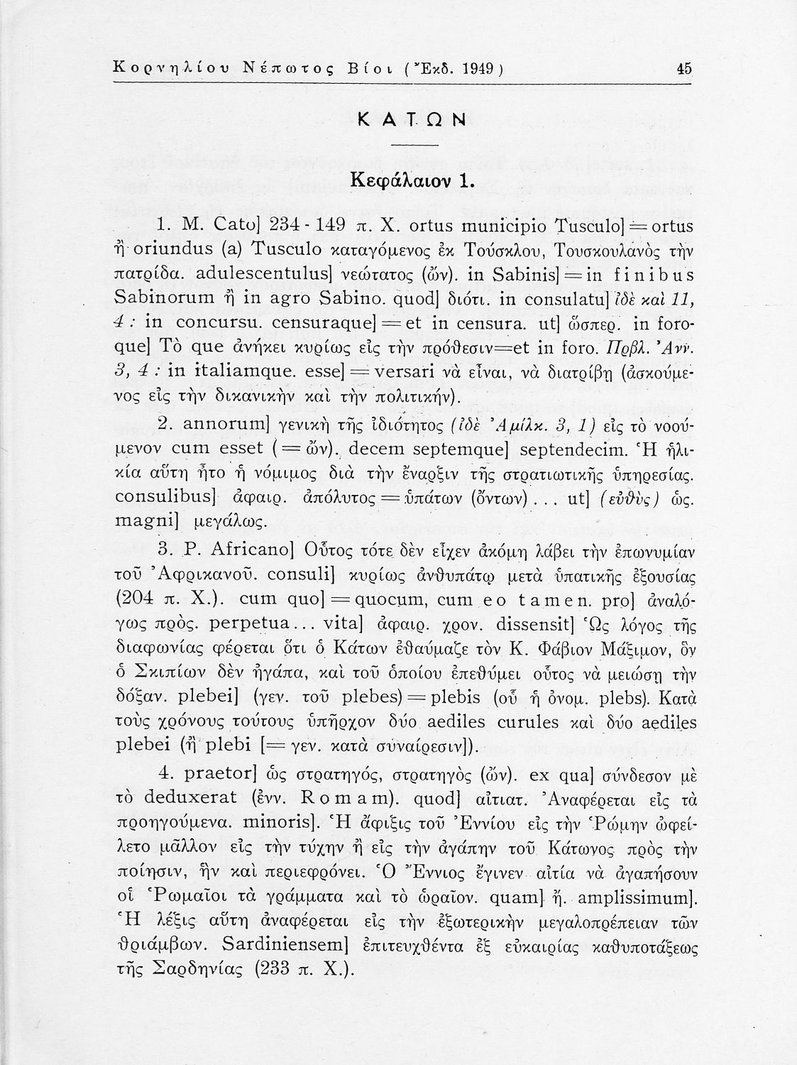 Σχολικό εγχειρίδιο Λατινικών Δ΄ Γυμνασίου που περιέχει σύντομο βιογραφικό σημείωμα του Νέπωτα, αποσπάσματα από τα έργα Αμίλκας, Αννίβας, Κάτων και Αττικός, ιστορικό και γεωγραφικό πίνακα και λεξιλόγιο. Ο συγγραφέας ήταν καθηγητής της Λατινικής Φιλολογίας στο Πανεπιστήμιο Αθηνών
