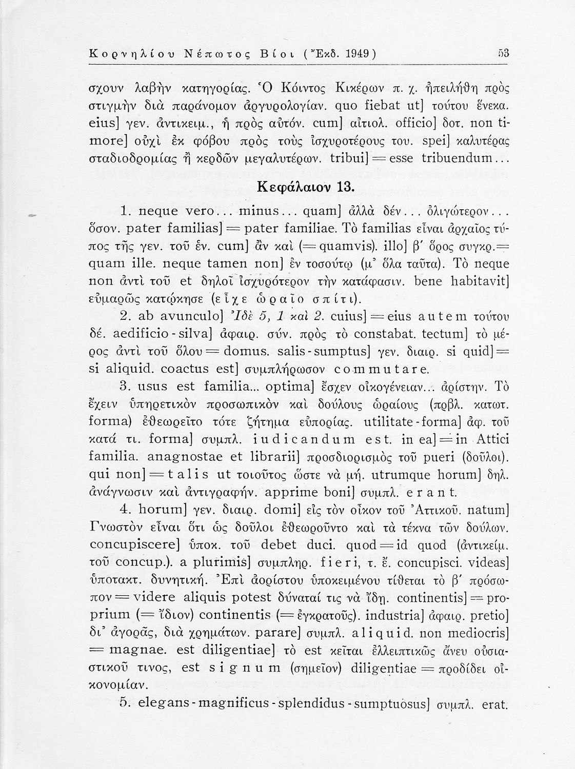 LDR 01336 2200193 4500 035 ## _a01-17355 040 ## _aΙνστιτούτο Εκπαιδευτικής Πολιτικής 041 ## _ael 100 ## _aΚορνήλιος Νέπως (Cornelius Nepos) _aΕρρίκος Α. Σκάσσης (σχόλια) 110 ## _a17355 245 0# _aΚορνηλίου Νέπωτος Βίοι (Εκλογαί) δια την Δ΄ τάξιν των Γυμνασίων παλαιού τύπου 260 ## _aΑθήνα _bΟργανισμός Εκδόσεως Σχολικών Βιβλίων _c1949 300 ## _a134 _c20 520 ## _aΣχολικό εγχειρίδιο Λατινικών Δ΄ Γυμνασίου που περιέχει σύντομο βιογραφικό σημείωμα του Νέπωτα, αποσπάσματα από τα έργα Αμίλκας, Αννίβας, Κάτων και Αττικός, ιστορικό και γεωγραφικό πίνακα και λεξιλόγιο. Ο συγγραφέας ήταν καθηγητής της Λατινικής Φιλολογίας στο Πανεπιστήμιο Αθηνών 521 ## _aΔ' Γυμνασίου παλαιού τύπου 522 ## _aΕλλάδα 546 ## _aΚαθαρεύουσα 563 ## _aΜαλακό Εξώφυλλο 650 #4 _aAtticus _aCato _aHamilcar _aHannibal